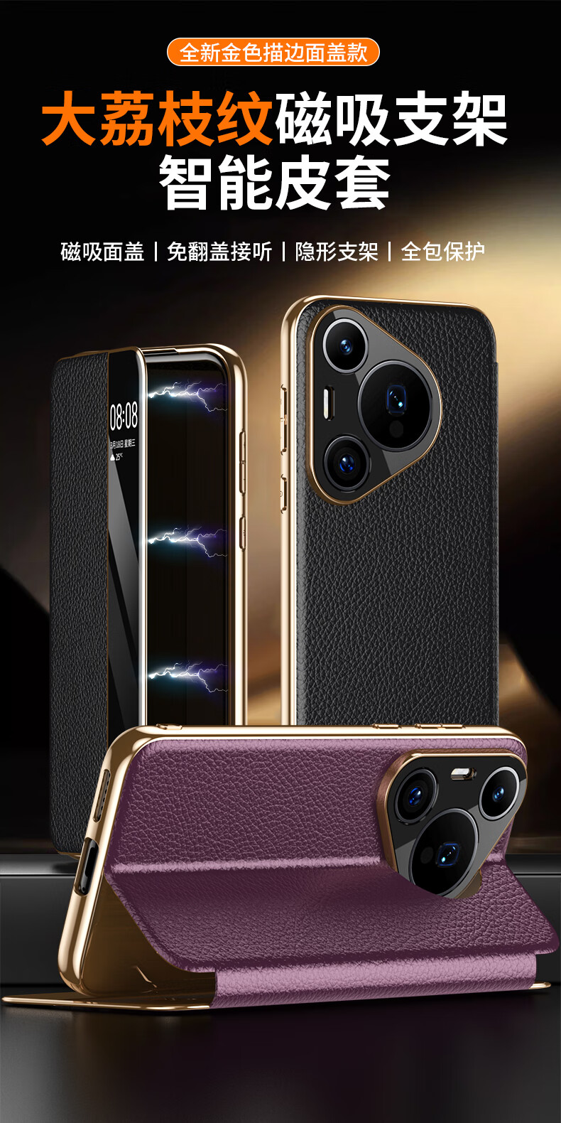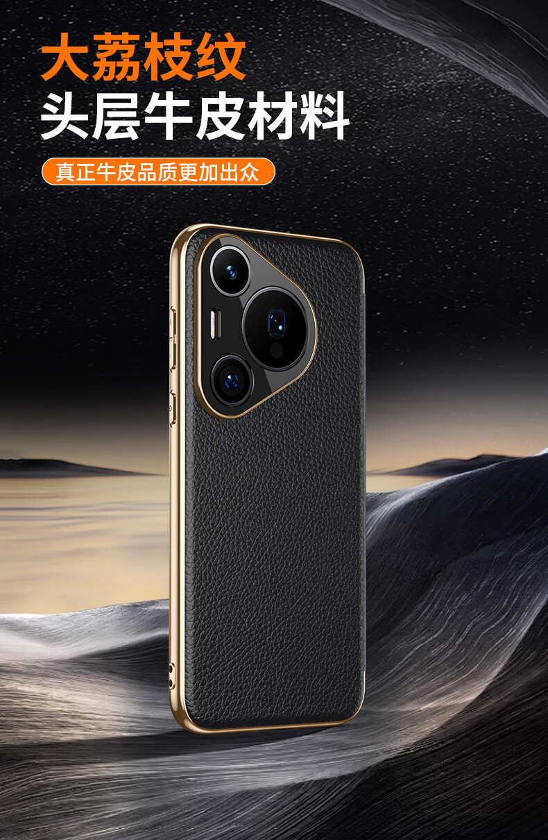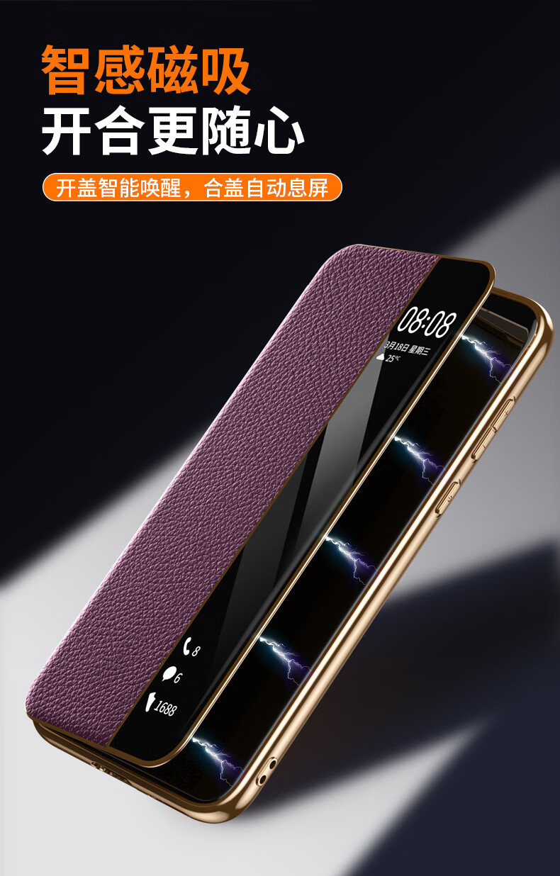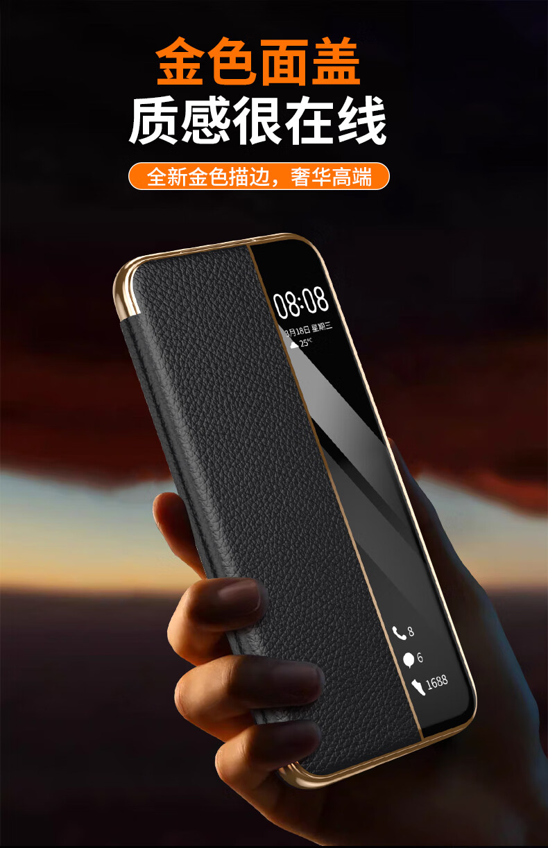 麦焕华为pura70pro手机壳智能视窗pura70保护套真皮免翻盖接听pura70ultra头层牛皮散热保护壳 【黑色】头层真皮 华为pura70ultra