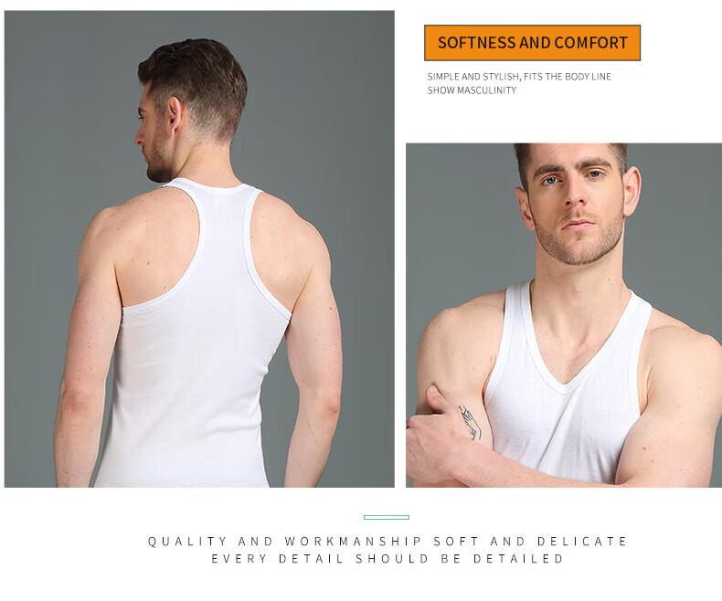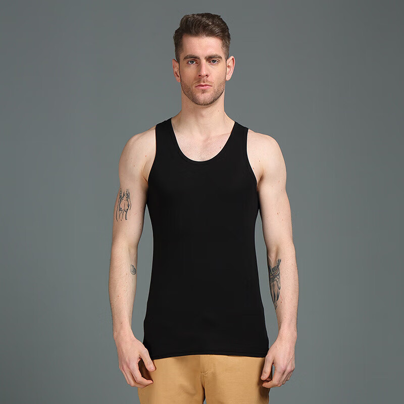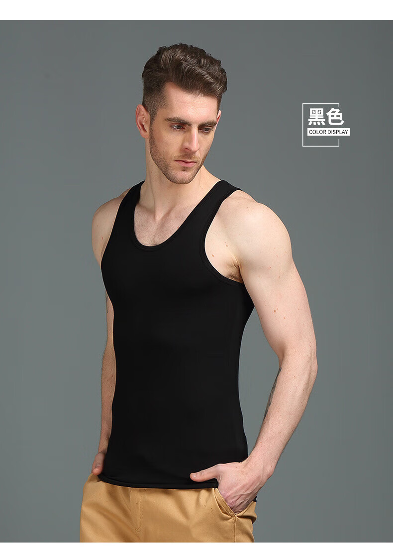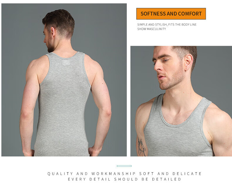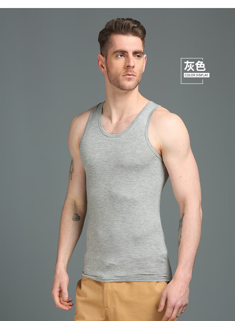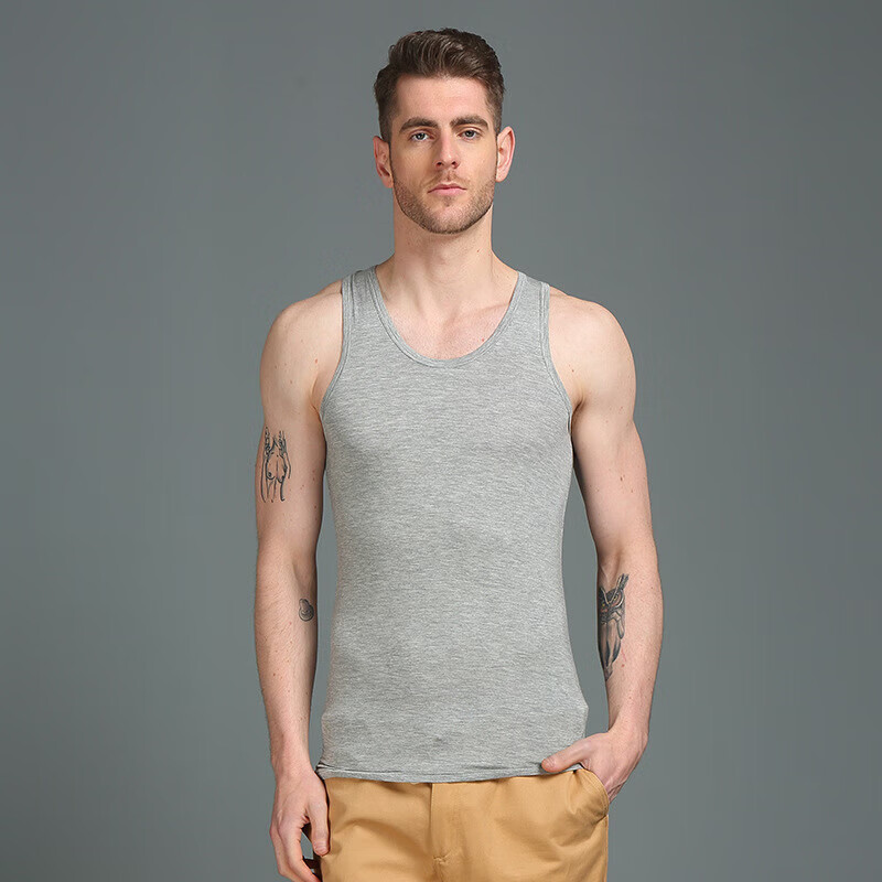 思织沁棉质男士背心大码健身运动跨栏打底无袖上衣夏季弹力修身透气打底 灰色 L
