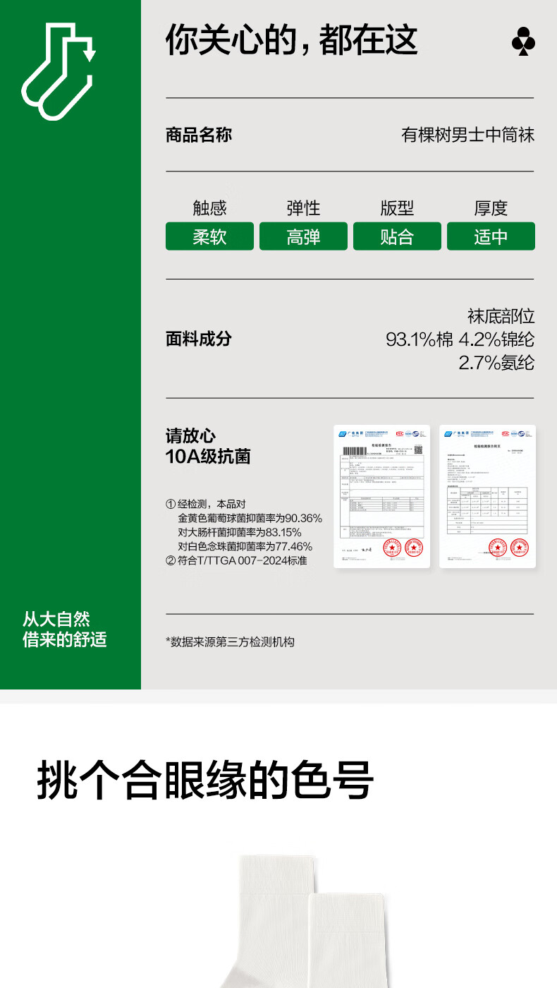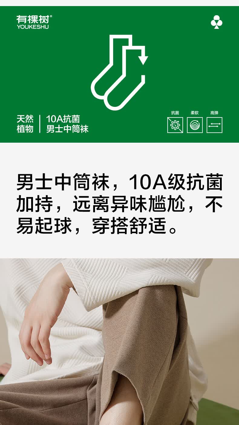 有棵树男士袜子男春夏季纯棉中高筒袜10A抗菌防臭吸汗透气抗起球袜
