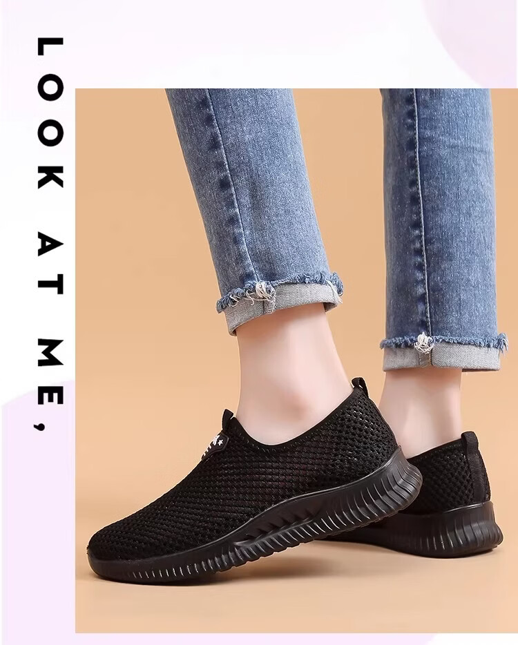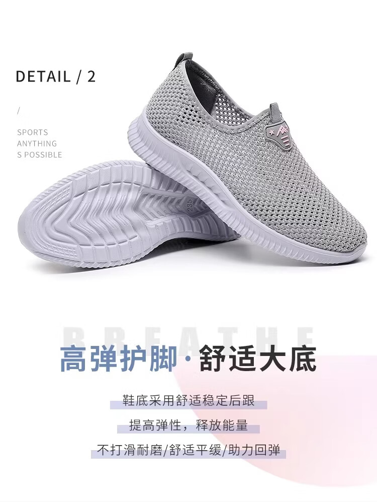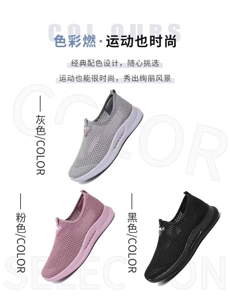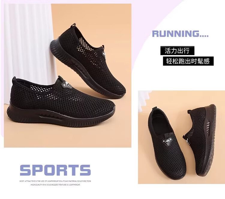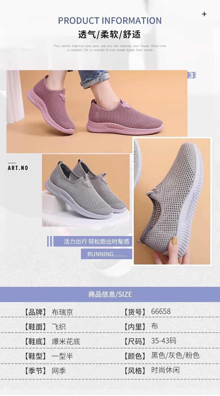 布瑞京(BURUIJING)夏季女鞋镂空网面老北京布鞋女透气中老年妈妈一脚蹬防滑老人网鞋 BRJ-66658黑色 43