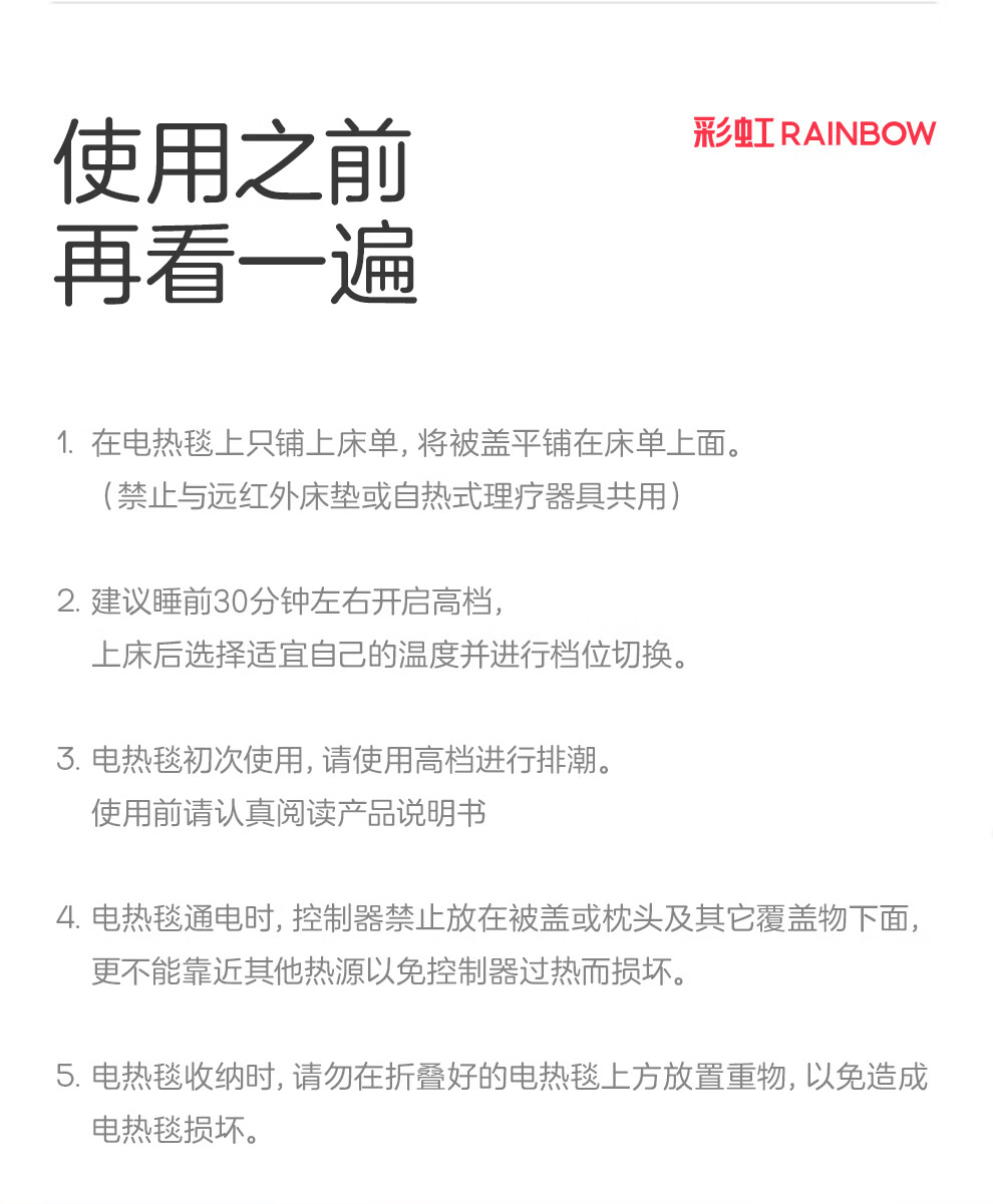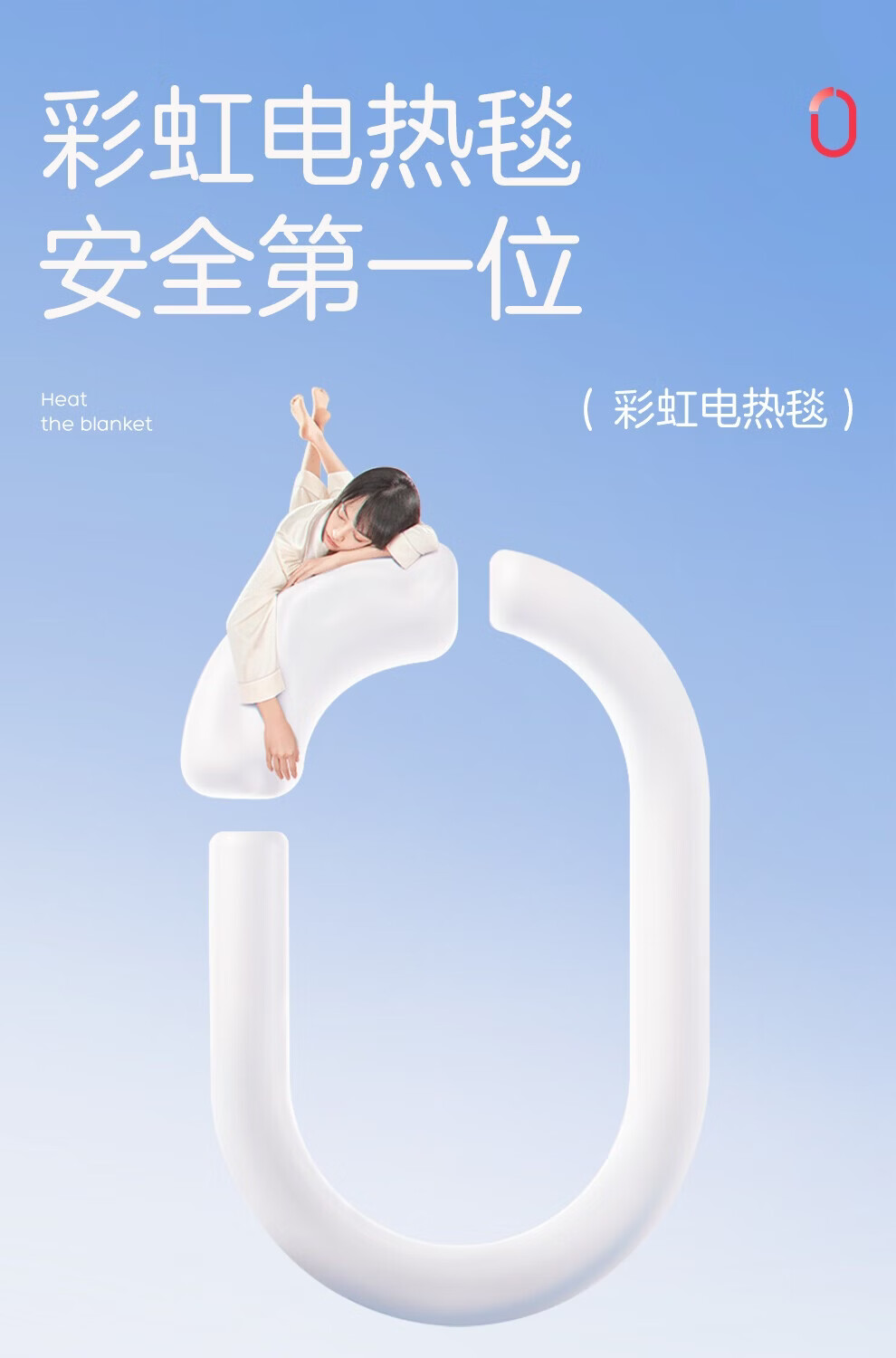 彩虹电热毯双人双控2*1.8米定时9档NTC调温可水洗加厚电褥子家用毯子 可水洗 NTC控温9档调温除菌除螨 15小时定时 2.0*1.8米