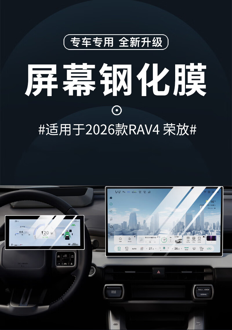 二膜2026款丰田荣放RAV4中控屏钢化膜导航显示屏幕保护贴膜内装饰配件 26款荣放RAV4【仪表】超清钢化膜