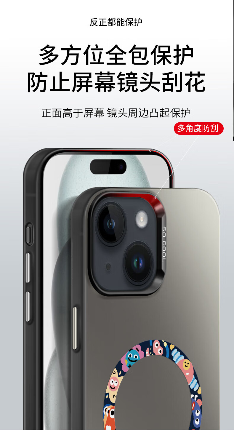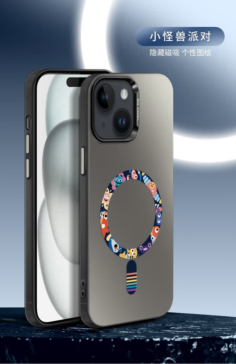 霸时代适用 iPhone15plus手机壳苹果15plus保护套全包磁吸超薄简约时尚创意卡通彩银防摔女男款外壳 彩银imd磁吸【小怪兽派对】 iPhone15plus