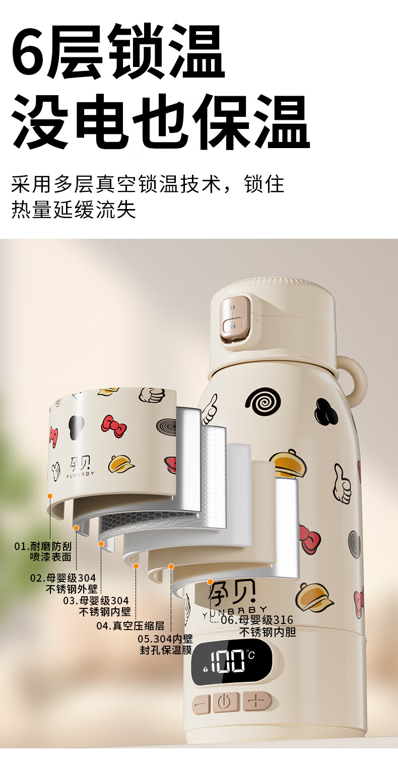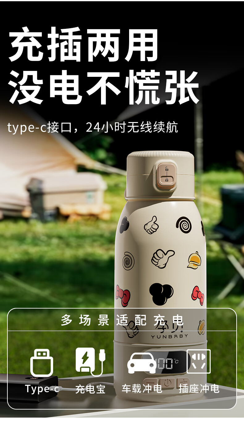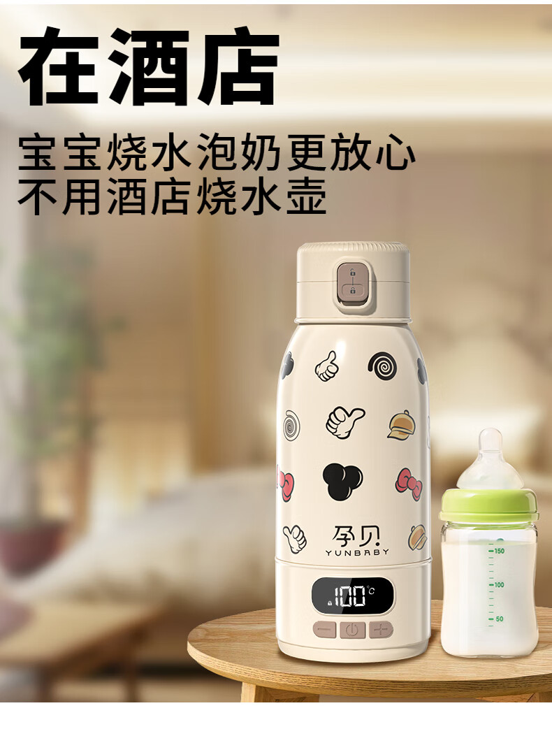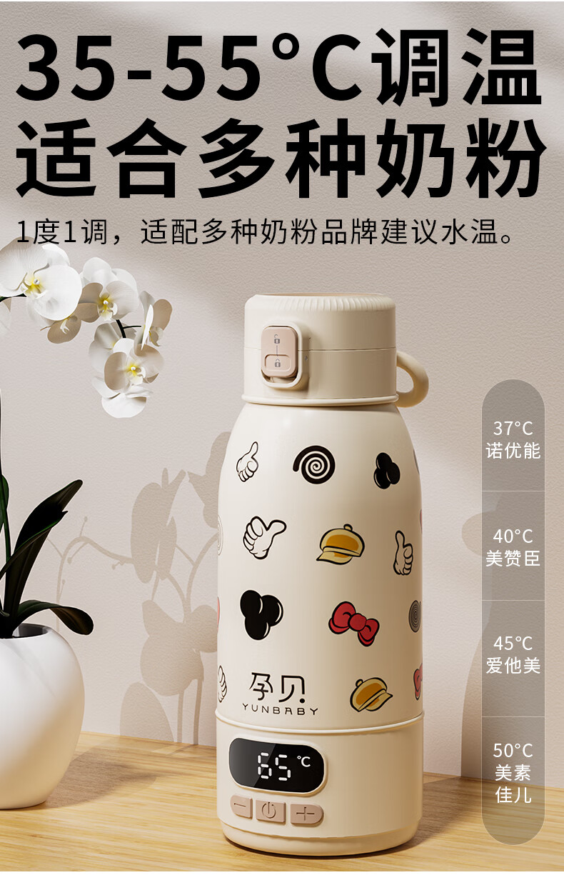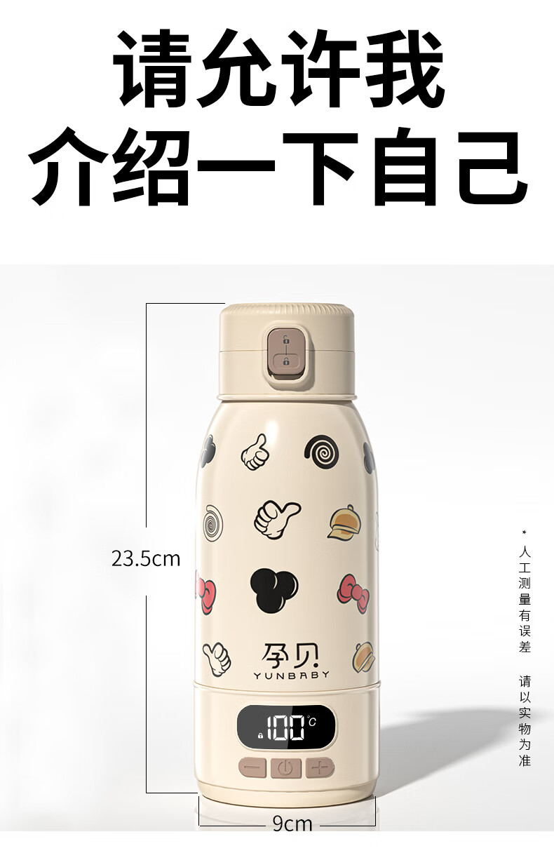 孕贝便携式恒温杯F18Y/F55 恒温水壶烧水杯婴儿外出冲奶恒温水杯500ml