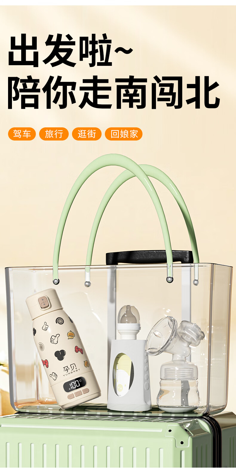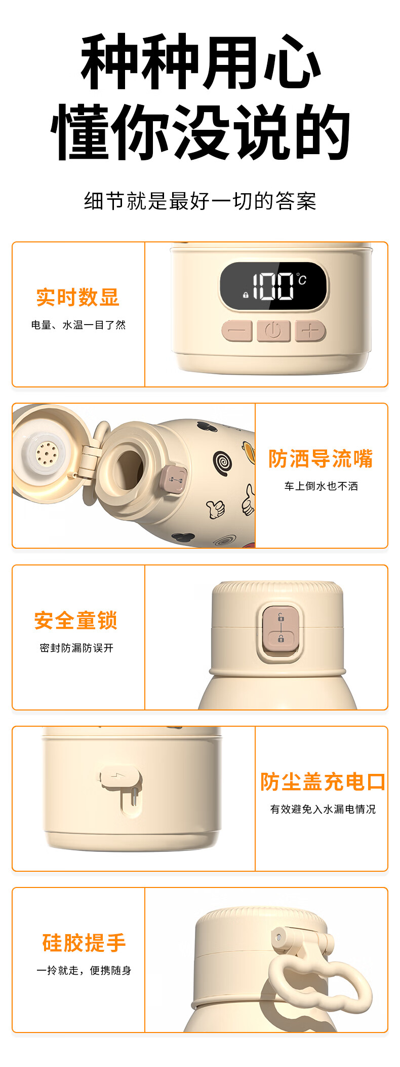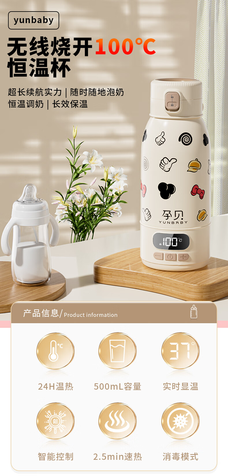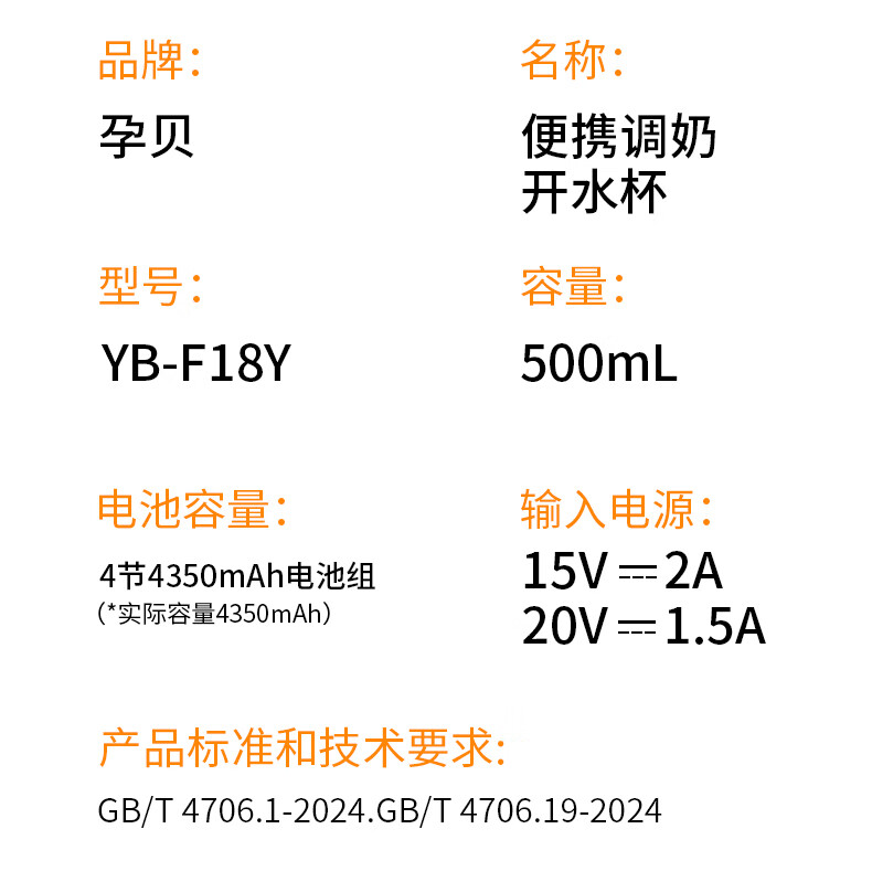 孕贝便携式恒温杯F18Y/F55 恒温水壶烧水杯婴儿外出冲奶恒温水杯500ml