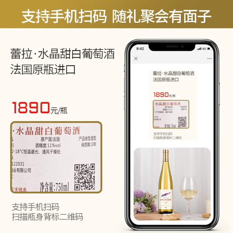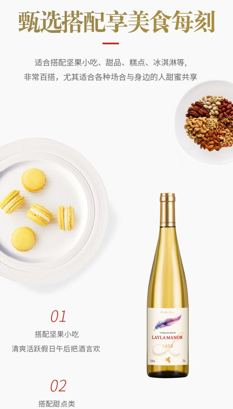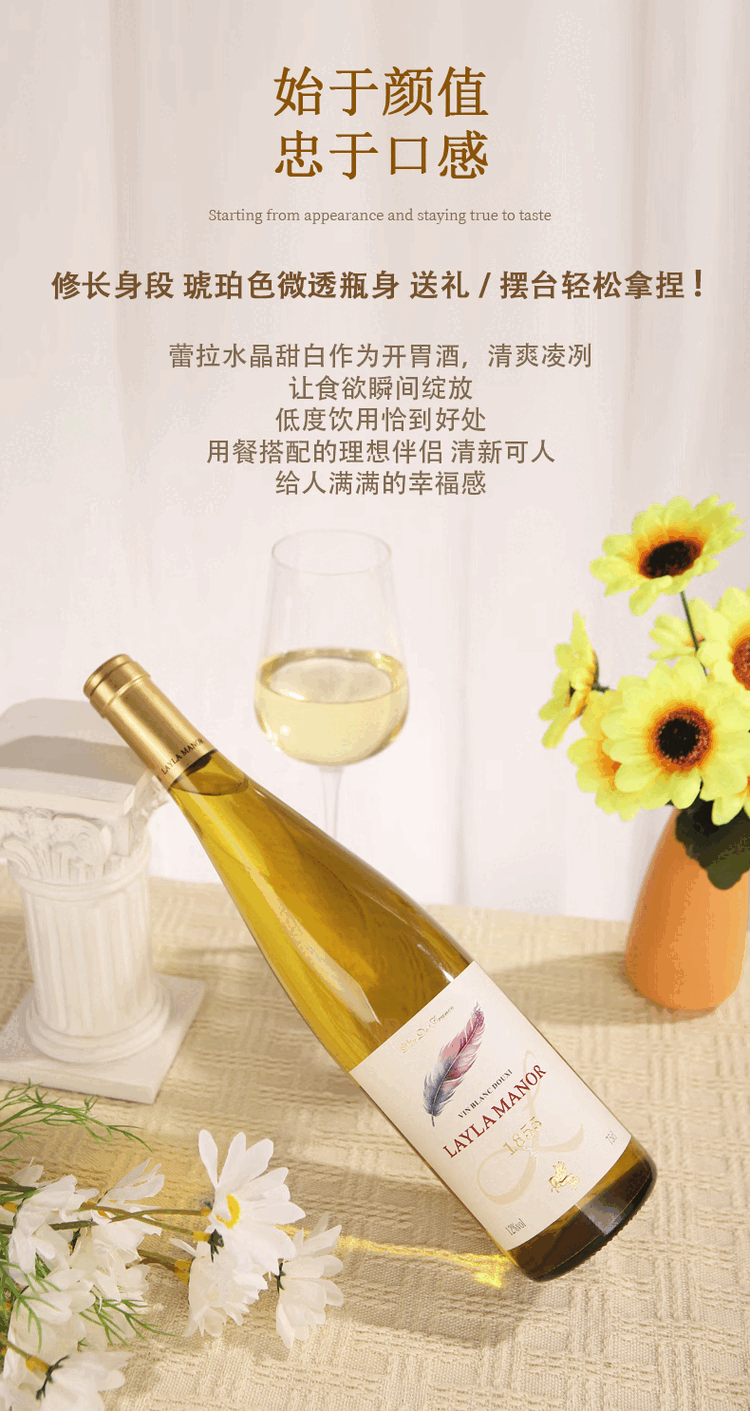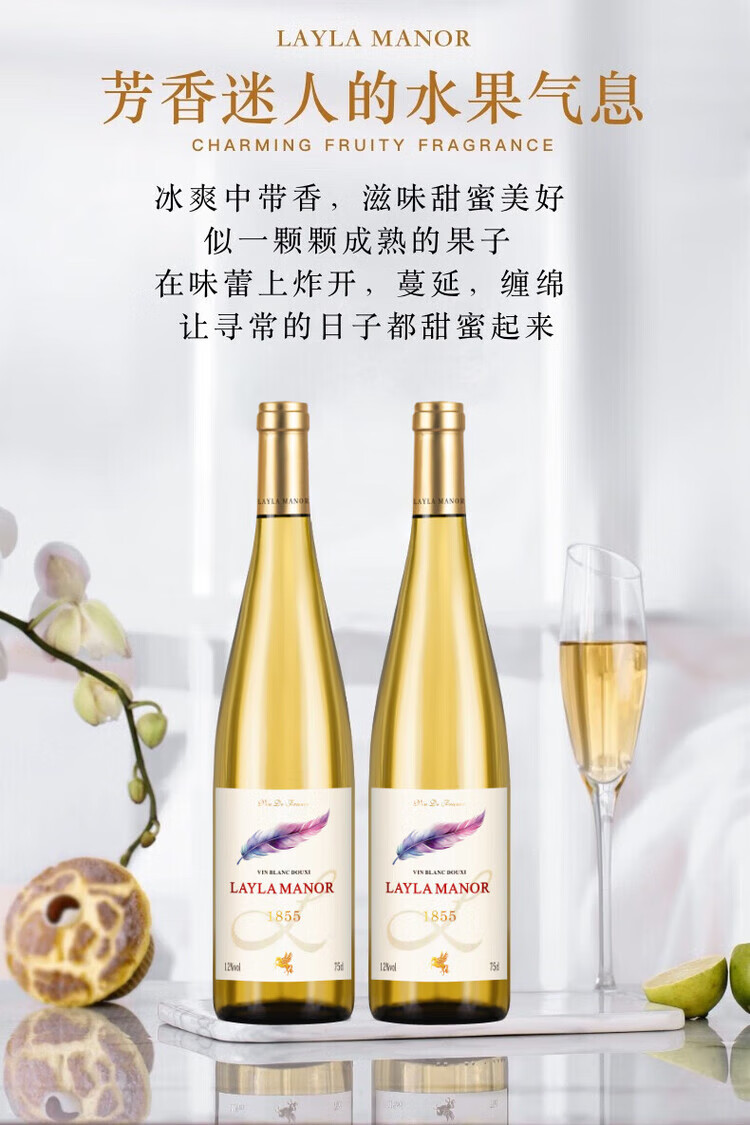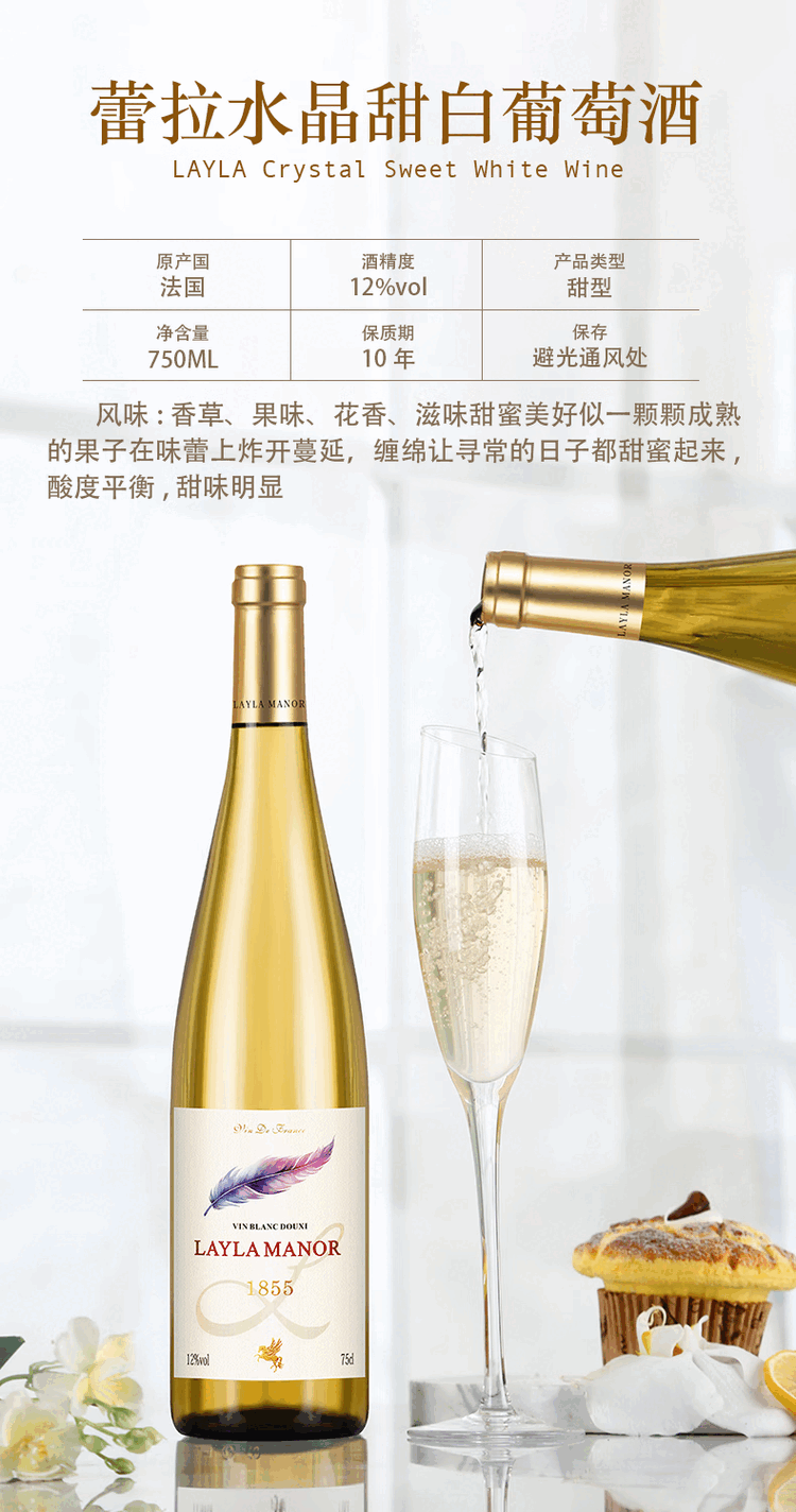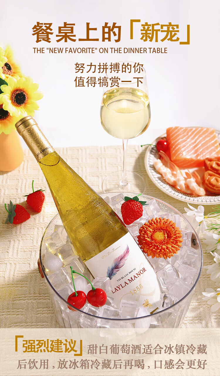 LAYLA【法国蕾拉】原瓶进口水晶甜白葡萄酒微醺果酒750mlX6瓶整箱送礼