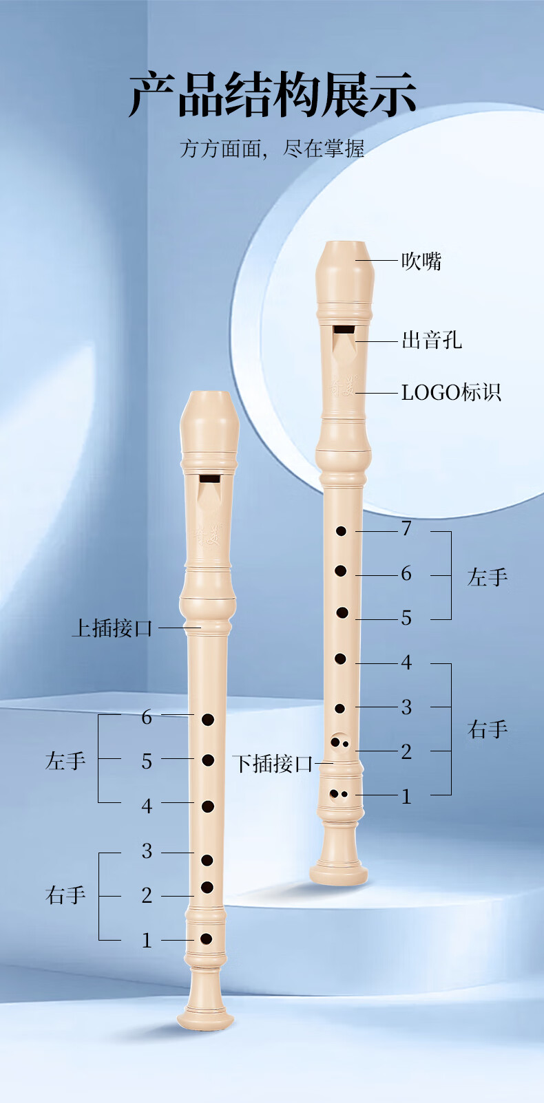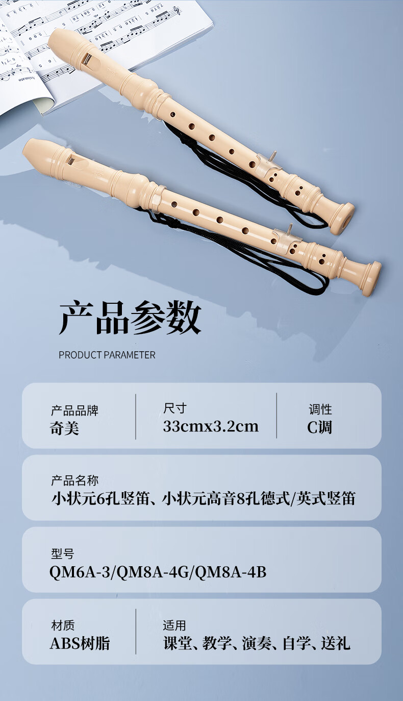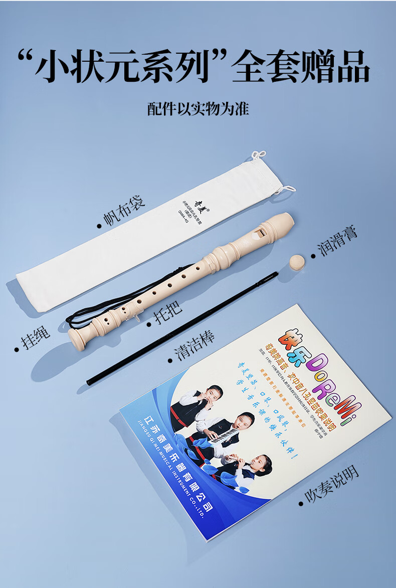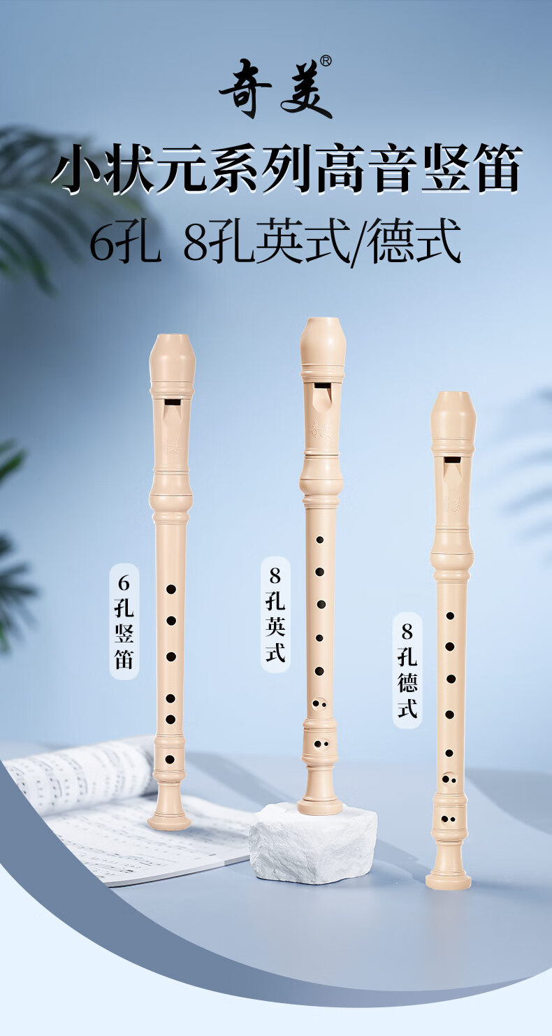 奇美小状元8孔课堂乐器高音德式八孔竖笛(帆布袋、带教材)