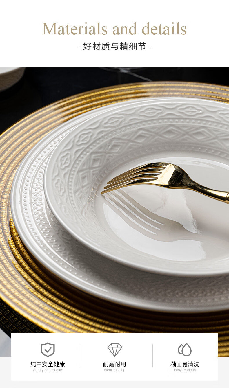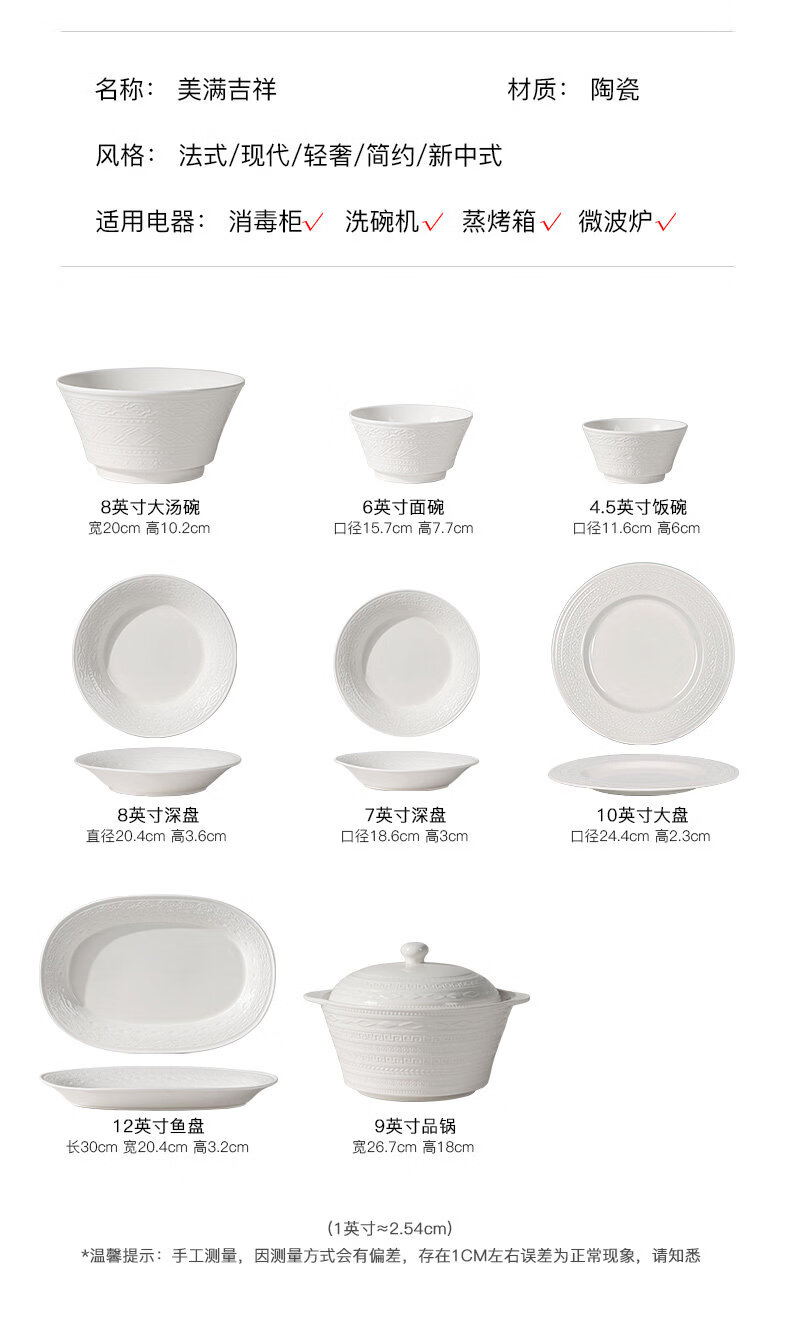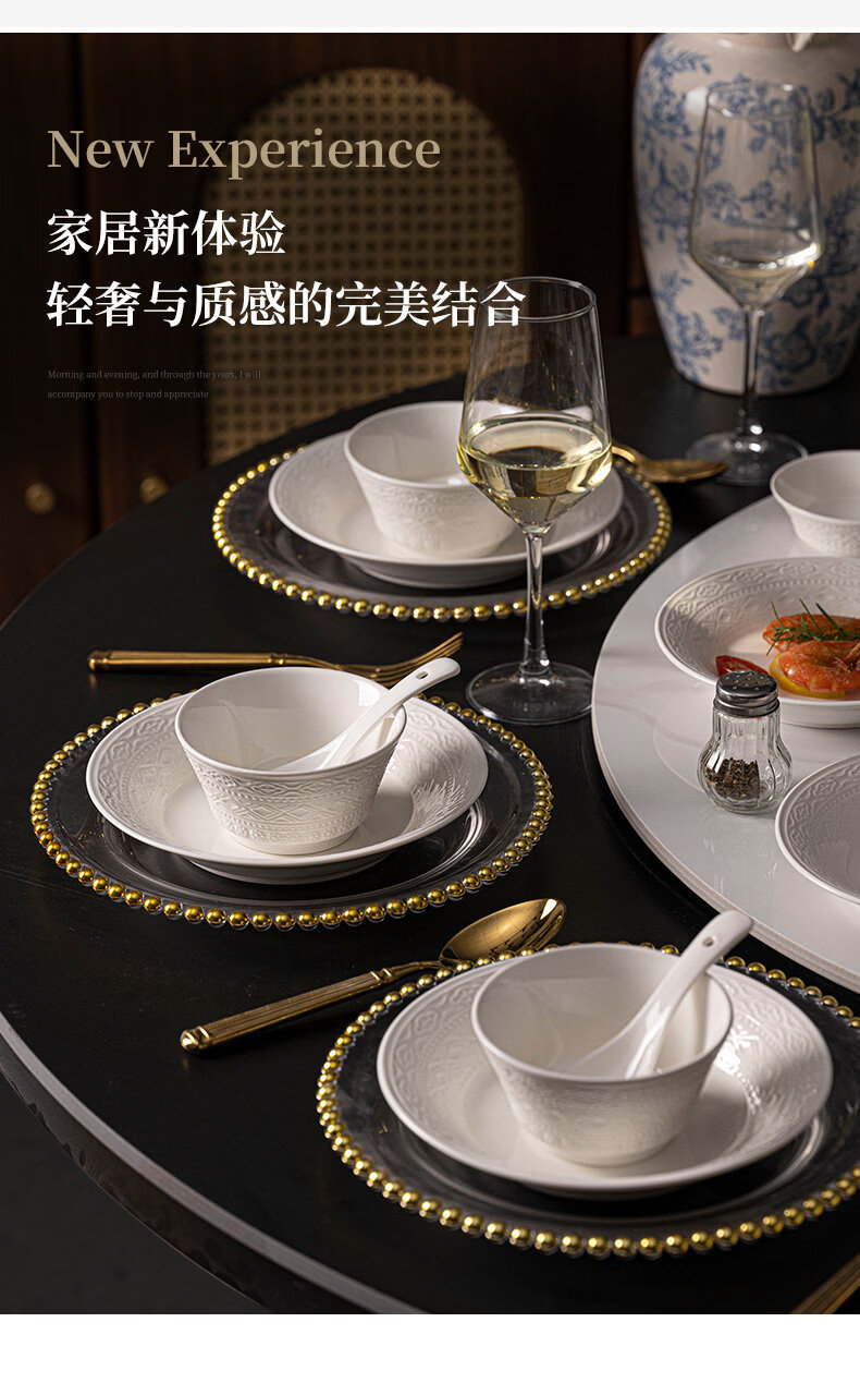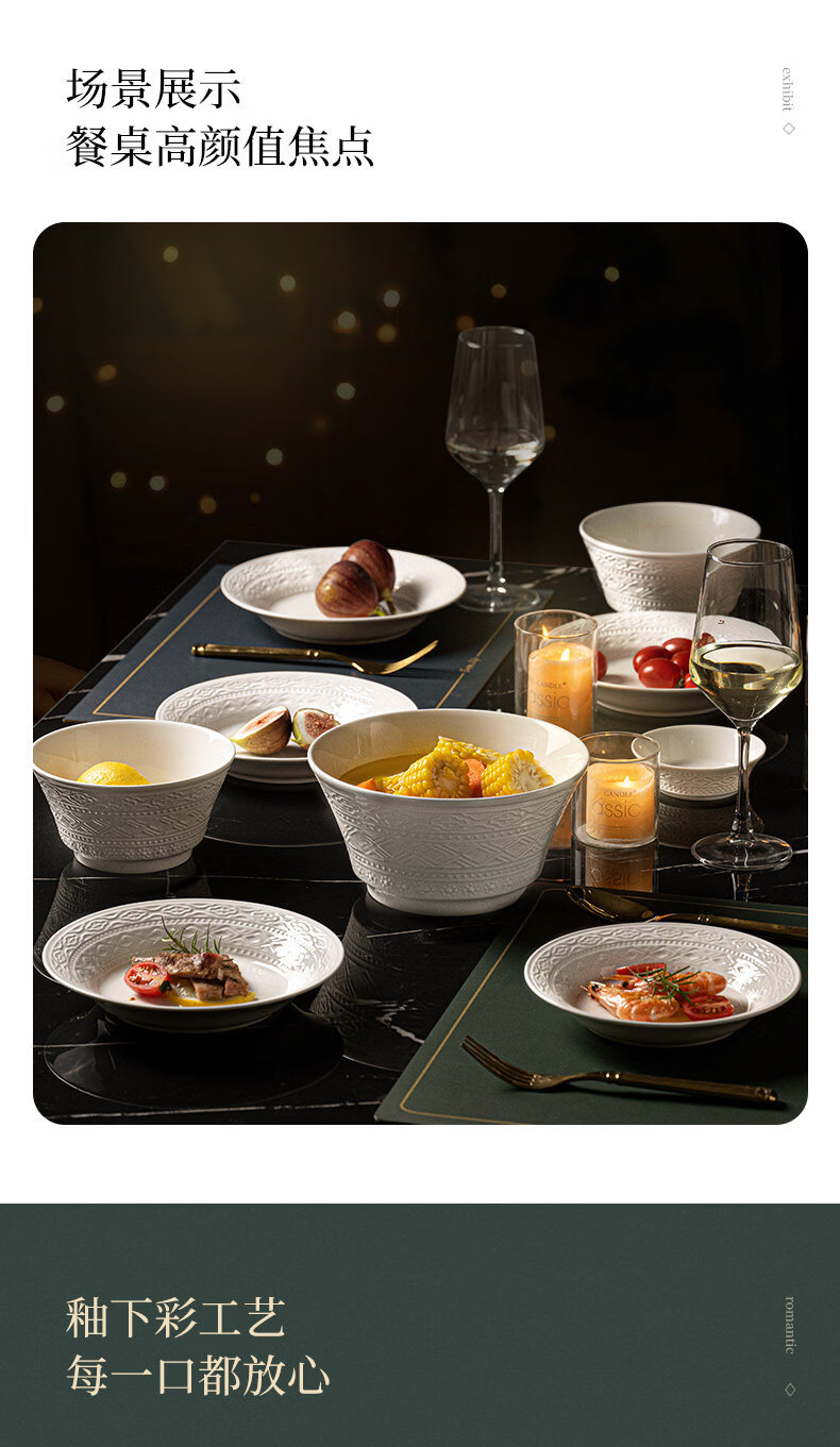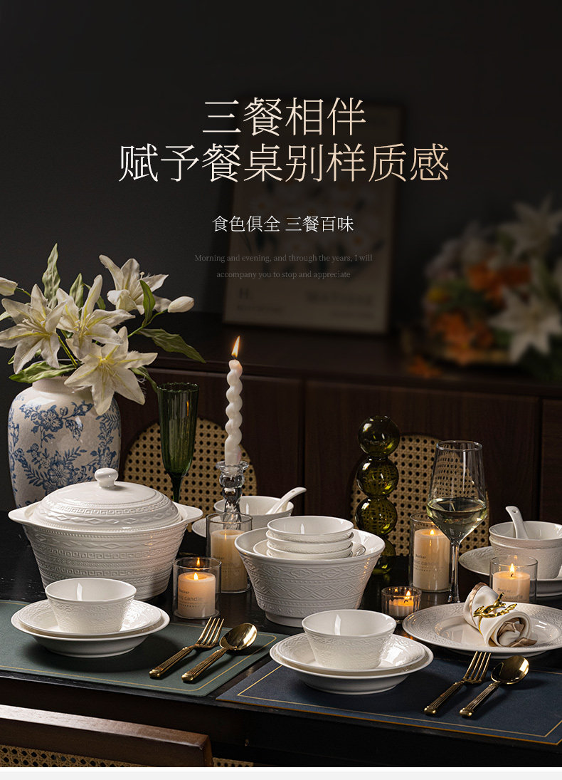 咏幻碗碟套装家用陶瓷餐具景德镇简约碗具釉下彩纯白碗盘碗筷盘子乔迁 美满吉祥6人食32件套[汤碗配置][礼盒包装]