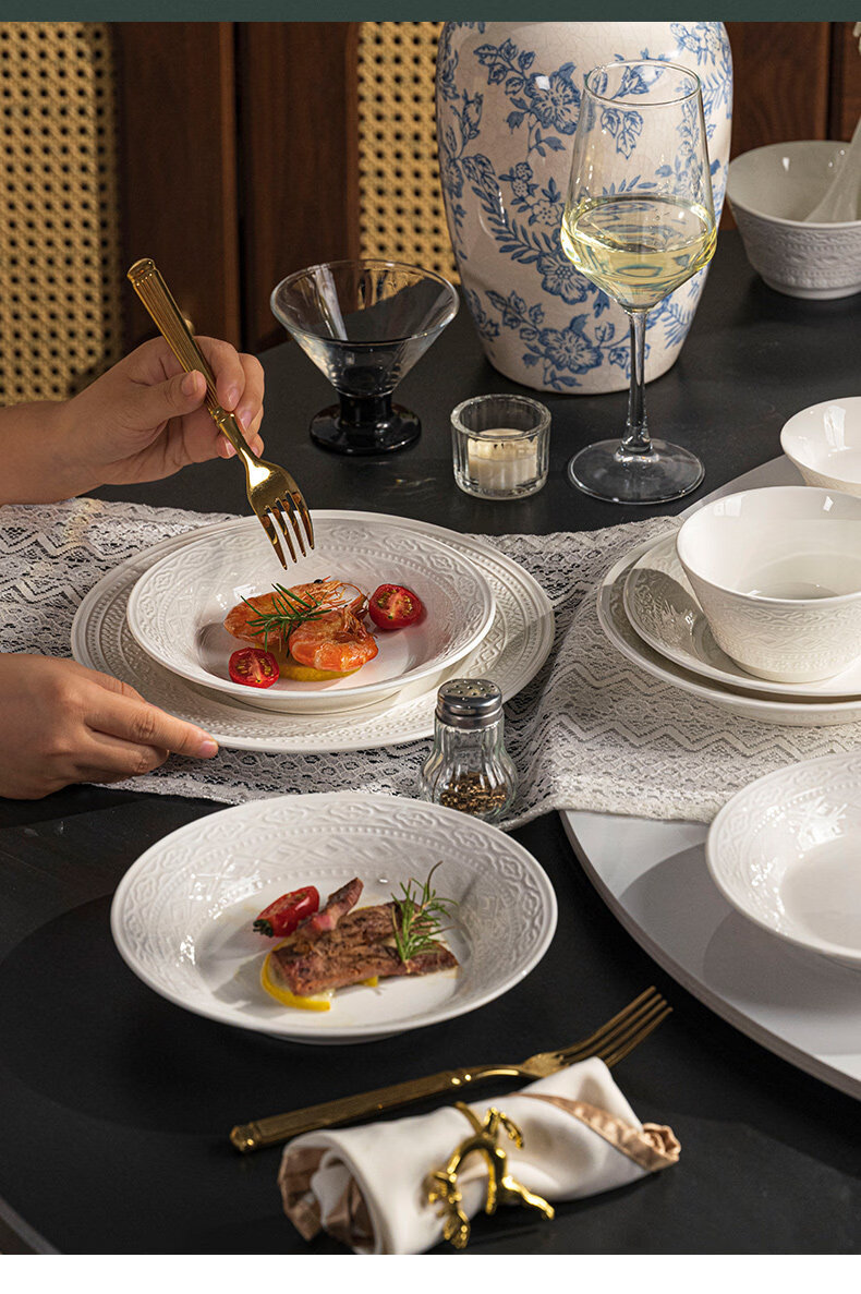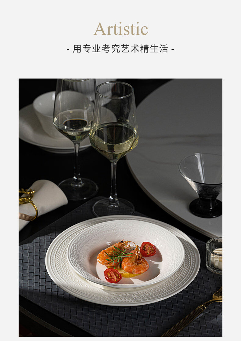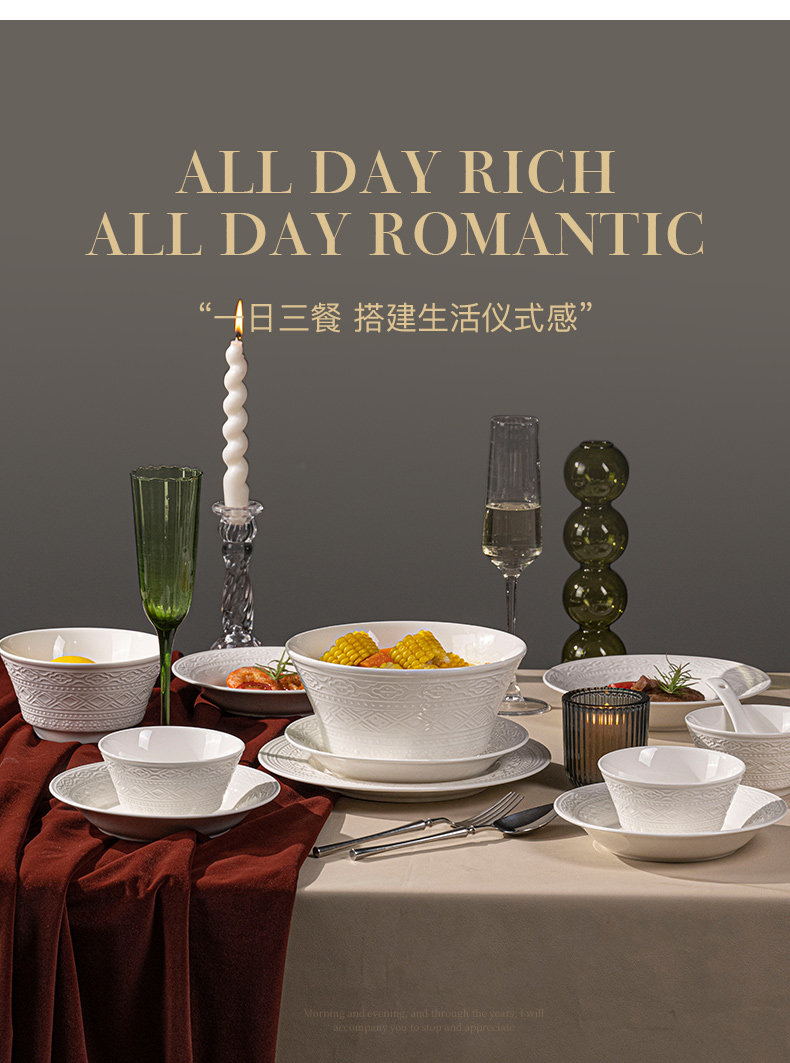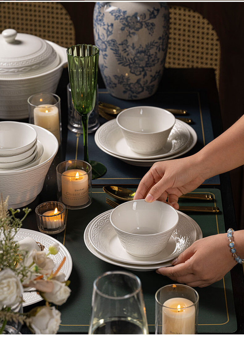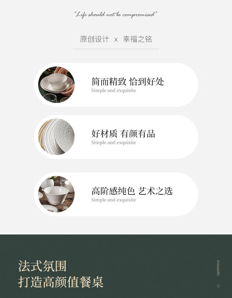 咏幻碗碟套装家用陶瓷餐具景德镇简约碗具釉下彩纯白碗盘碗筷盘子乔迁 美满吉祥6人食32件套[汤碗配置][礼盒包装]