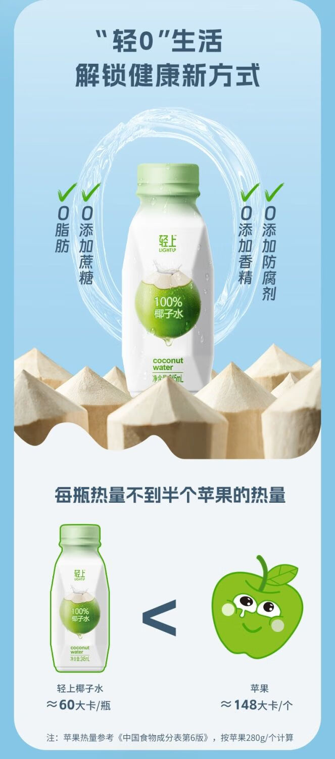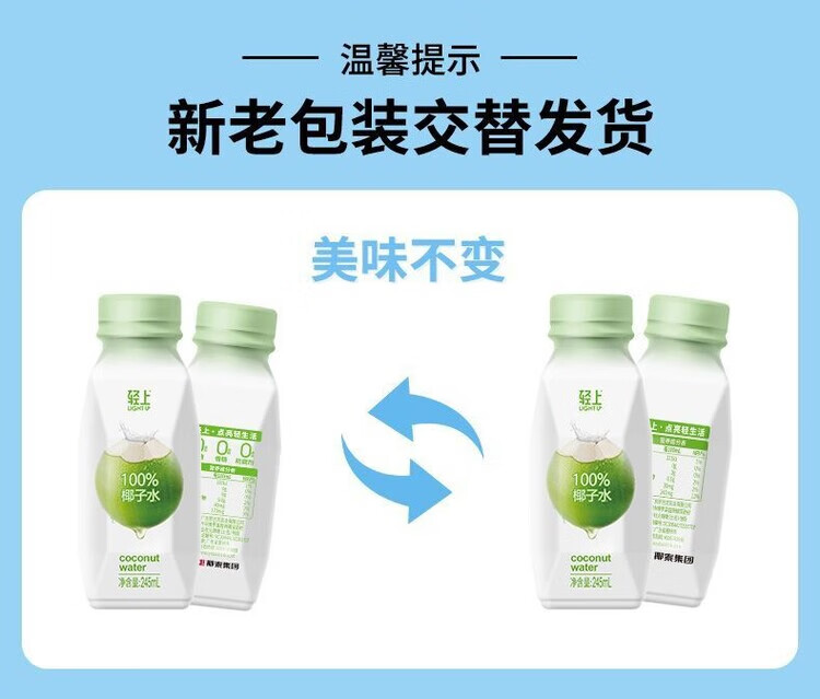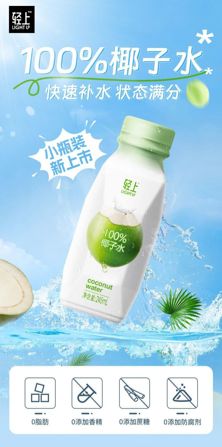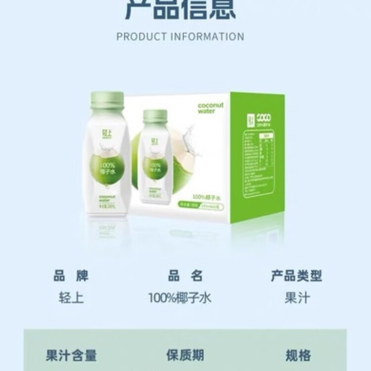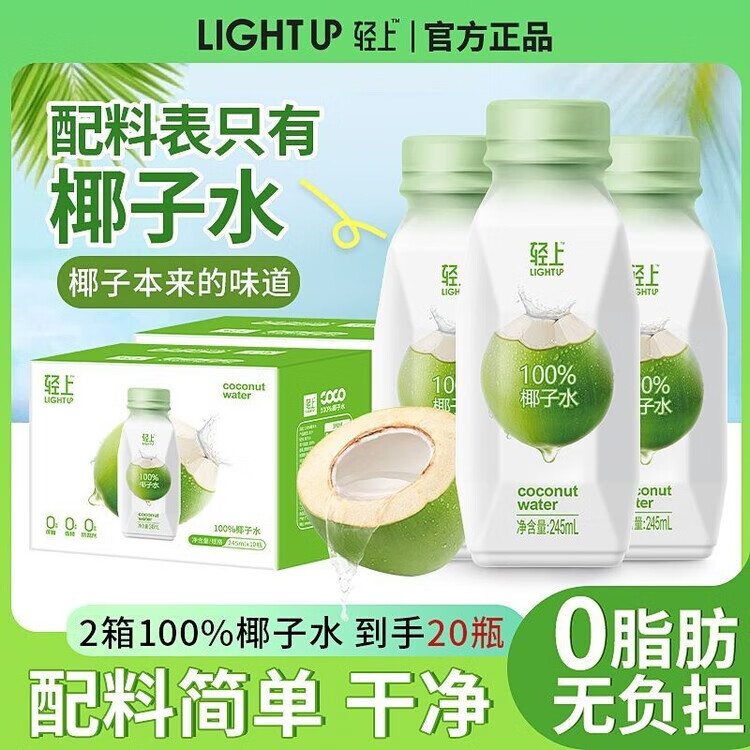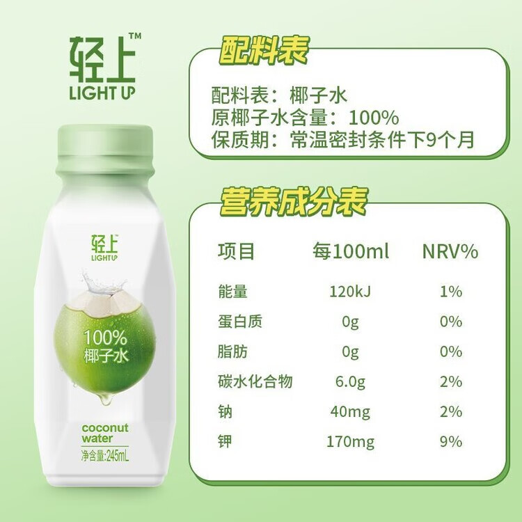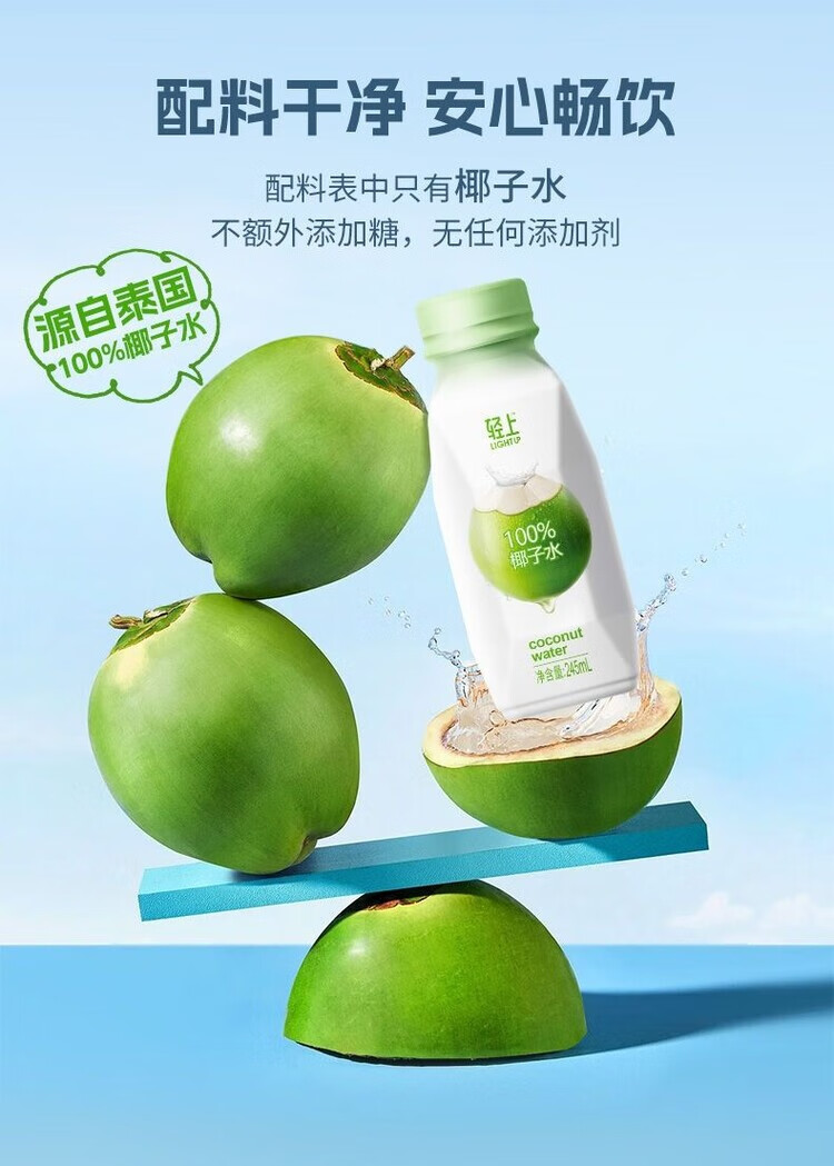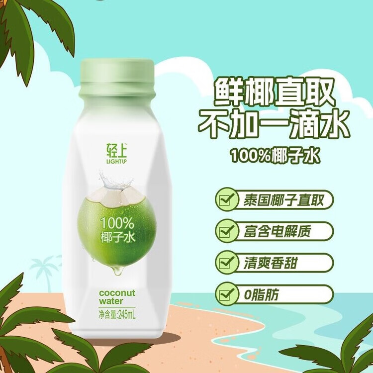 轻上椰子水100%纯椰汁孕妇学生宿舍饮品一整箱果汁饮料 100%椰子水/245ml*6瓶装