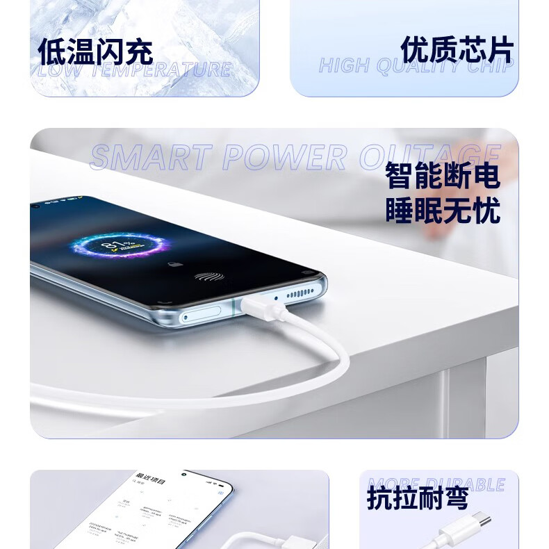 绿联Type-C数据线6A适用华为荣耀超级快充100W/88W/66W/40W充电线Pura80/70/Mate70小米安卓手机平板