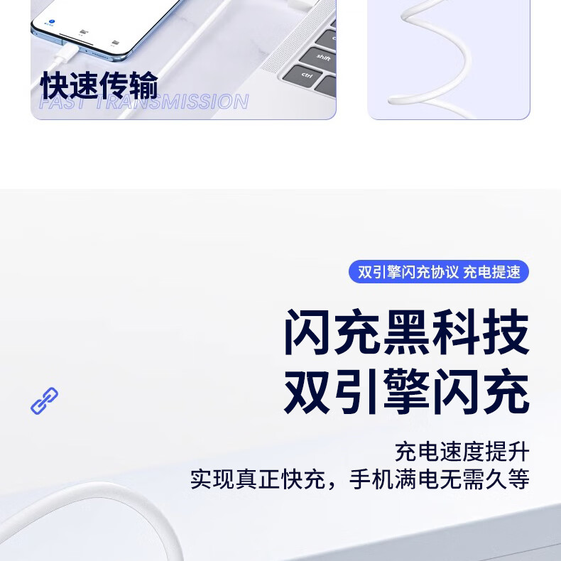 绿联【官方MFi认证】适用苹果14/13充电线Type-C数据线PD60/30/20W快充Lightning闪电接口iPhone手机