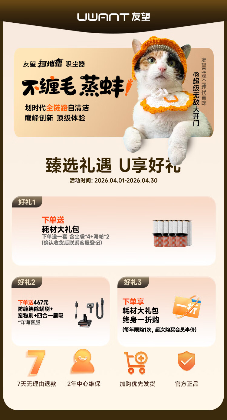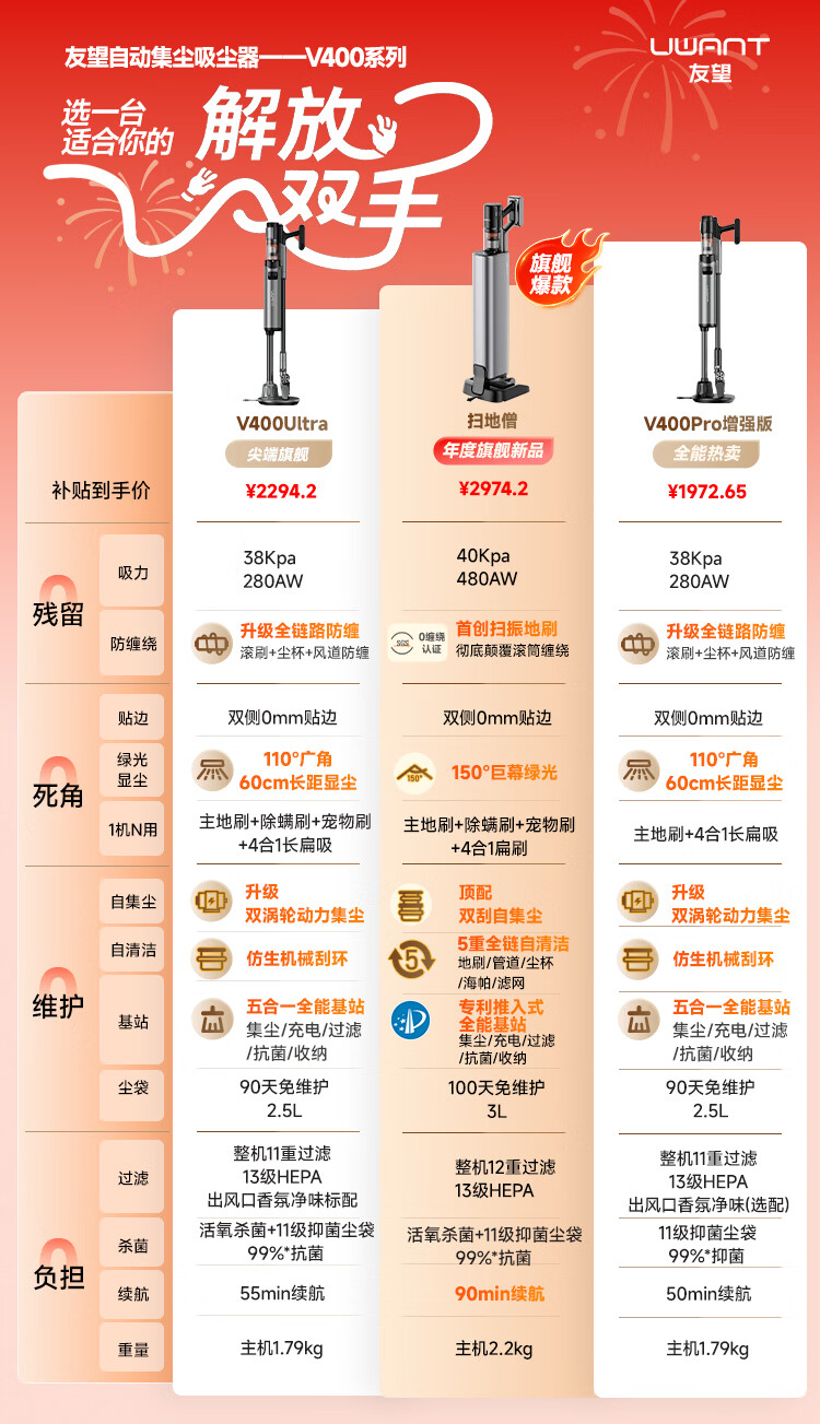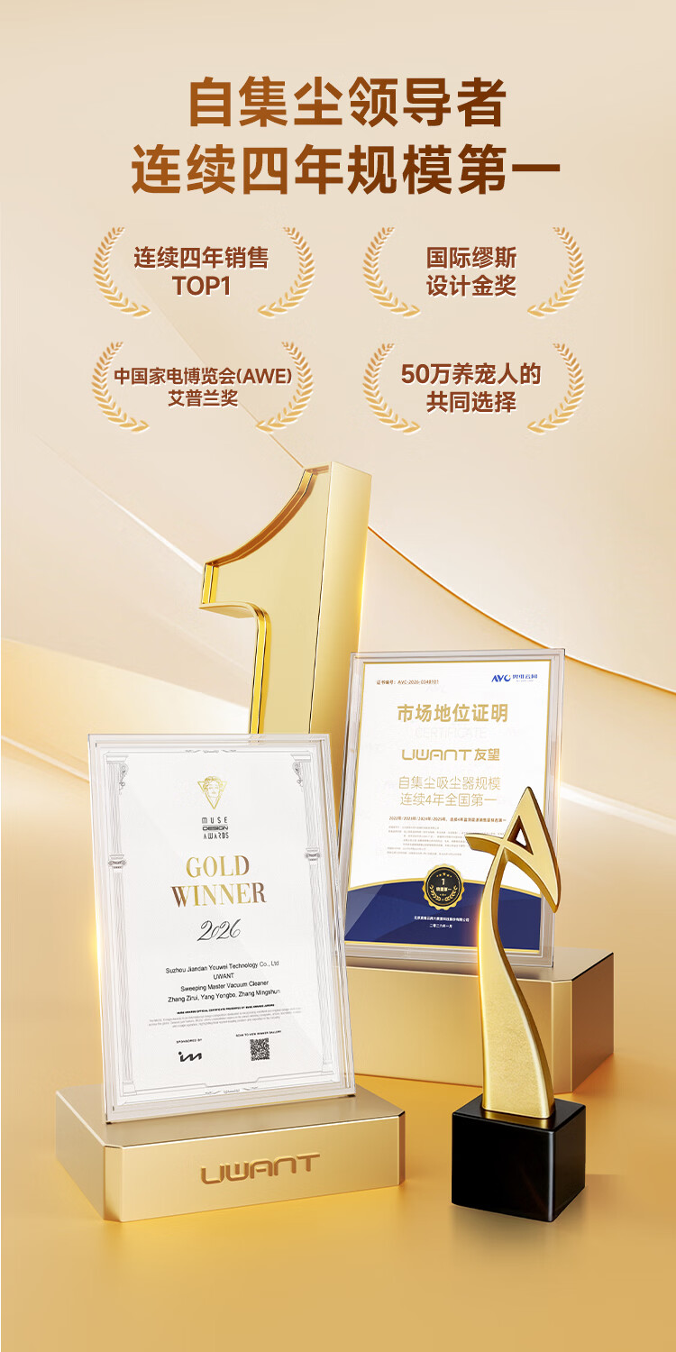 UWANT友望吸尘器扫地僧「AWE艾普兰奖」大吸力除菌除螨仪自集尘【全链防缠绕】家用无线手持扫地机