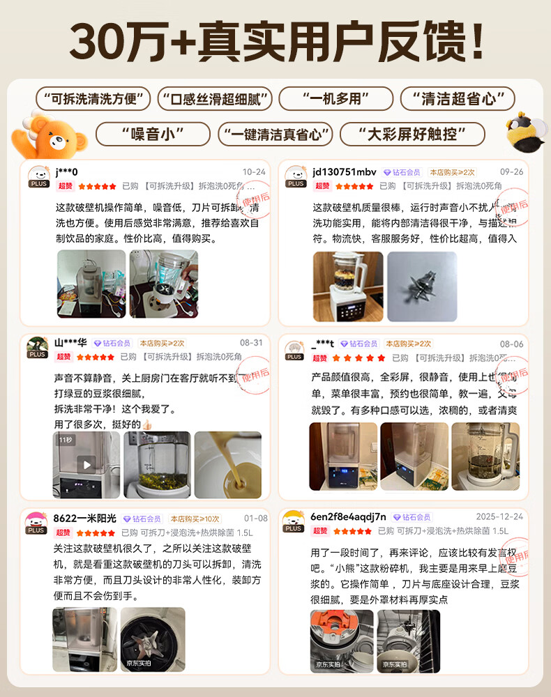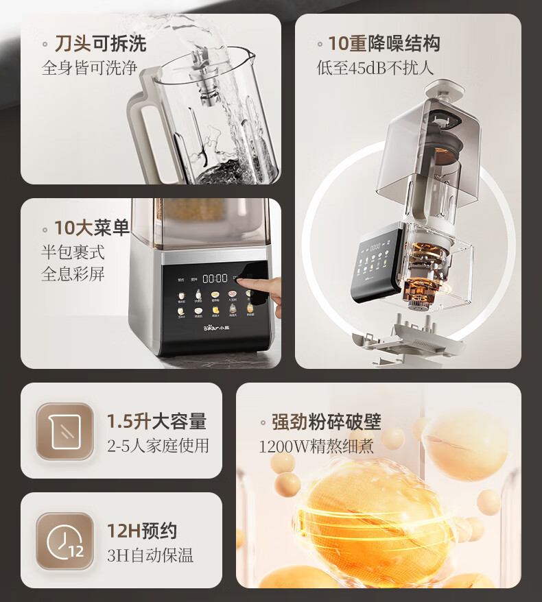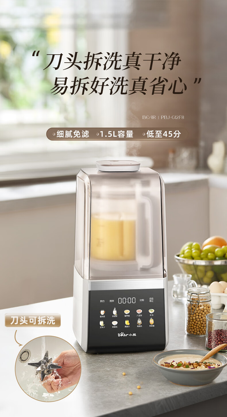 小熊(Bear)破壁机家用自清洗1.5L可拆洗免滤破壁机全自动免煮辅食机多功能料理机榨汁机3-4人G12F8