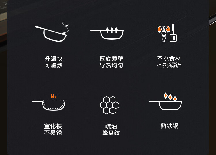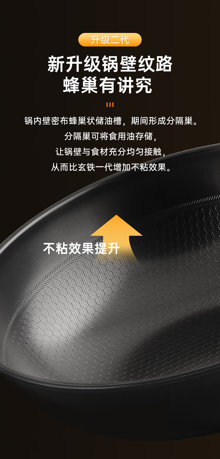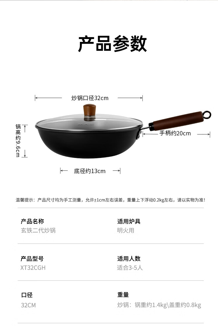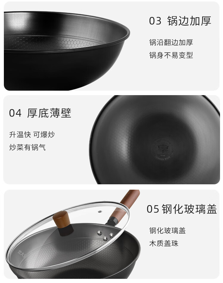 炊大皇炒锅铁锅健康0无涂层蜂窝纹32cm家用炒菜锅熟铁锅