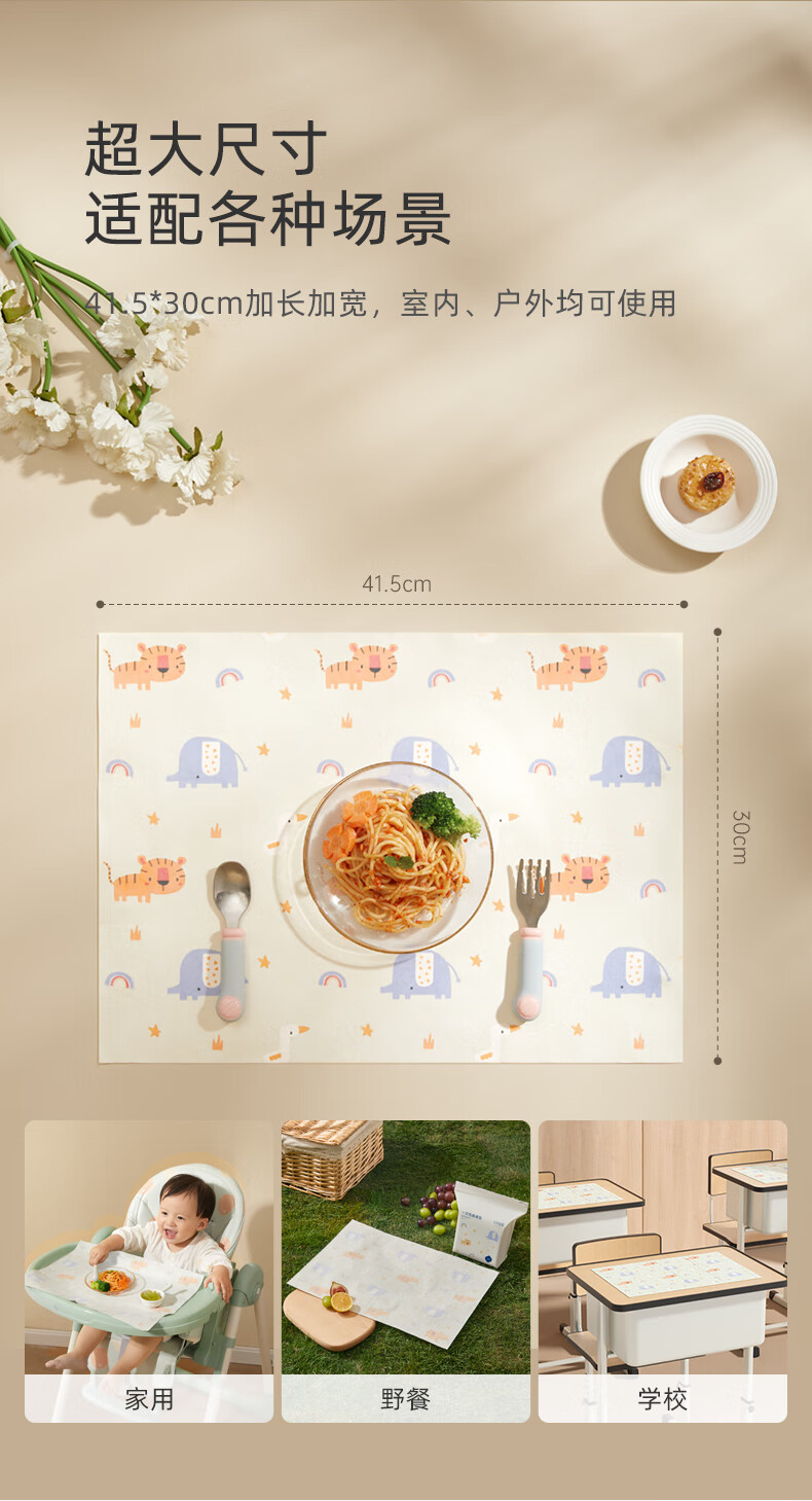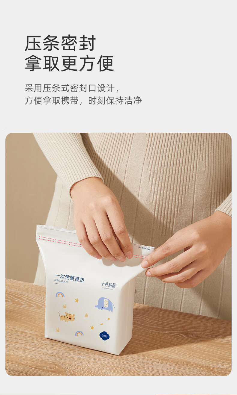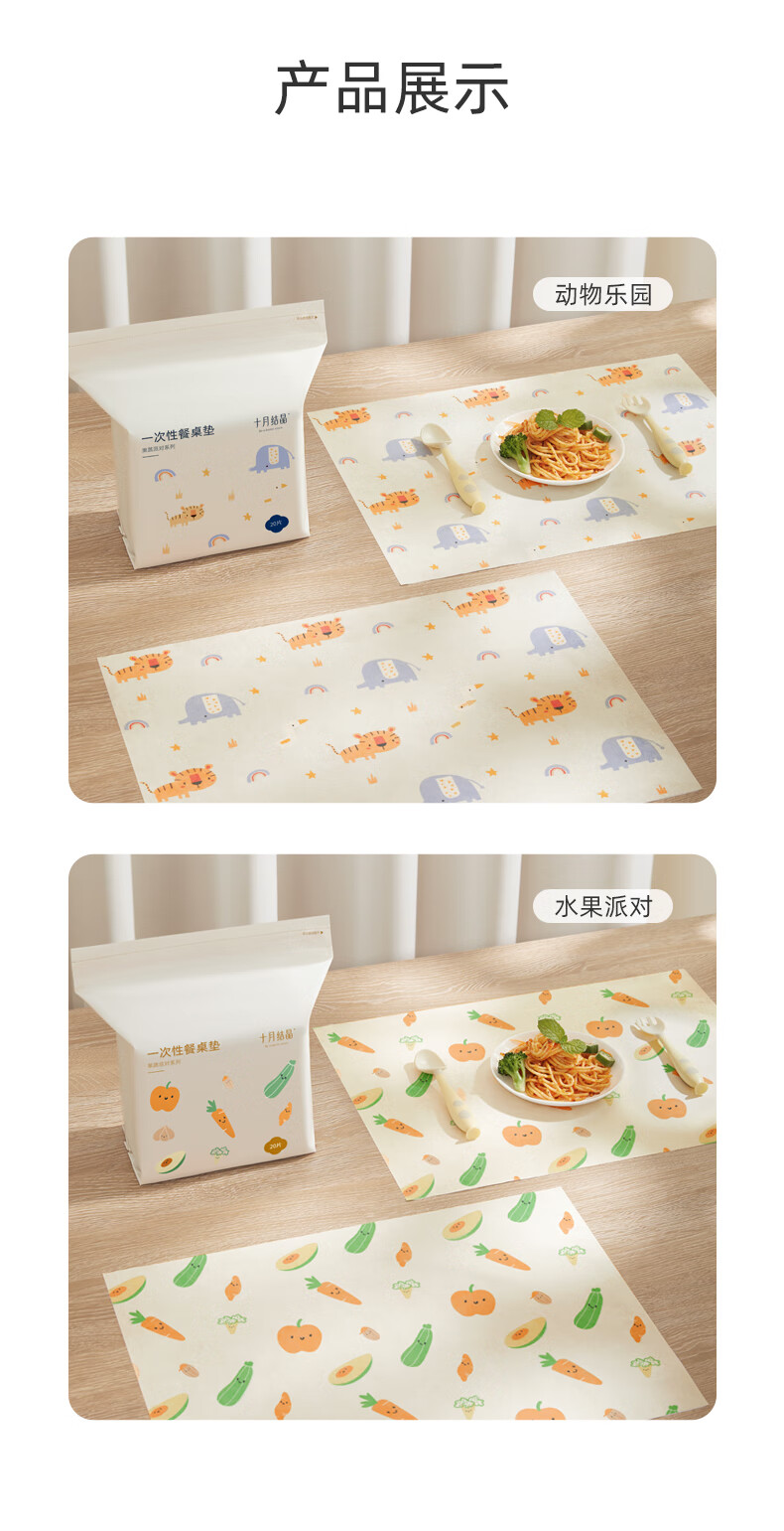 十月结晶一次性餐垫 儿童外出吃饭隔污桌布便携20片装 动物乐园