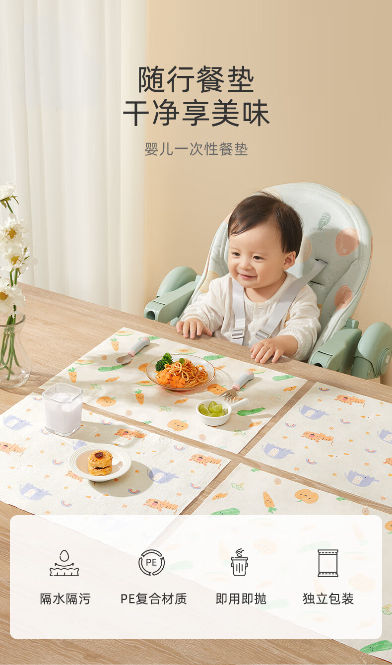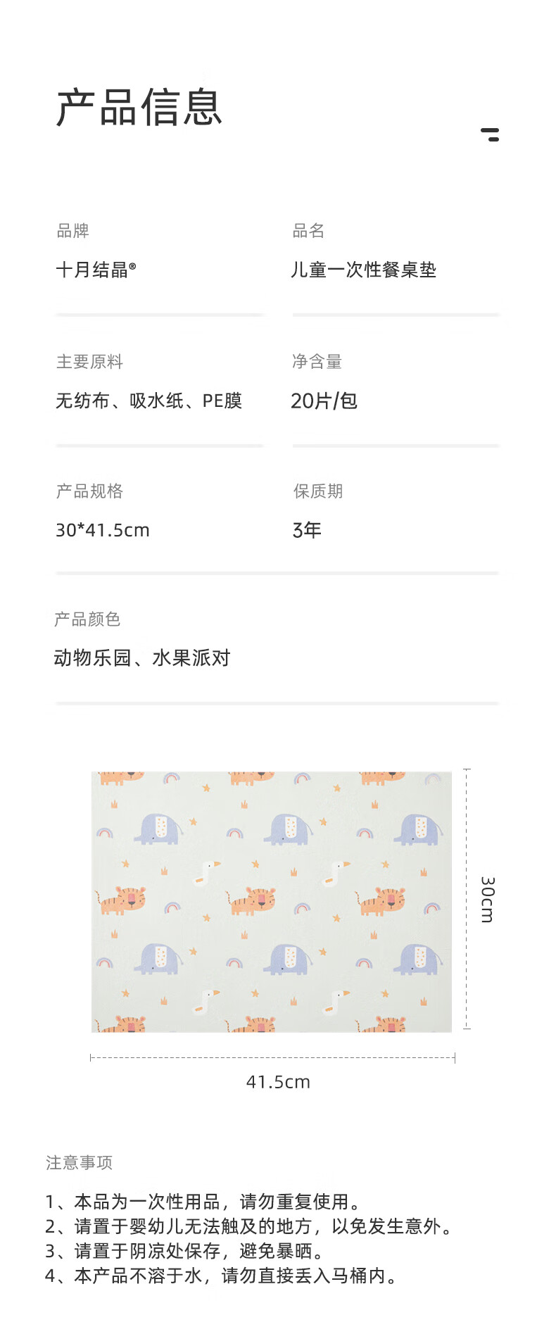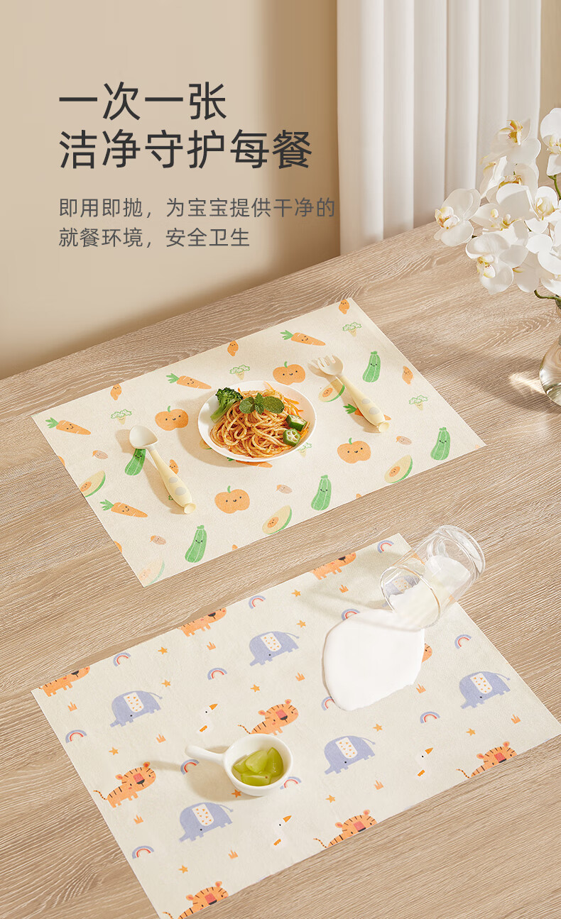 十月结晶一次性餐垫 儿童外出吃饭隔污桌布便携20片装 动物乐园