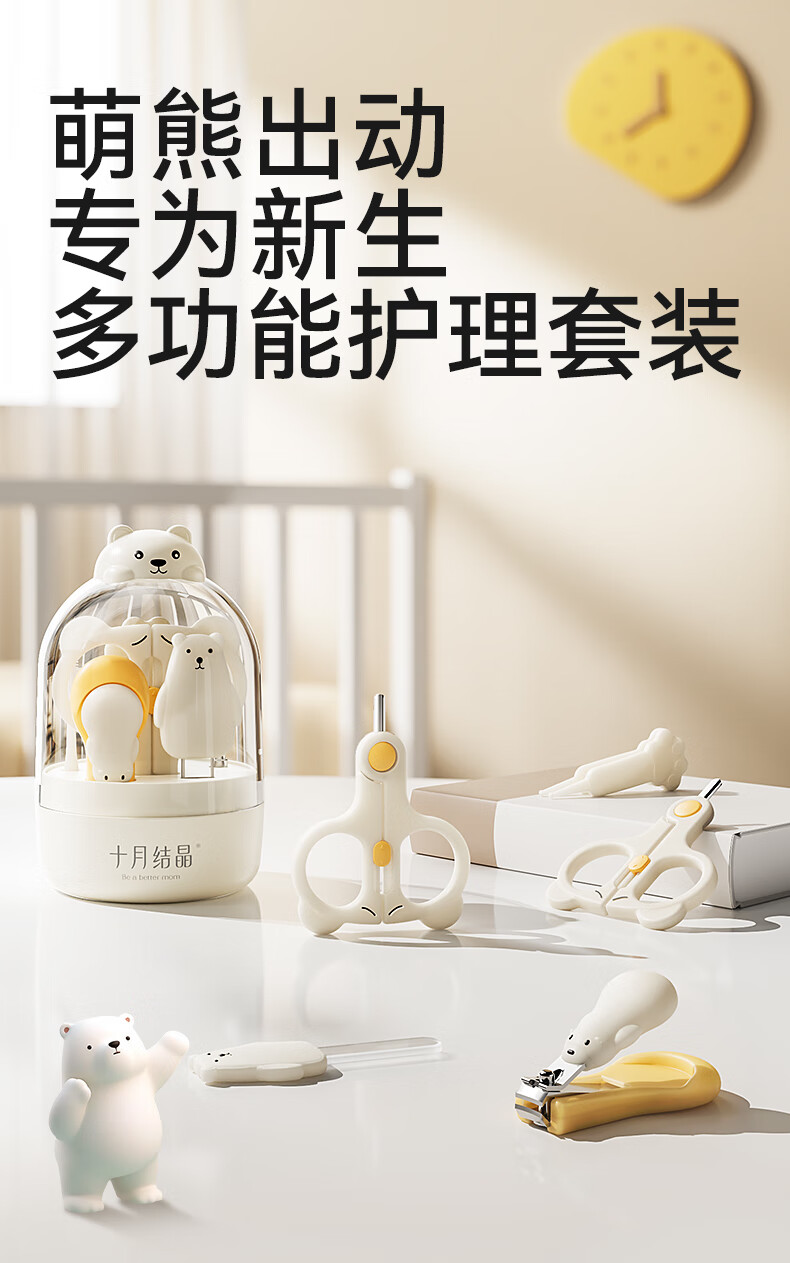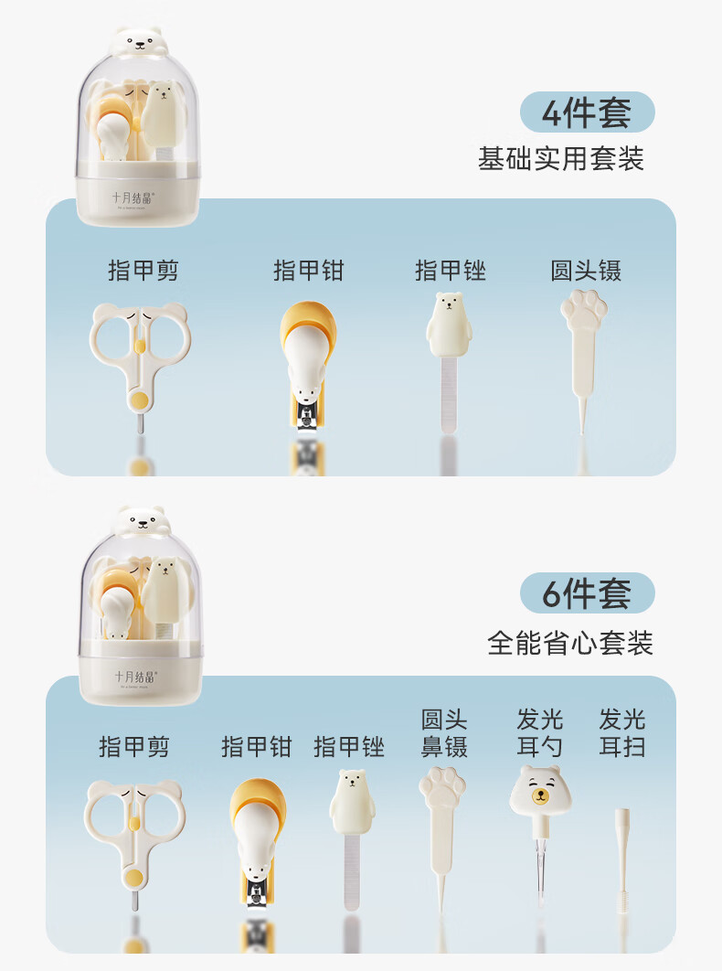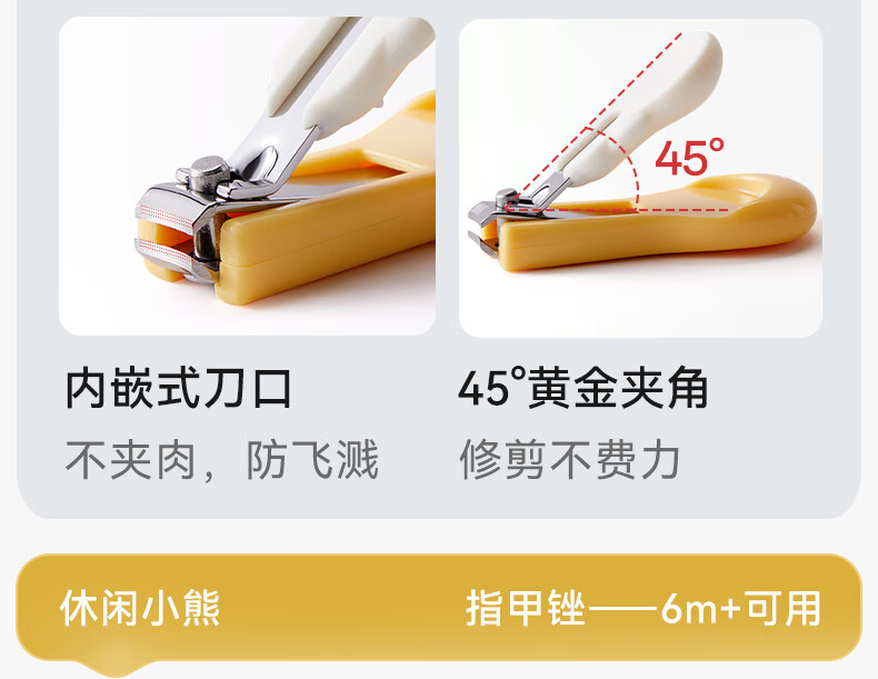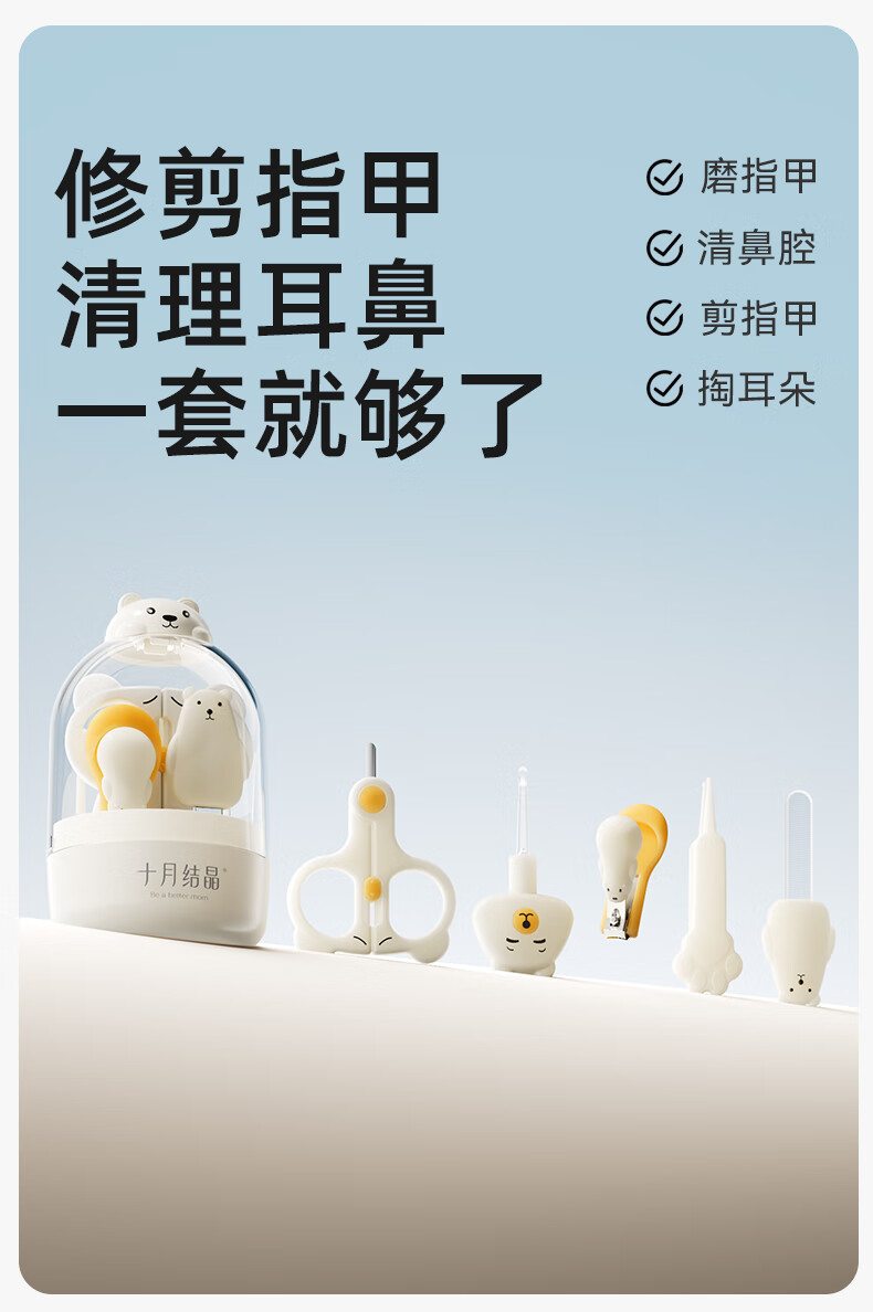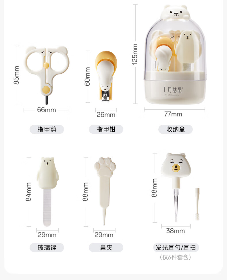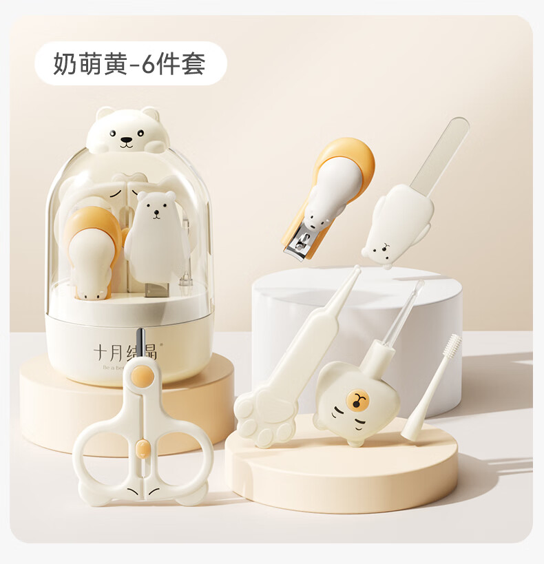 十月结晶婴儿指甲剪套装儿童指甲刀宝宝防夹肉指甲打磨神器6件套奶萌黄