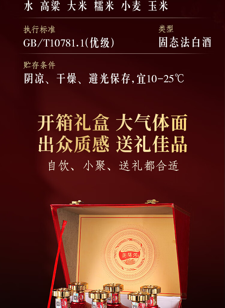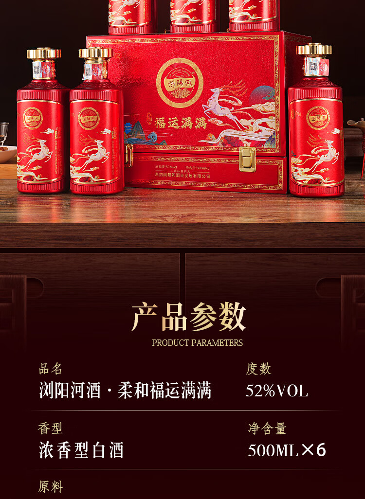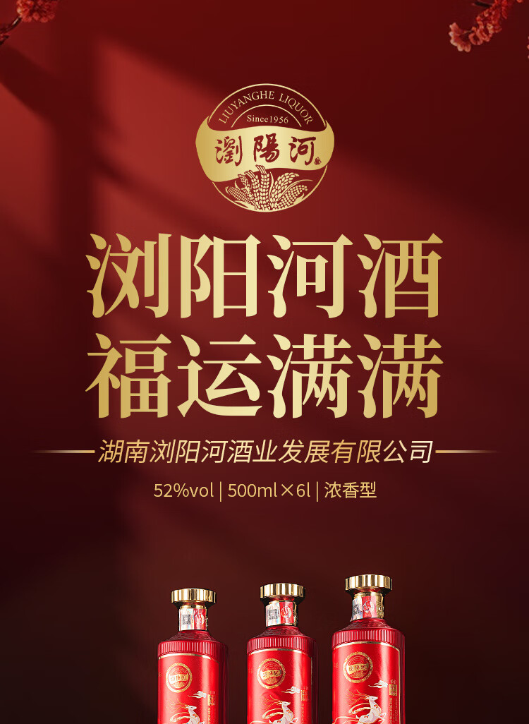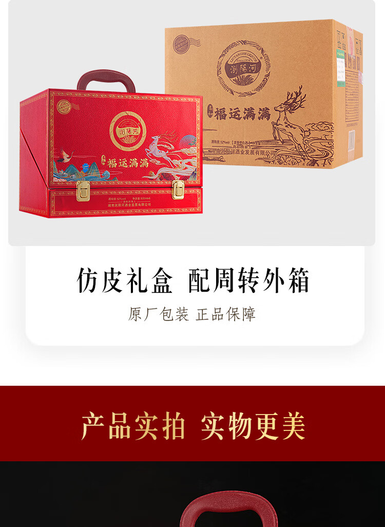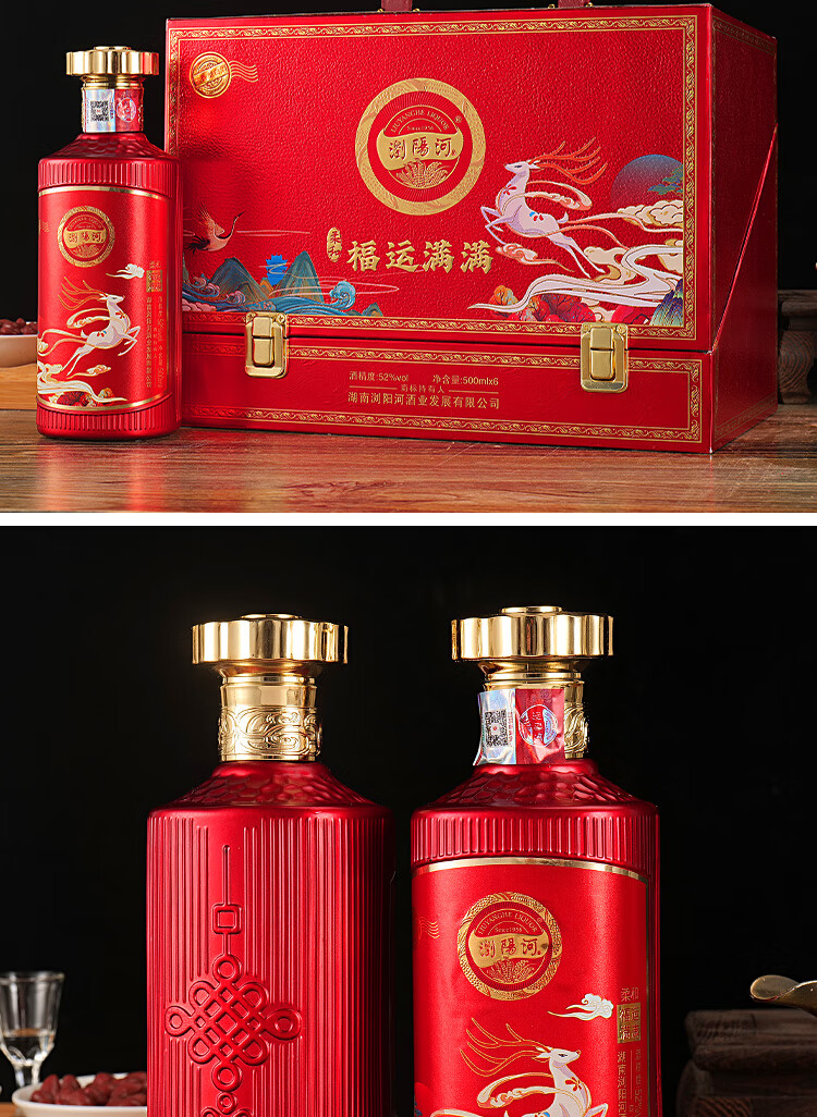 瀏陽河酒 福运满满 52度浓香型白酒 500ML*6瓶 仿皮礼盒 送礼 宴请 正品 52度 500mL 6瓶