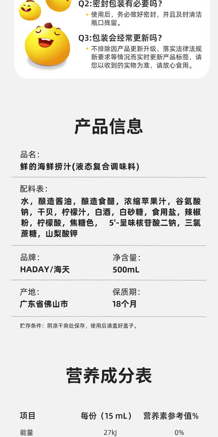 海天 海鲜捞汁 捞汁小海鲜 调味汁 凉拌汁 祛腥提鲜 0脂生腌汁 500ml