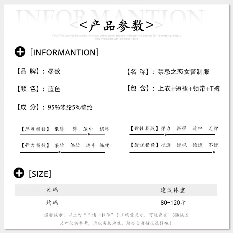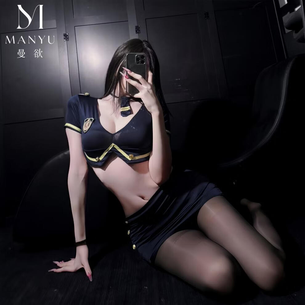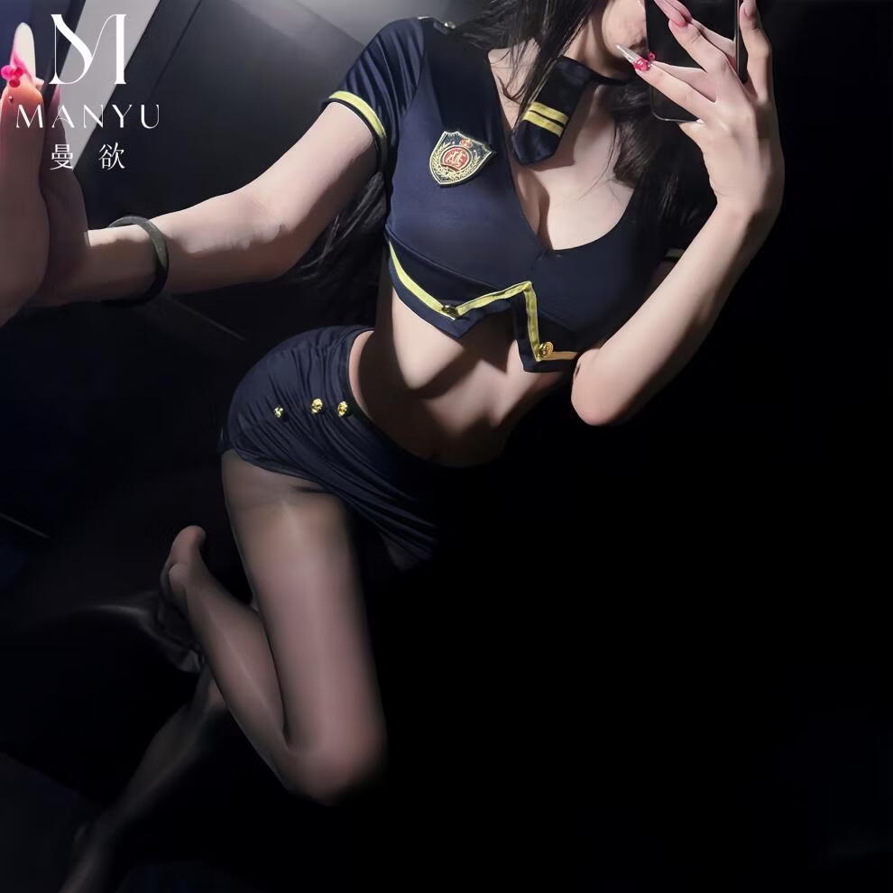性感纯欲女警短裙套装空姐制服火辣诱惑qqny睡衣 蓝色+黑油光袜 均码 【建议80-120斤】