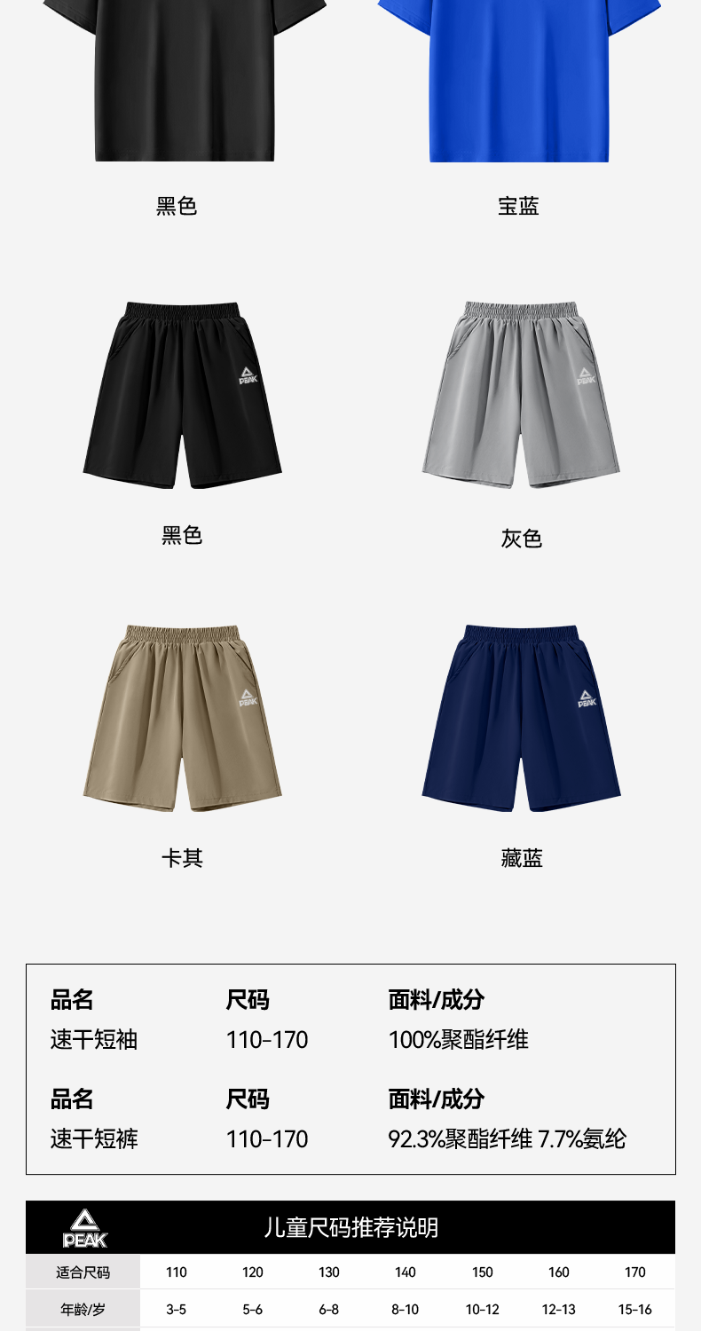匹克童装男童夏季套装2026年新款儿童吸湿速干夏装衣服女童短袖两件套 【套装】宝蓝/PK切割字-黑/PK反光银 150 【推荐体重68-82斤】