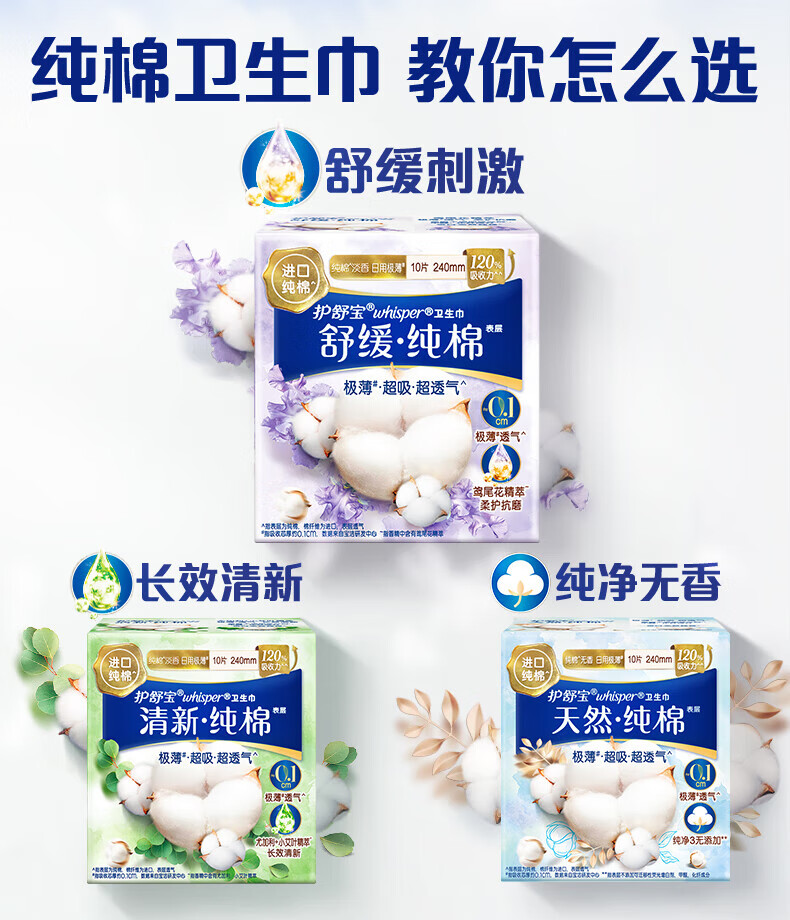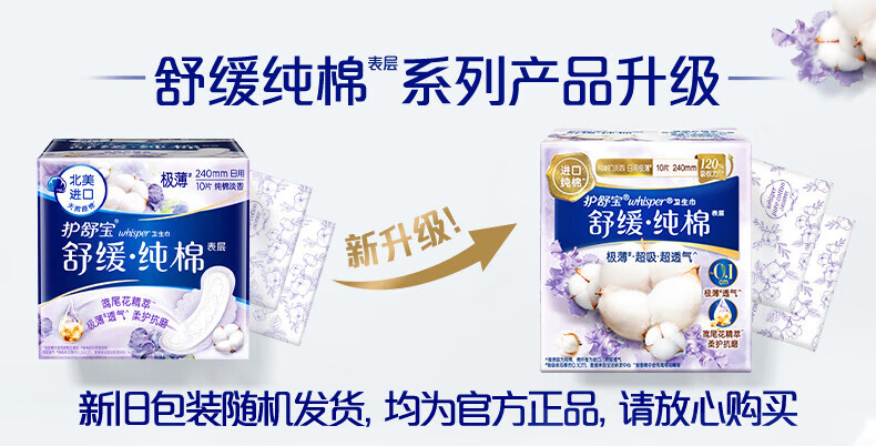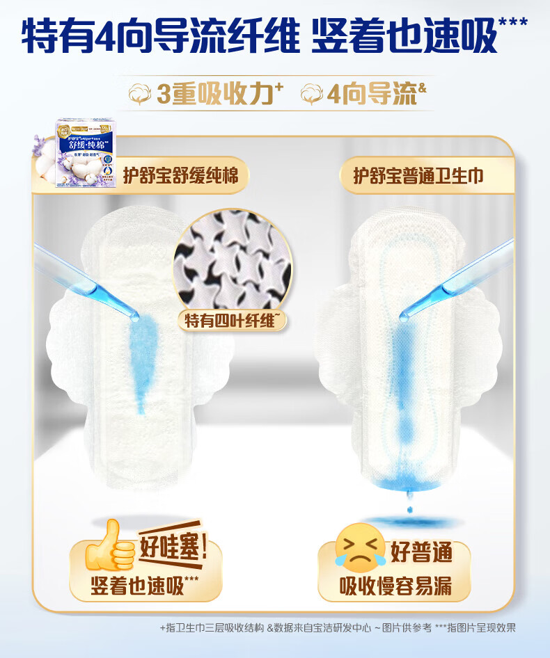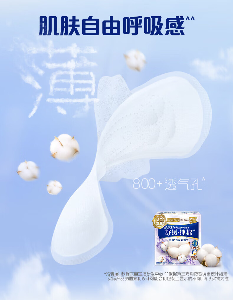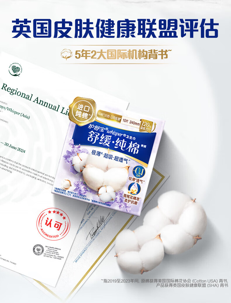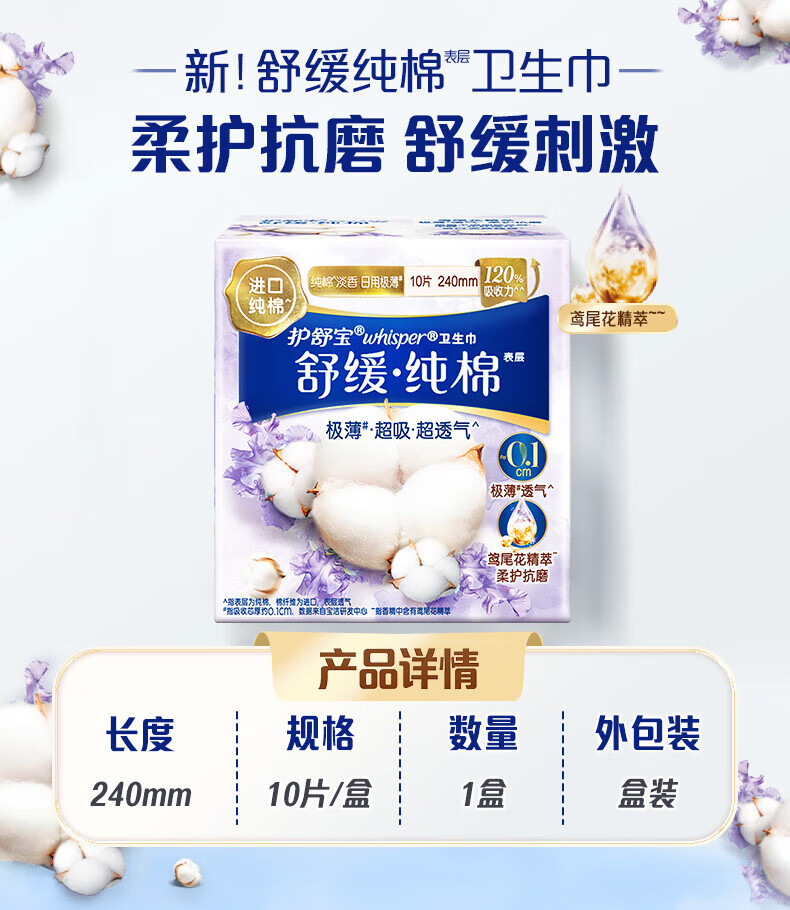 护舒宝【甄选直发】卫生巾 卫生巾舒缓型日用 姨妈巾 纯棉 240mm 10片