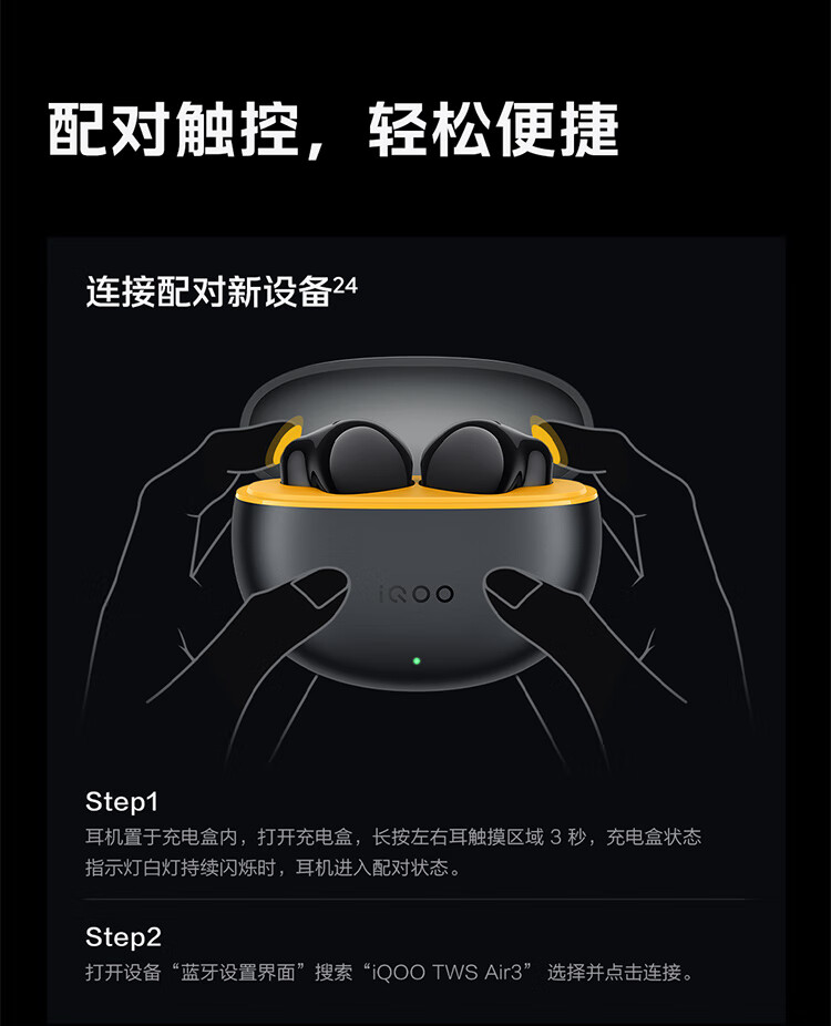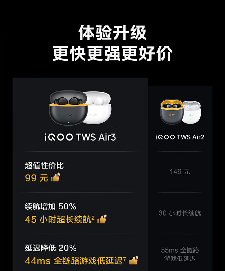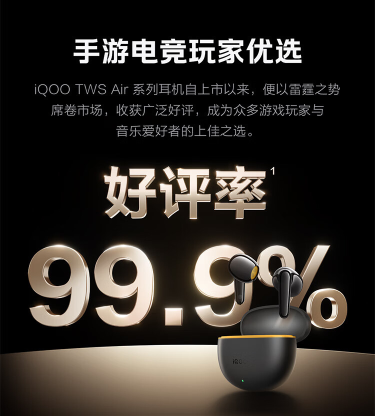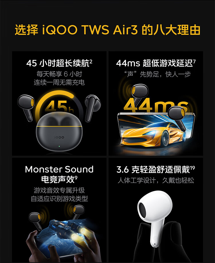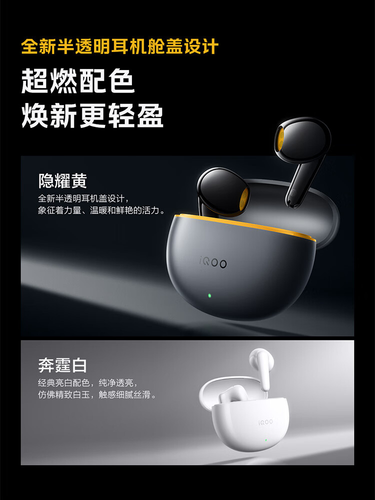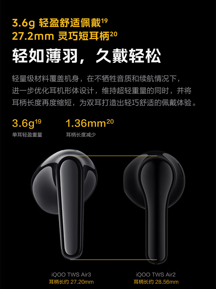 vivo iQOO TWS Air3原装真无线蓝牙耳机音乐游戏运动降噪电竞声效超轻佩戴耳麦适用于oppo苹果华为 iQOO TWS Air3隐耀黄