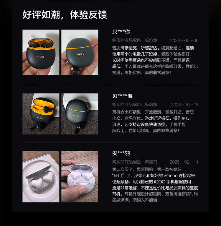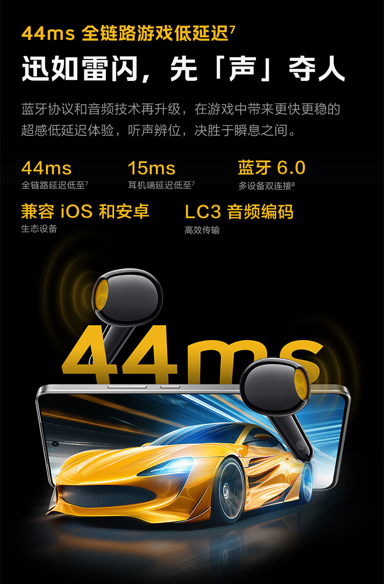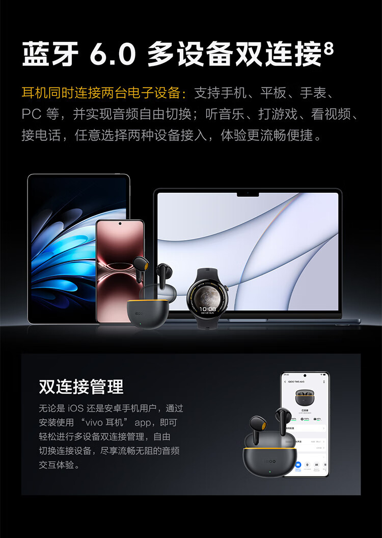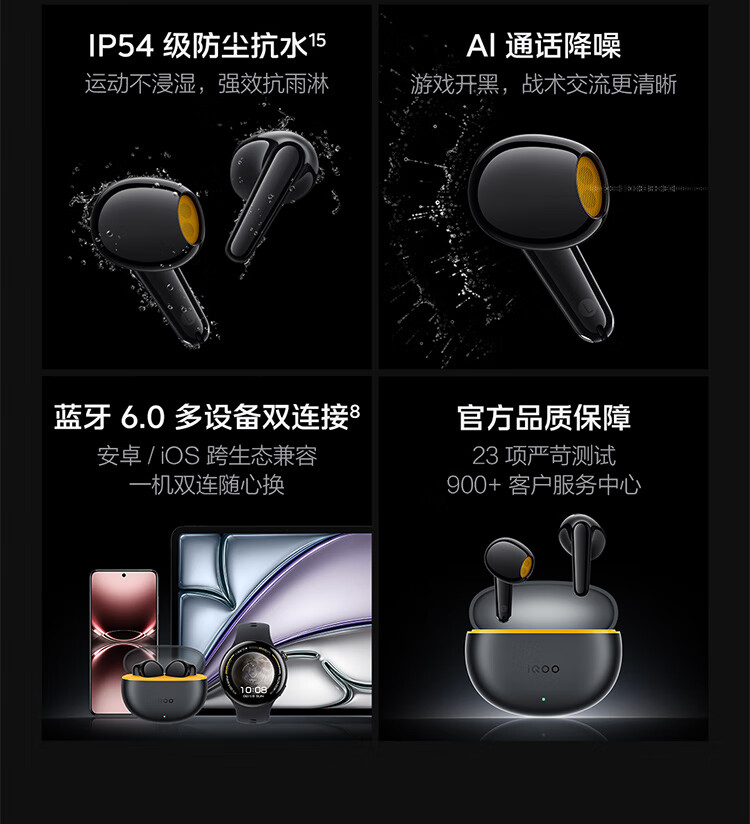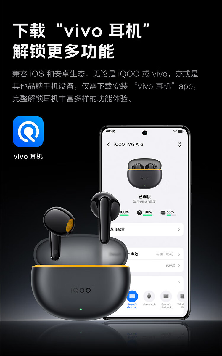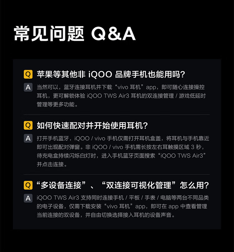vivo iQOO TWS Air3原装真无线蓝牙耳机音乐游戏运动降噪电竞声效超轻佩戴耳麦适用于oppo苹果华为 iQOO TWS Air3隐耀黄