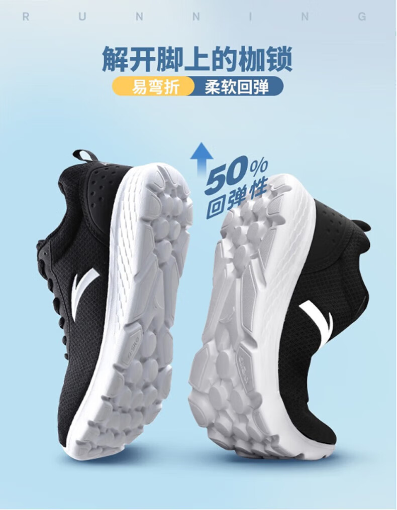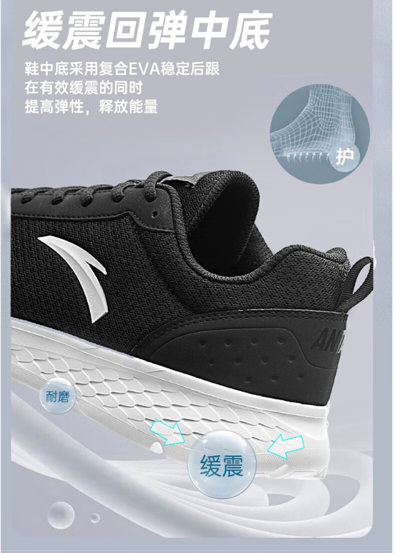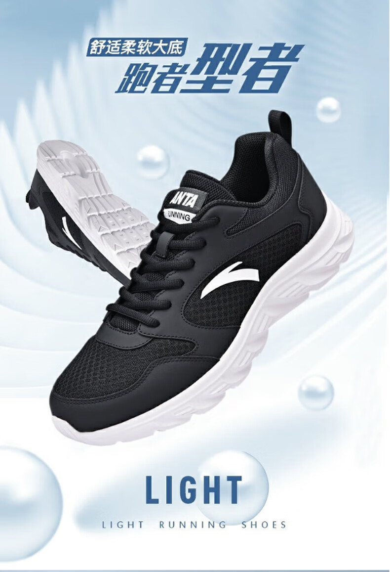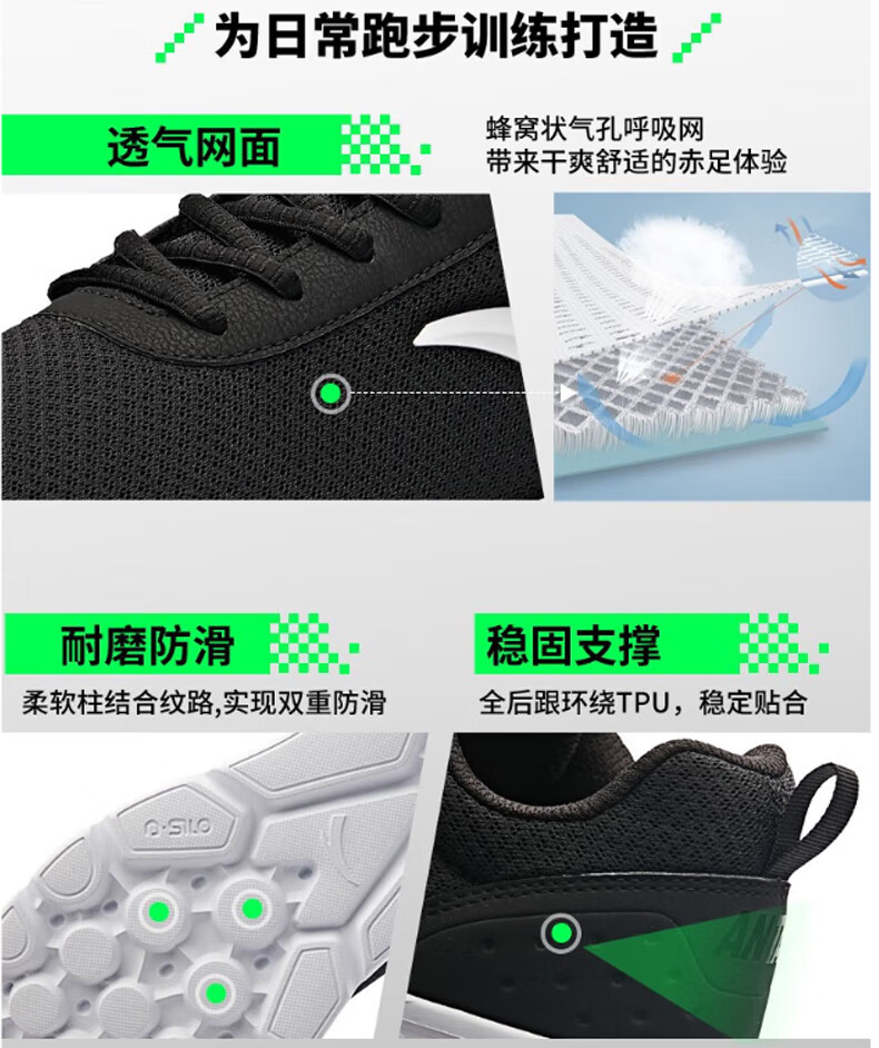 安踏男鞋运动鞋2026春夏季男士软底网面透气鞋子轻便户外干活跑步鞋 黑/金(夏季新品透气网面) 41 (255mm) 男