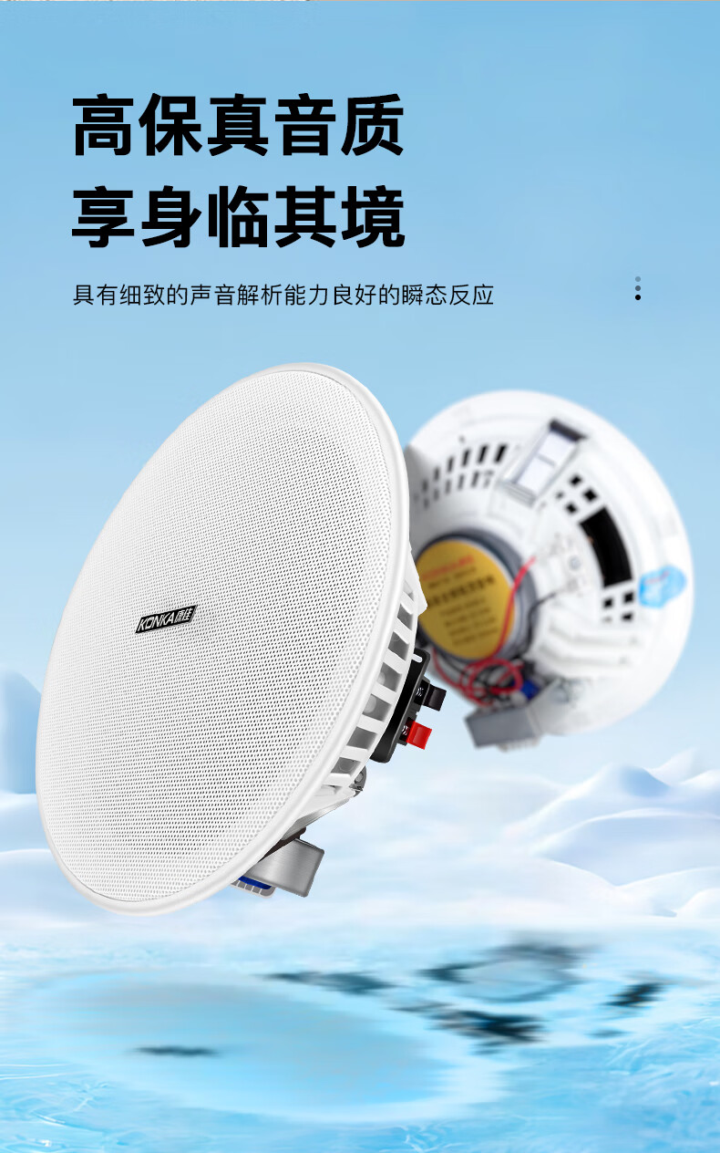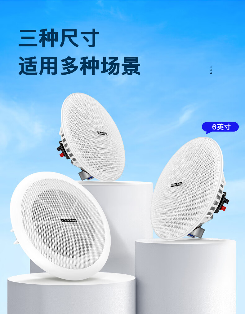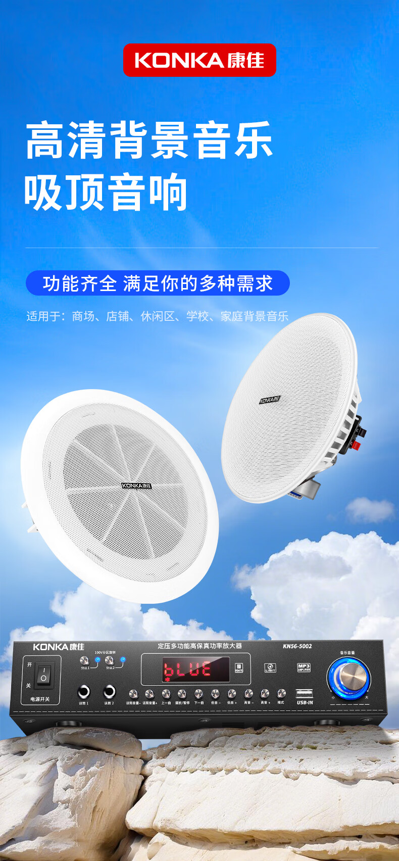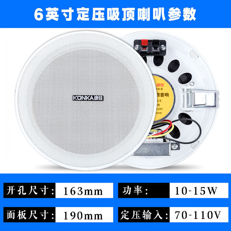 康佳(KONKA)6.5英寸吸顶音响喇叭套装公共广播系统吊顶门店会议背景音乐组合蓝牙音箱定压120W功放机 一拖六