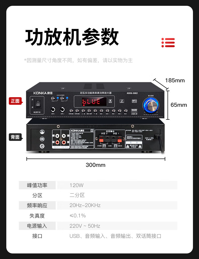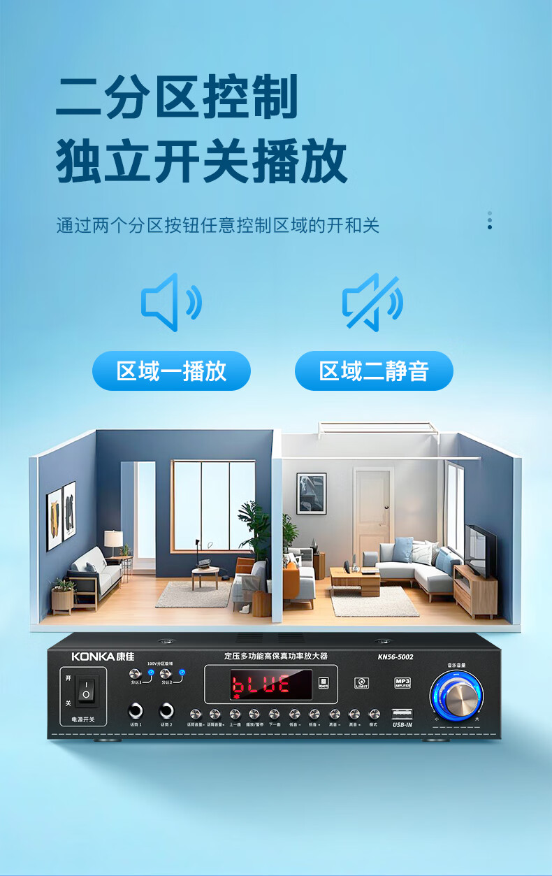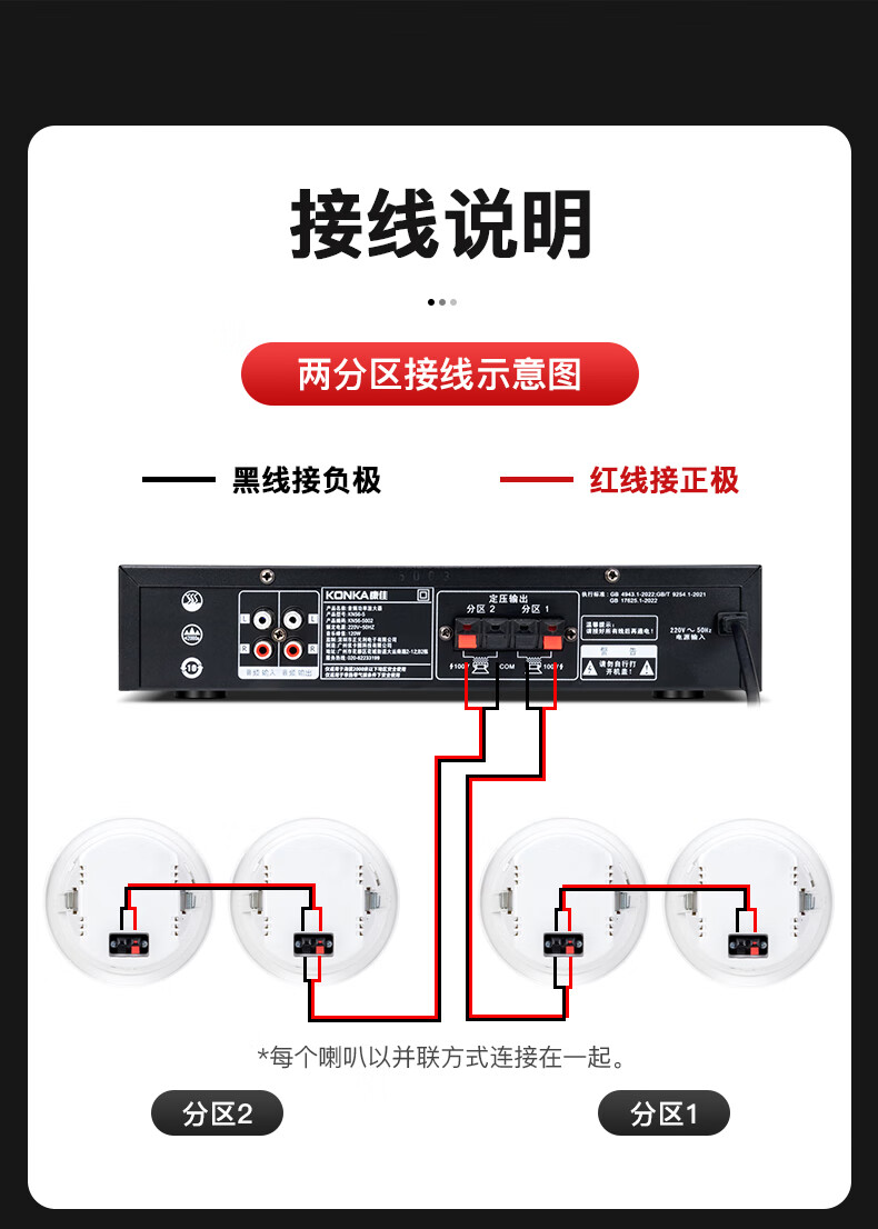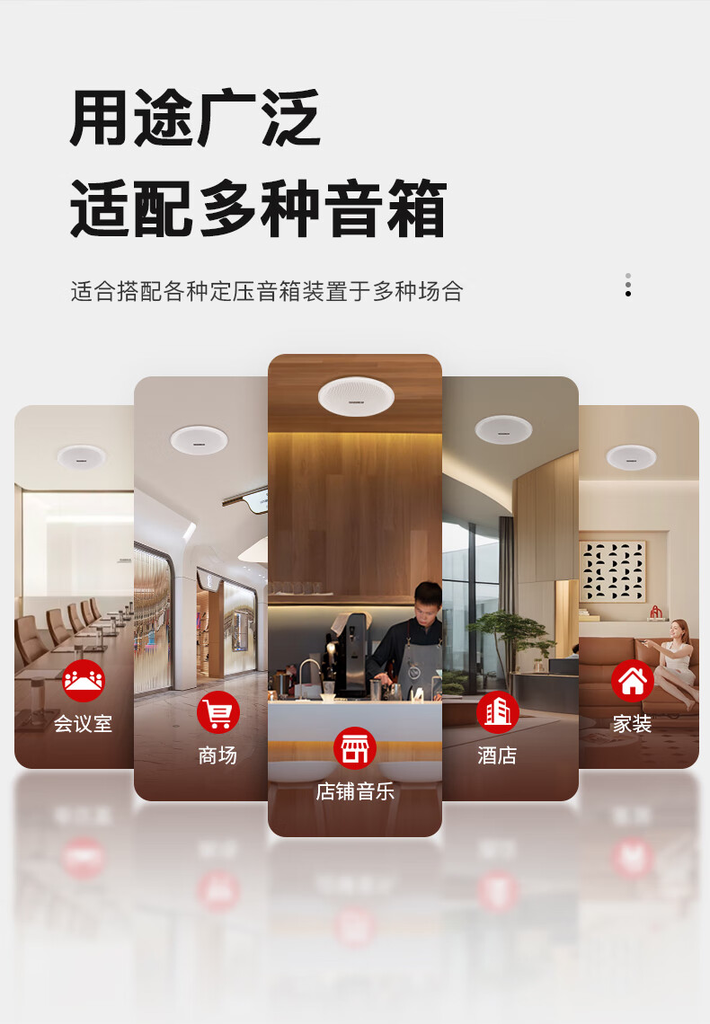 康佳(KONKA)6.5英寸吸顶音响喇叭套装公共广播系统吊顶门店会议背景音乐组合蓝牙音箱定压120W功放机 一拖六