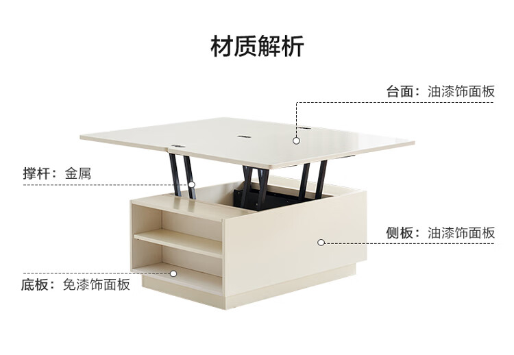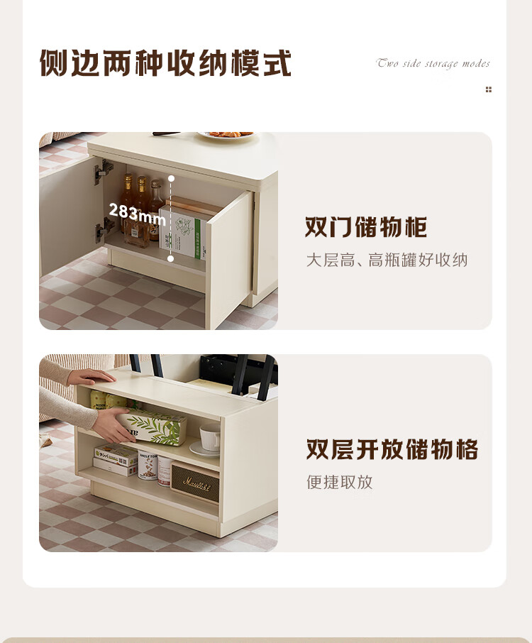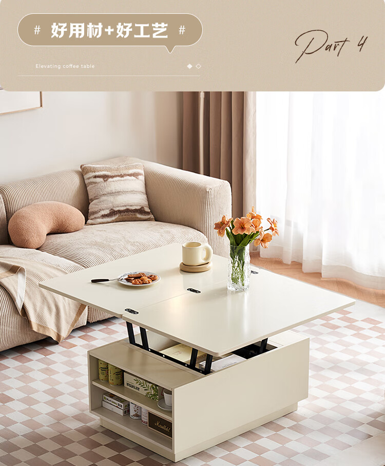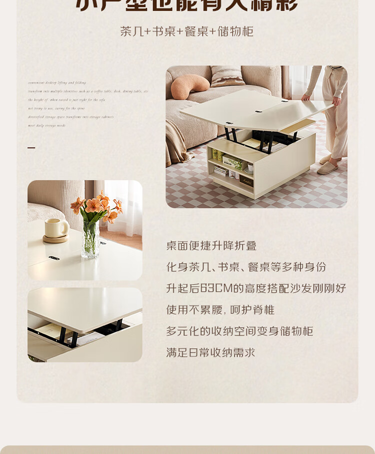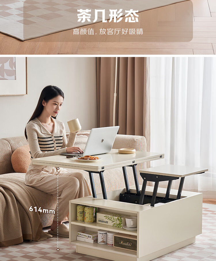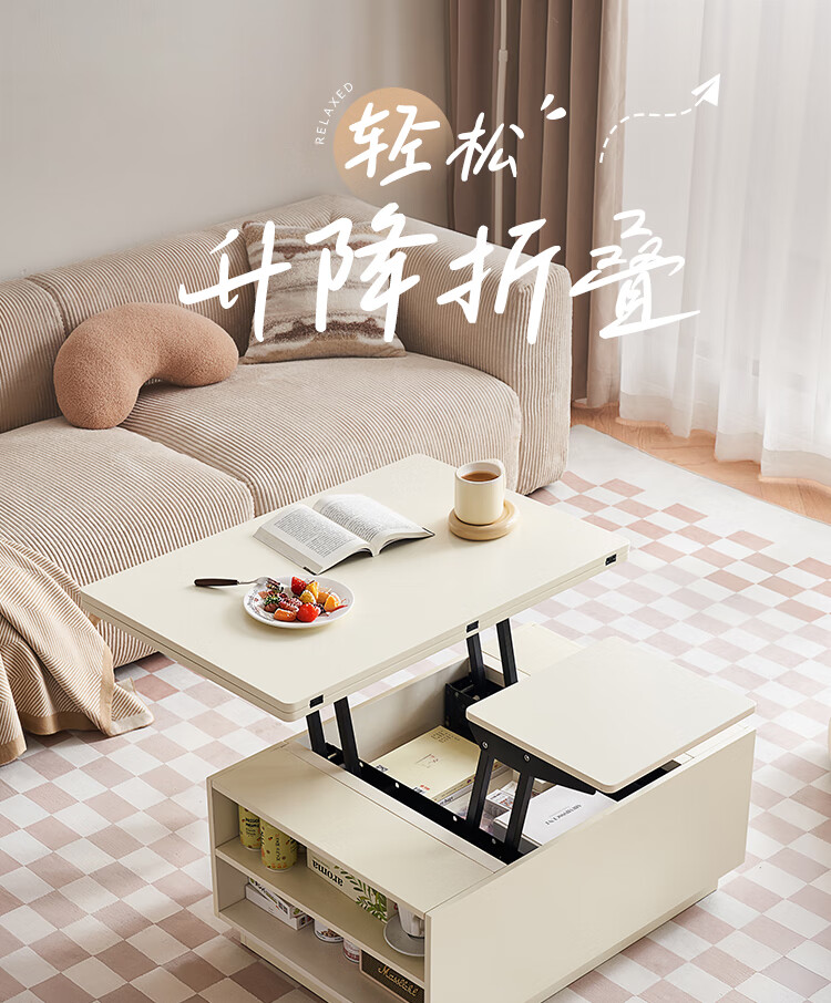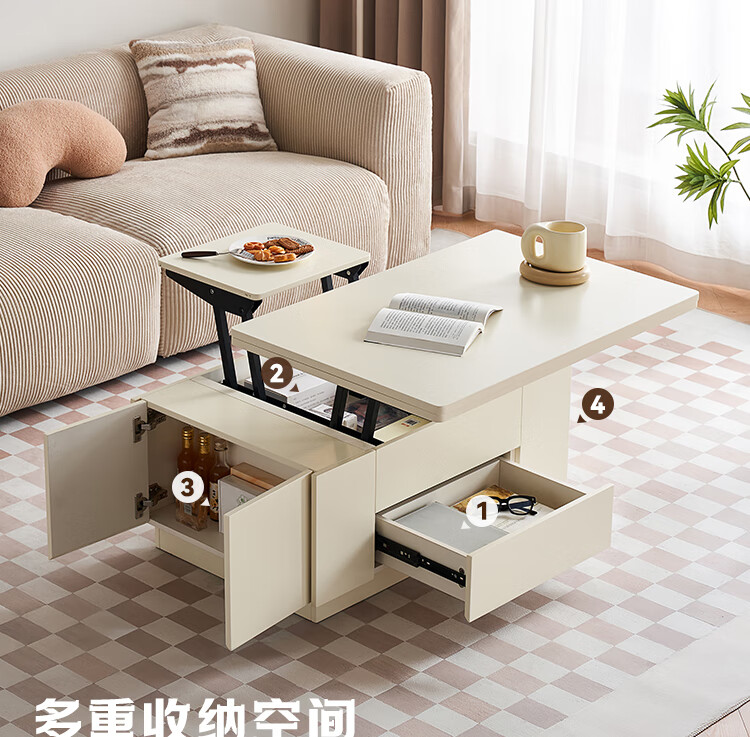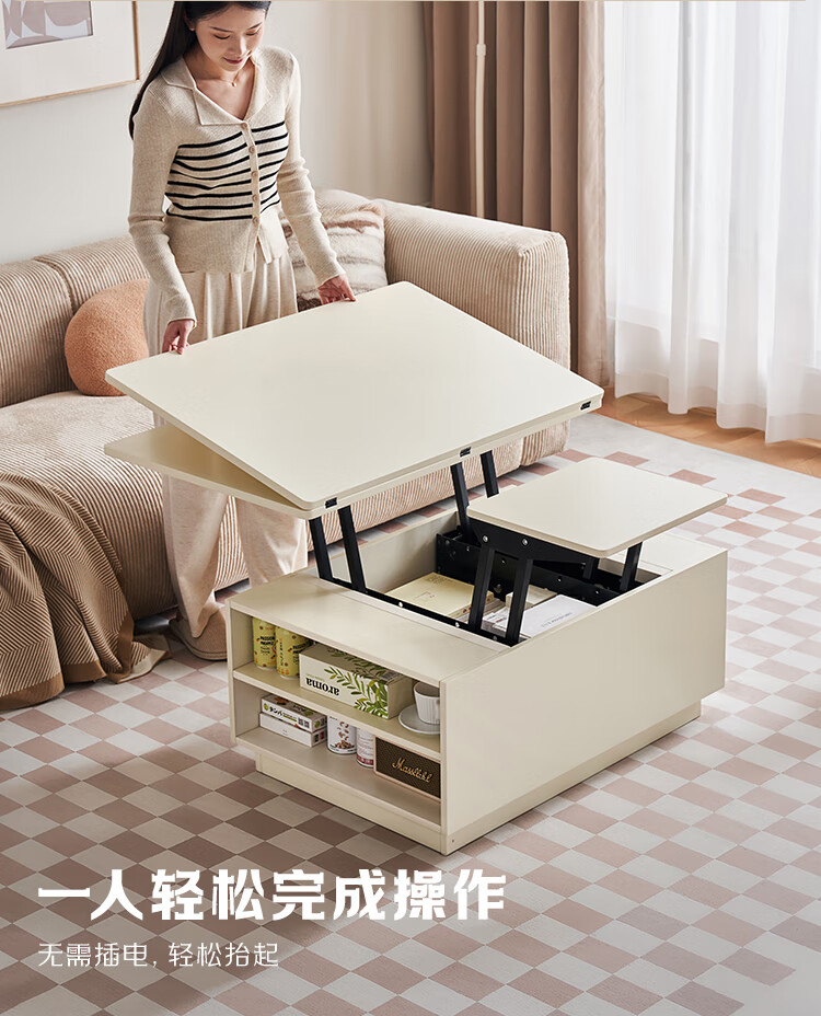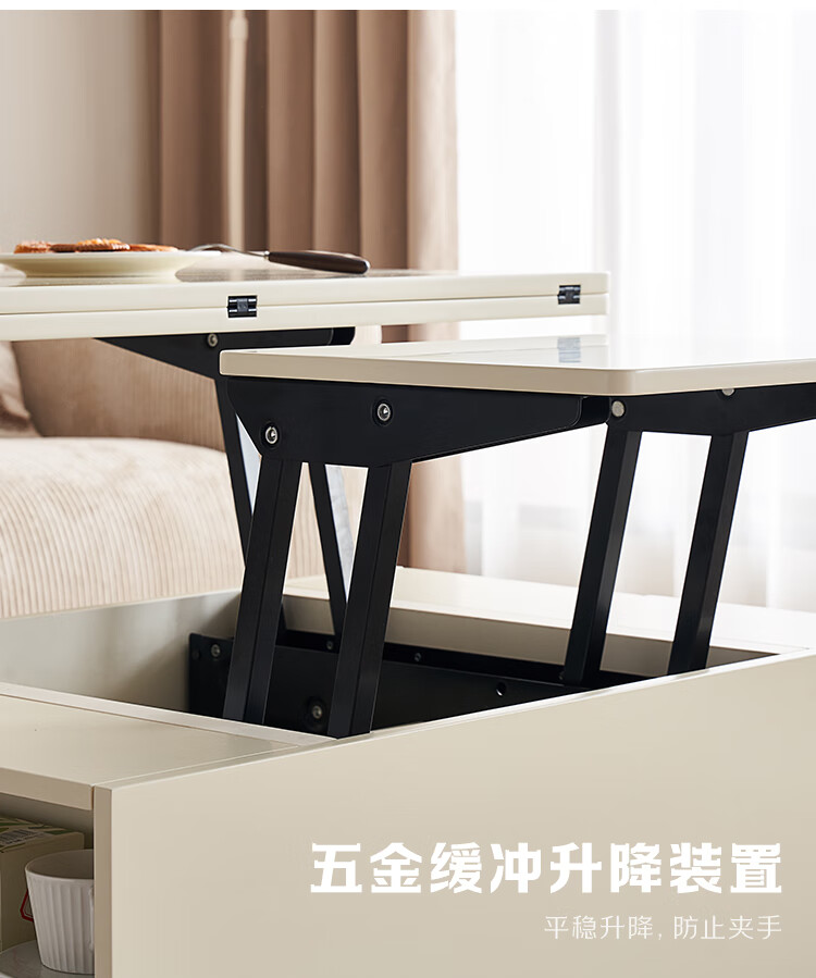 全友家居 新款多功能升降茶几客厅折叠桌小户型奶油风储物收纳柜子