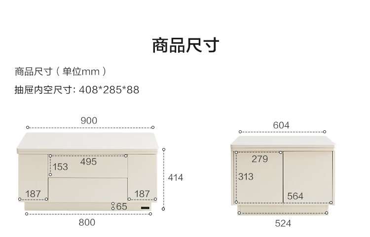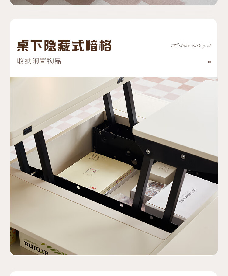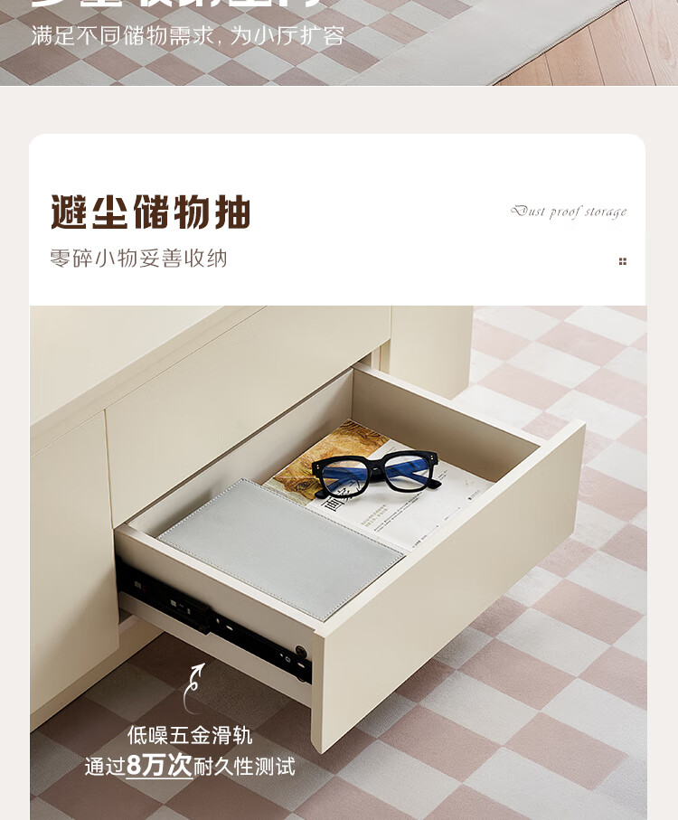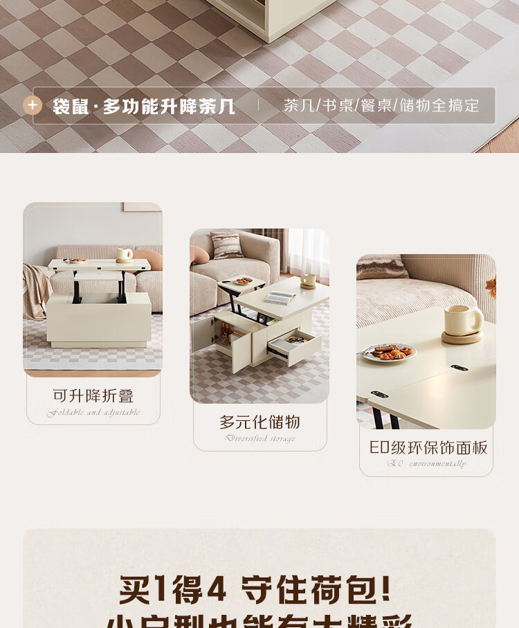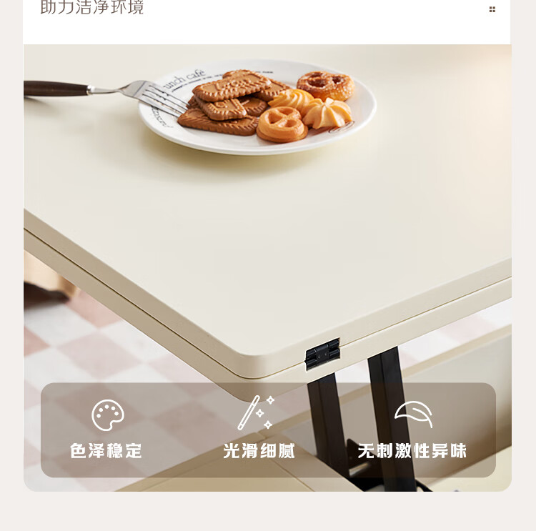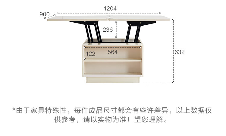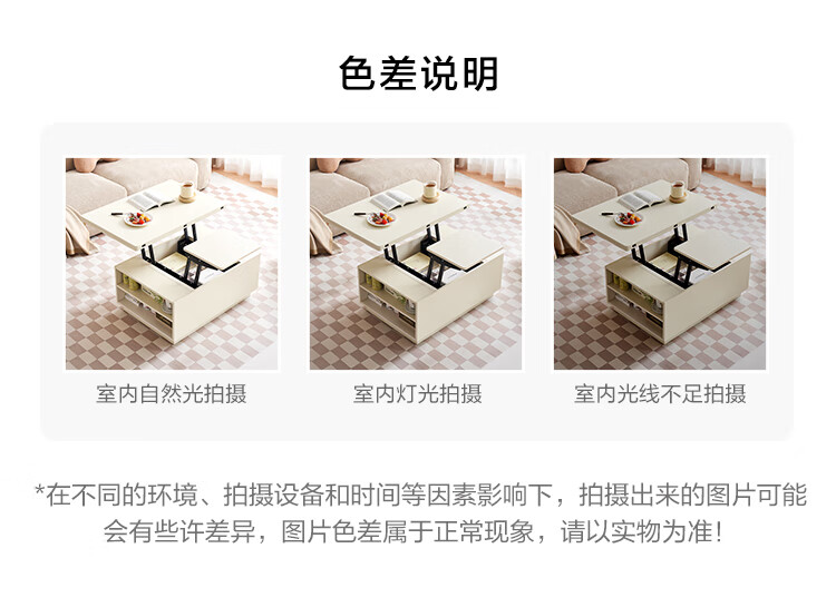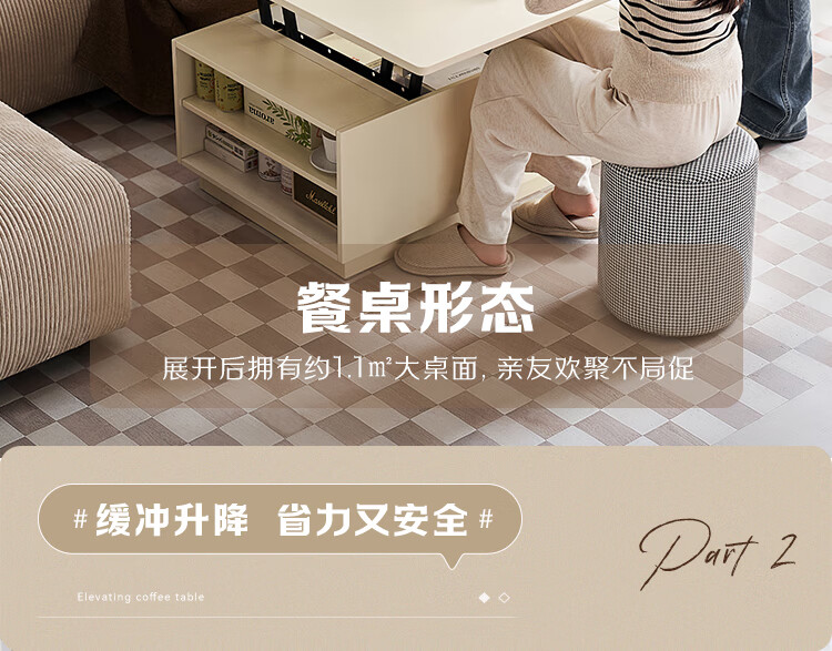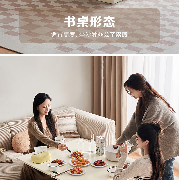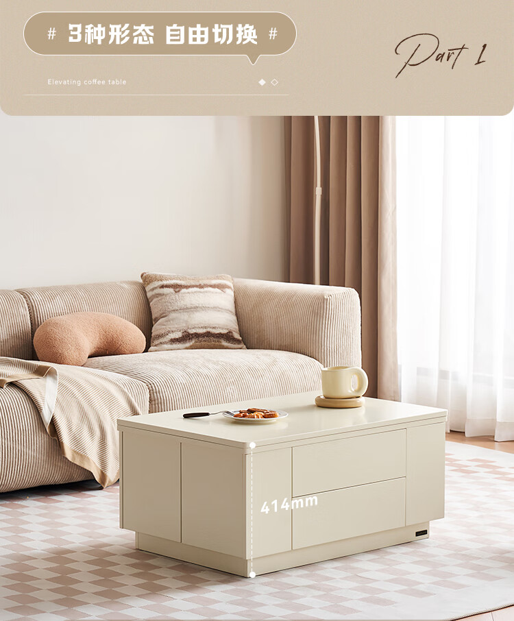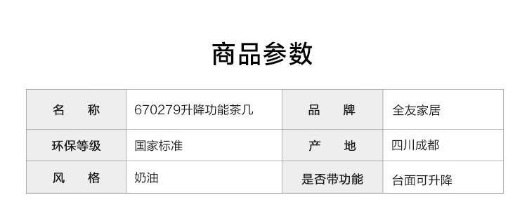 全友家居 新款多功能升降茶几客厅折叠桌小户型奶油风储物收纳柜子