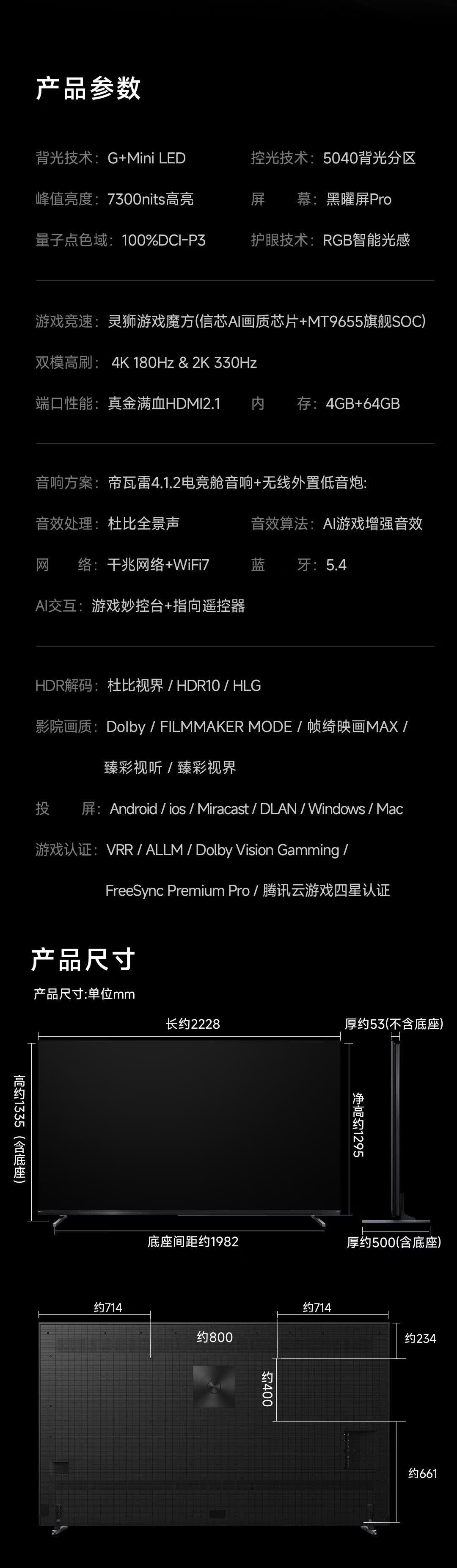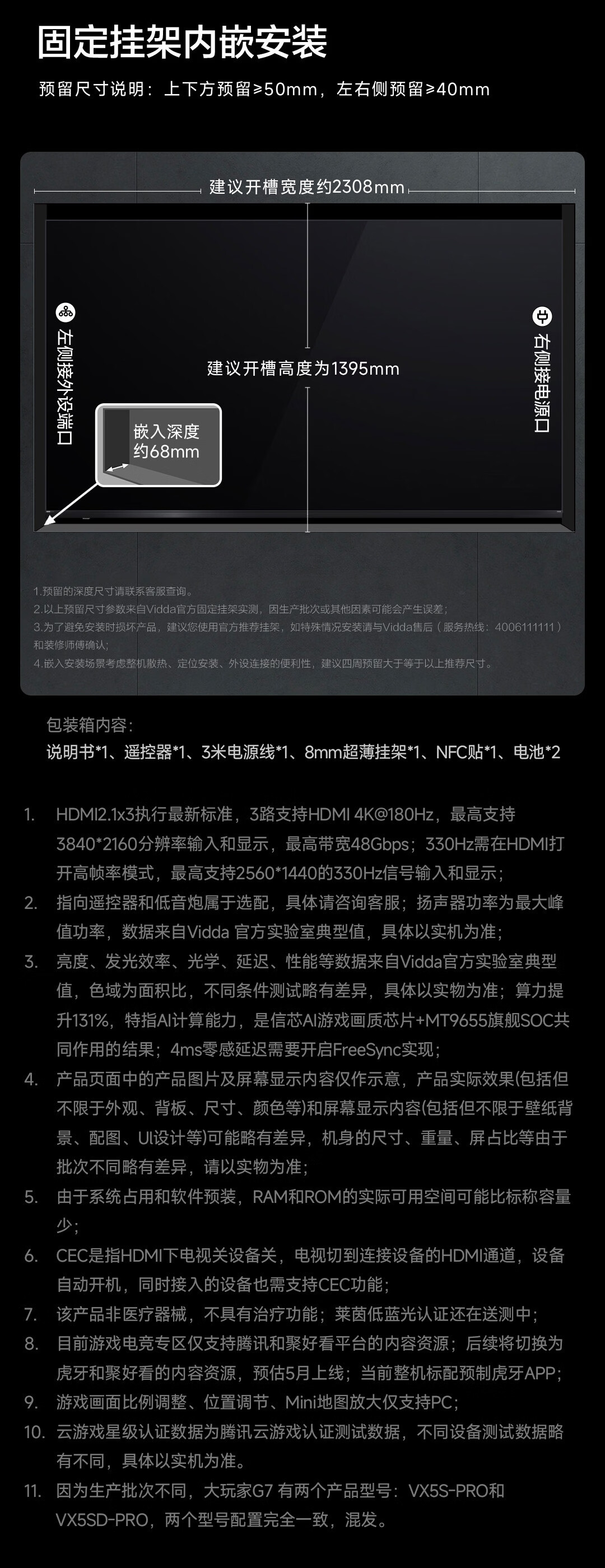 Vidda大玩家G7 海信电视100英寸G+Mini LED黑曜屏Pro 信芯画质芯片330Hz高刷 游戏电视100VX5S-PRO