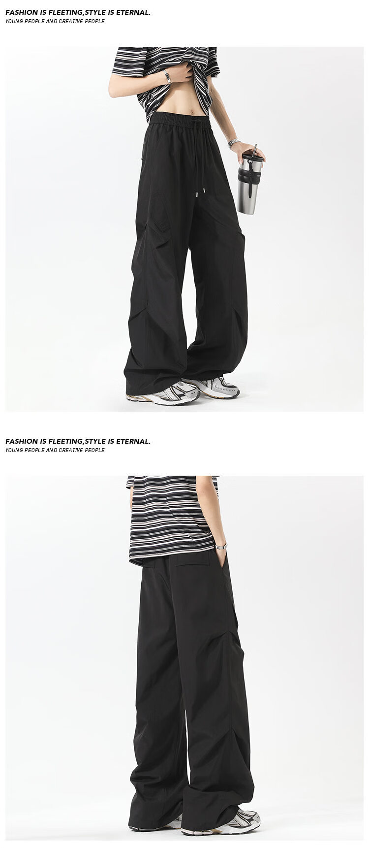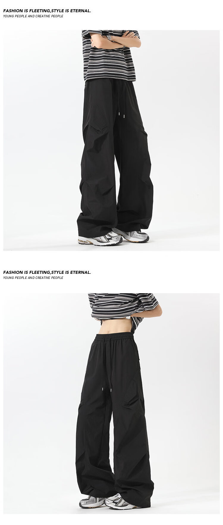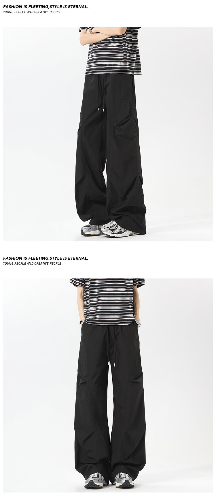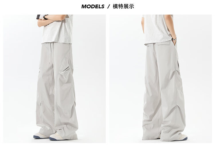 NEW OR MODE美式褶皱工装冲锋裤子男夏季户外速干伞兵长裤高街百搭直筒休闲裤 黑色【高品质】 M 【建议90-110斤】