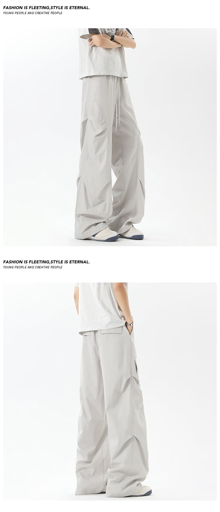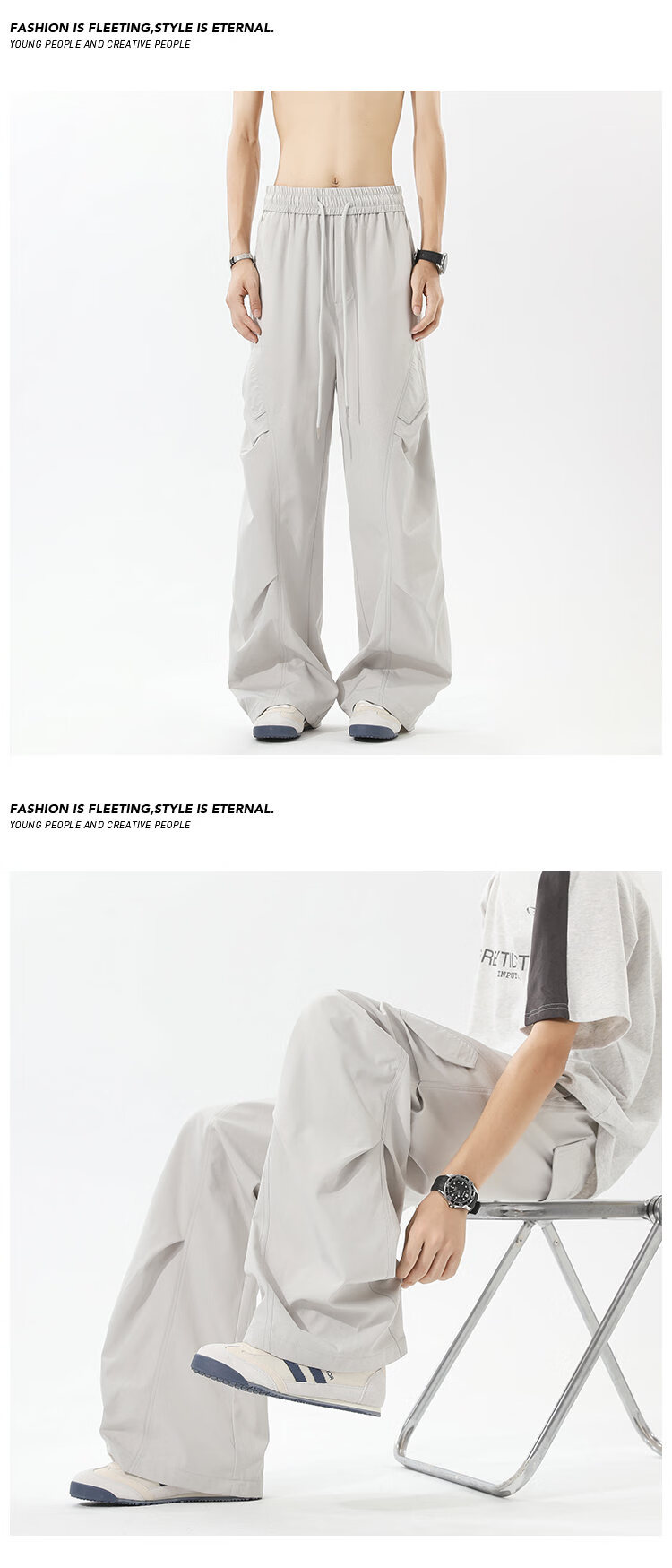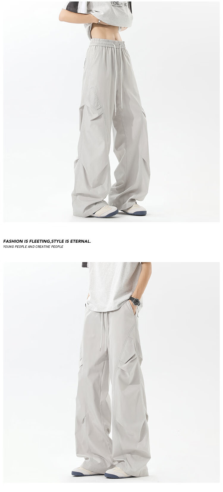NEW OR MODE美式褶皱工装冲锋裤子男夏季户外速干伞兵长裤高街百搭直筒休闲裤 黑色【高品质】 M 【建议90-110斤】