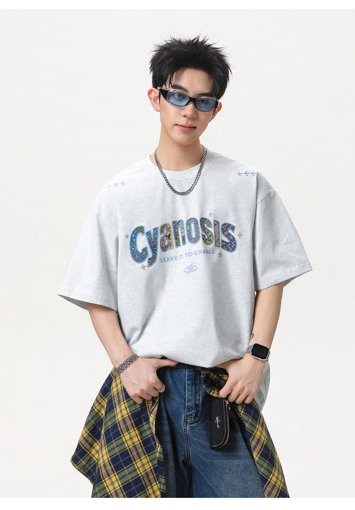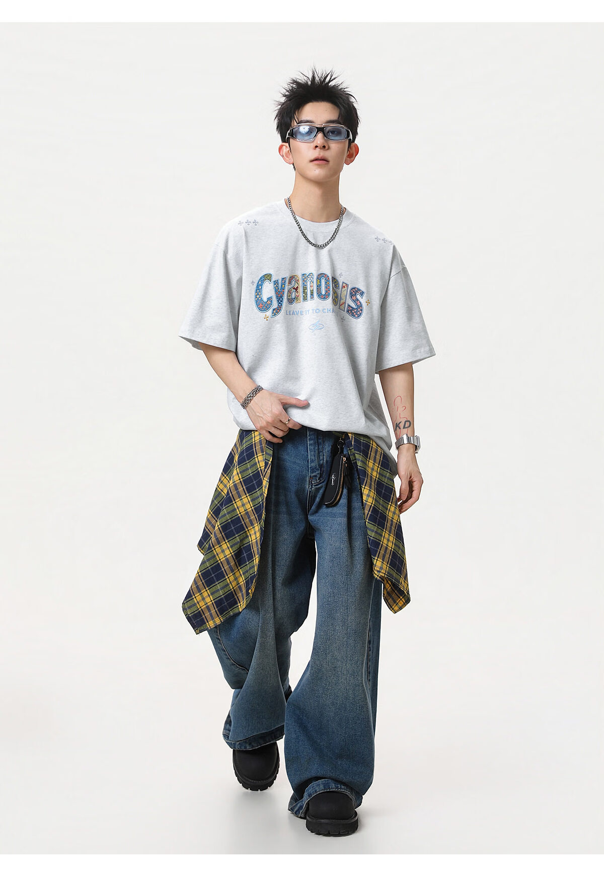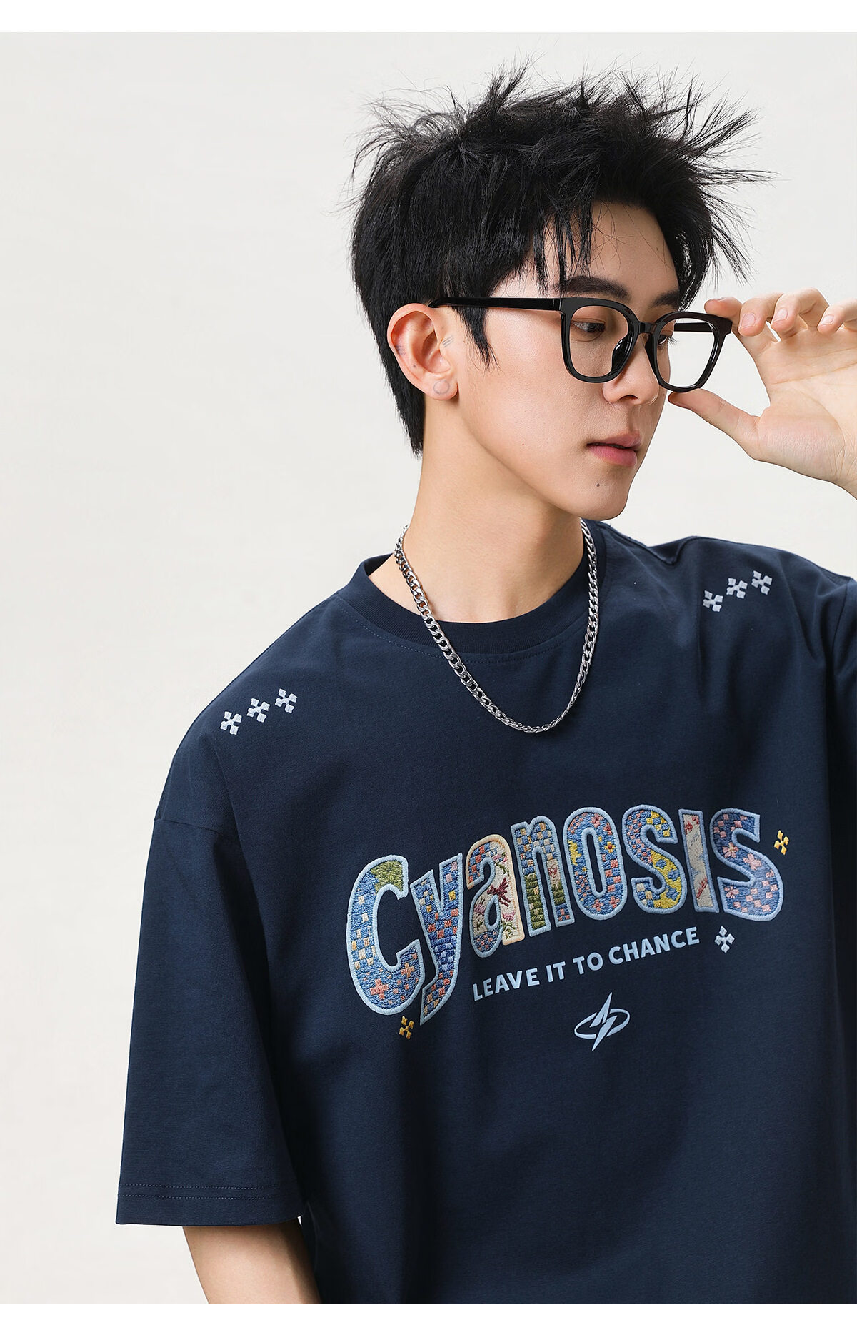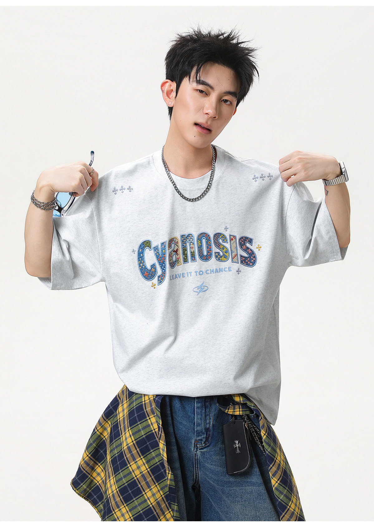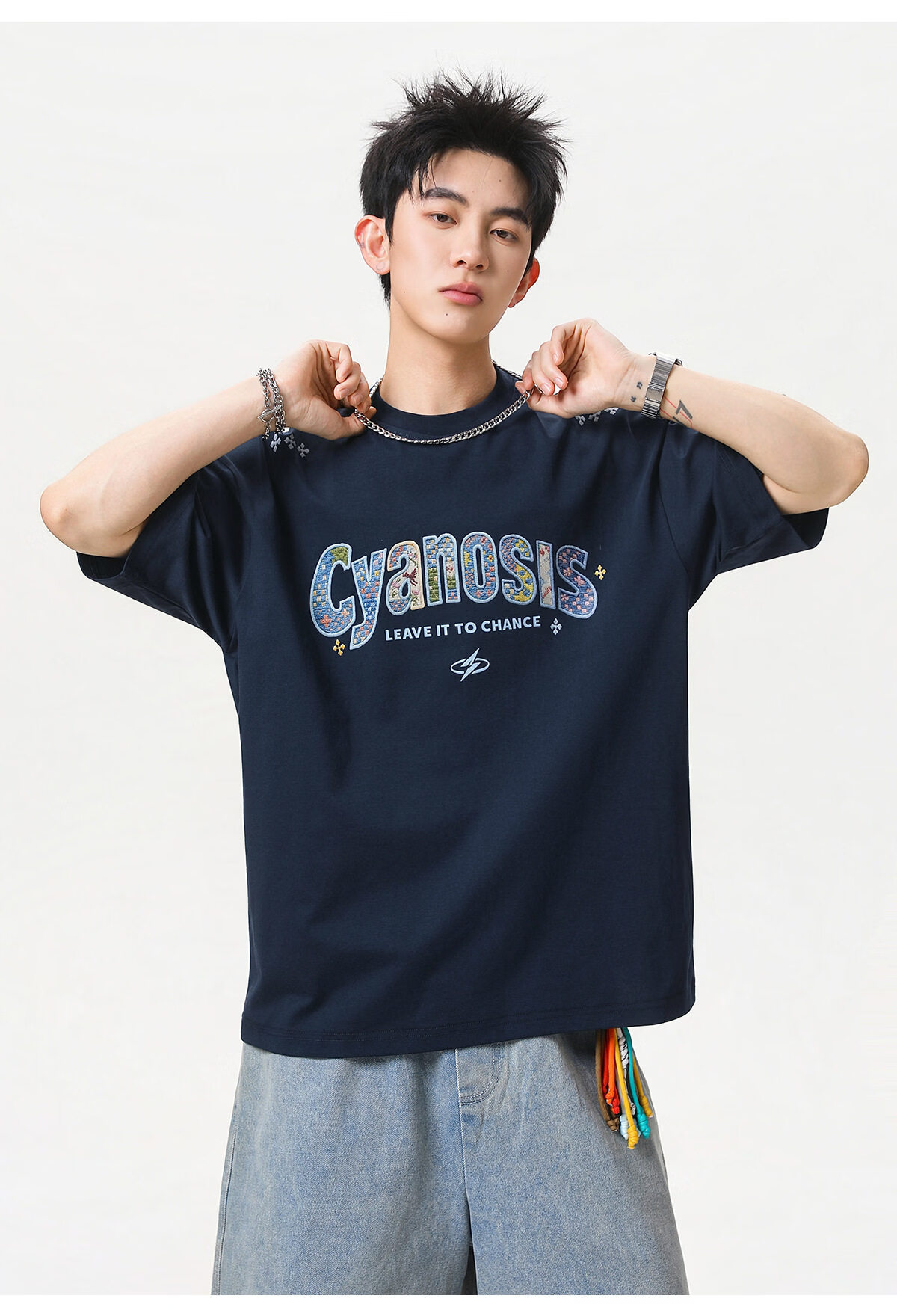 NEW OR MODE美式高街字母圆领短袖t恤男夏季潮牌纯棉重磅宽松情侣五分袖T恤衫 藏青色【高品质】 M 【建议90-110斤】