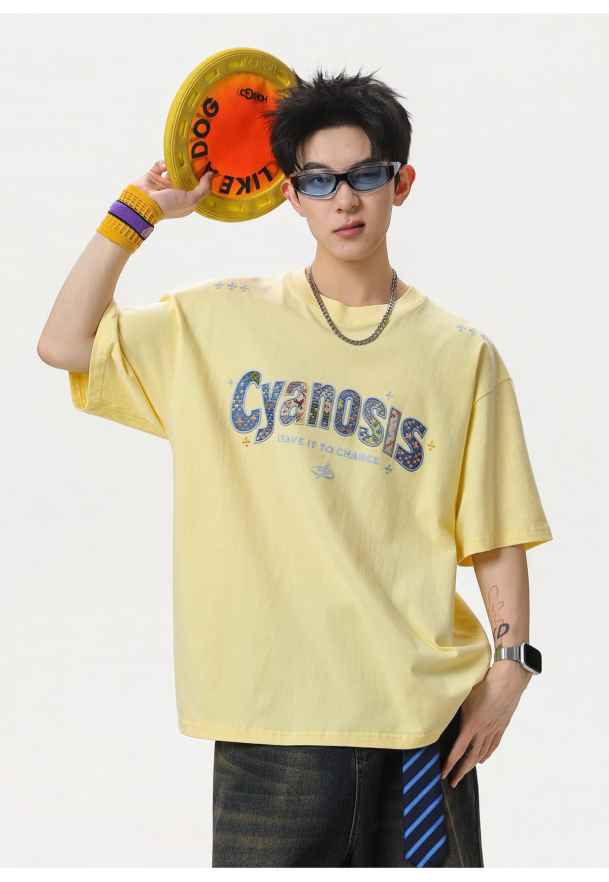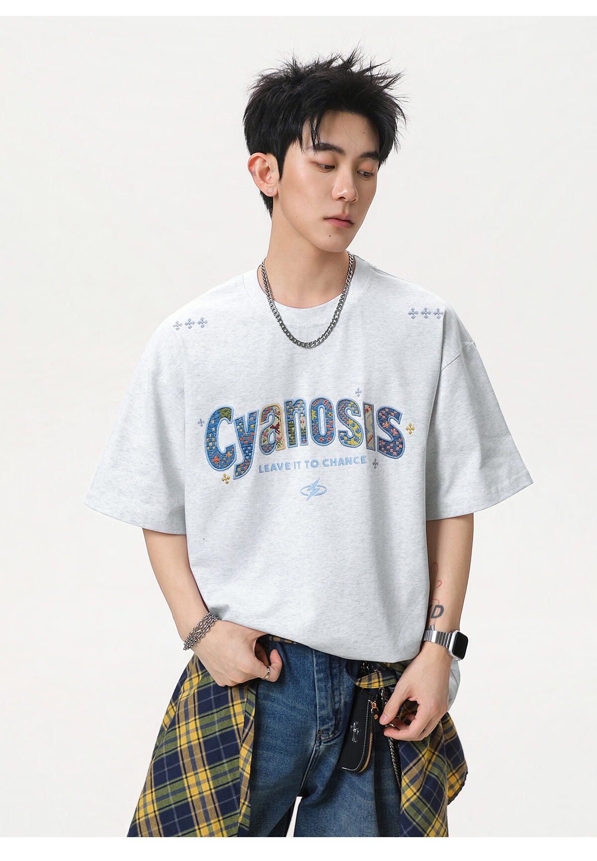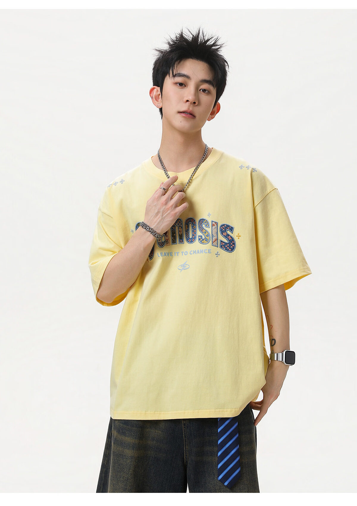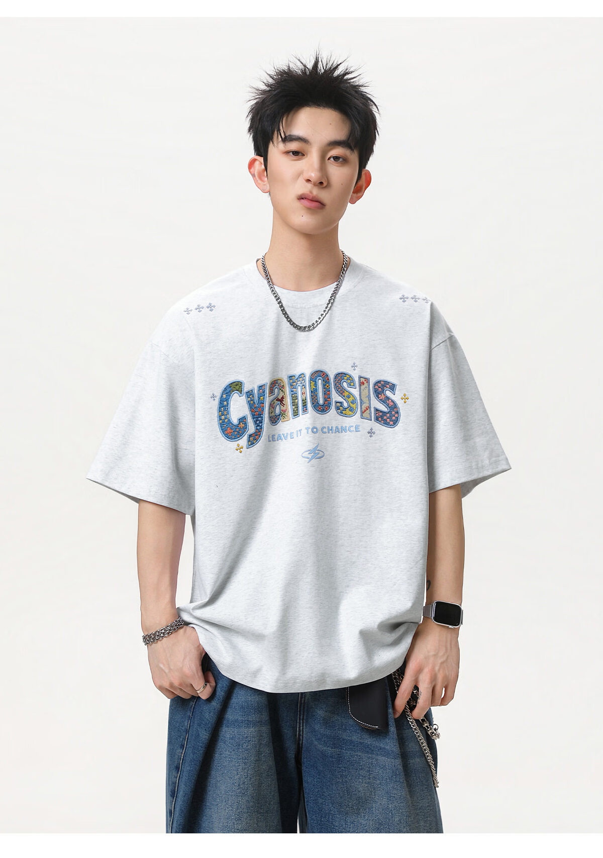 NEW OR MODE美式高街字母圆领短袖t恤男夏季潮牌纯棉重磅宽松情侣五分袖T恤衫 藏青色【高品质】 M 【建议90-110斤】