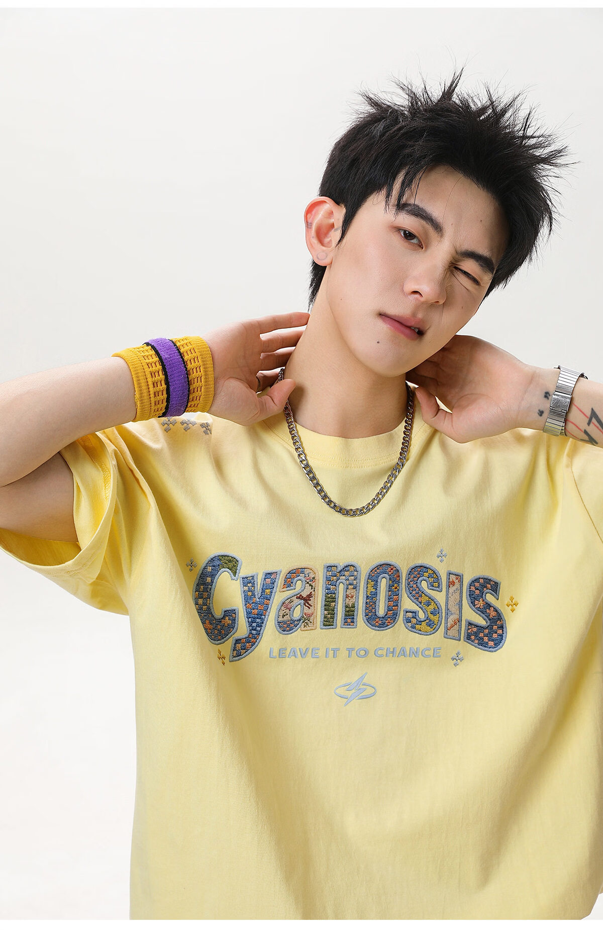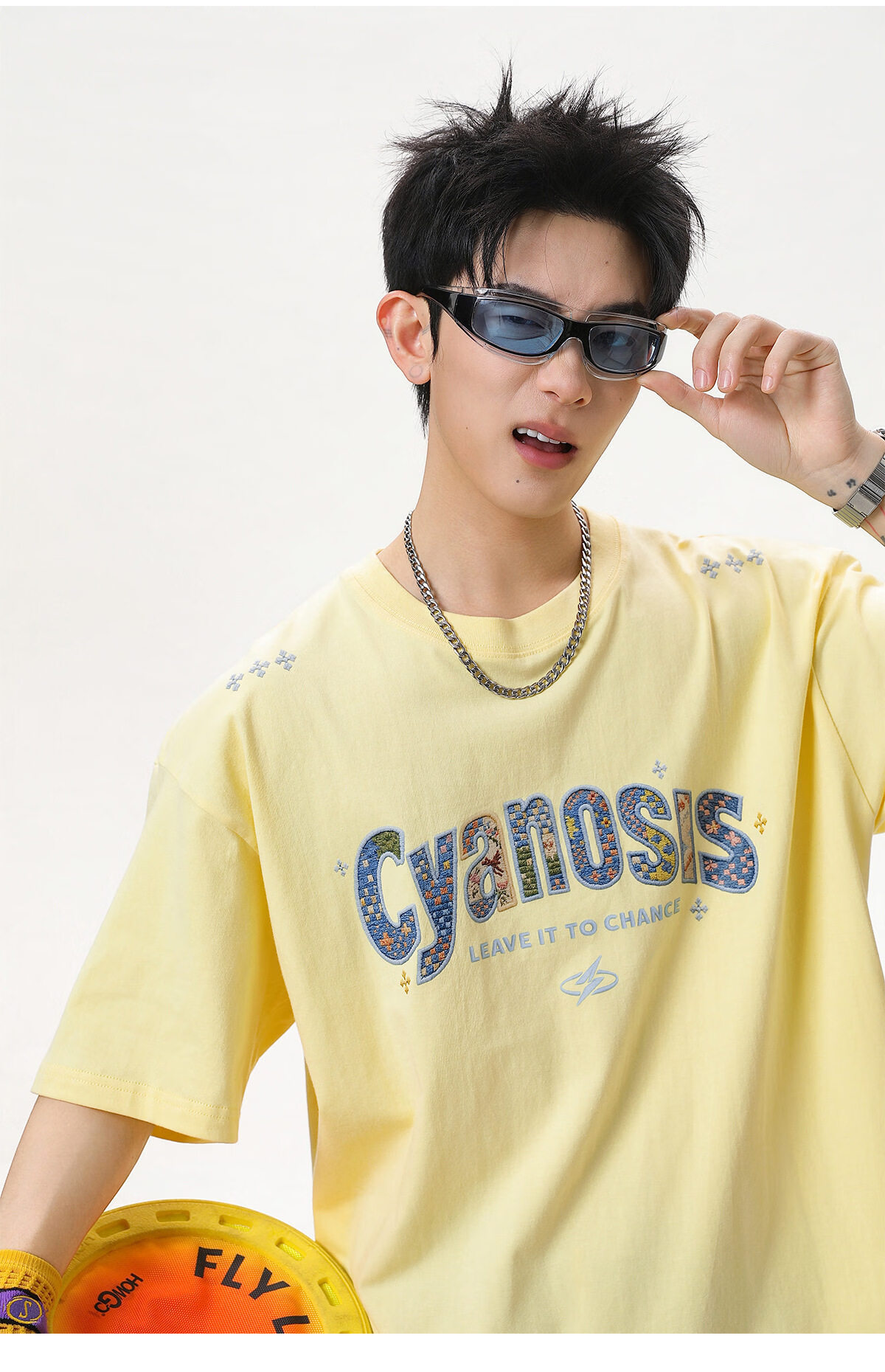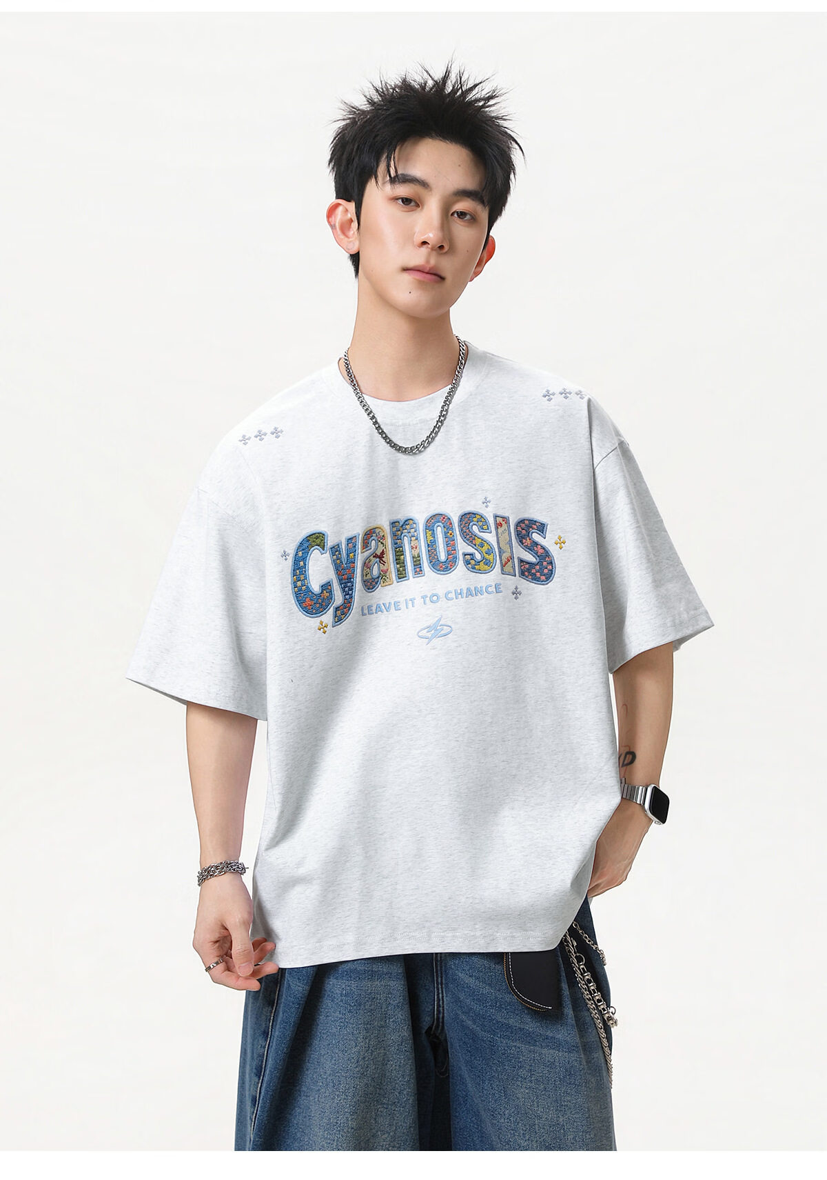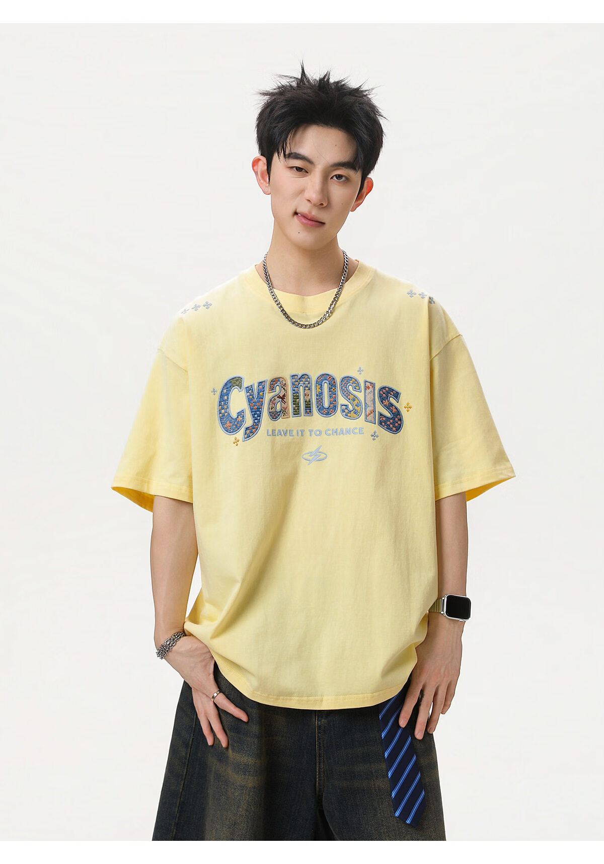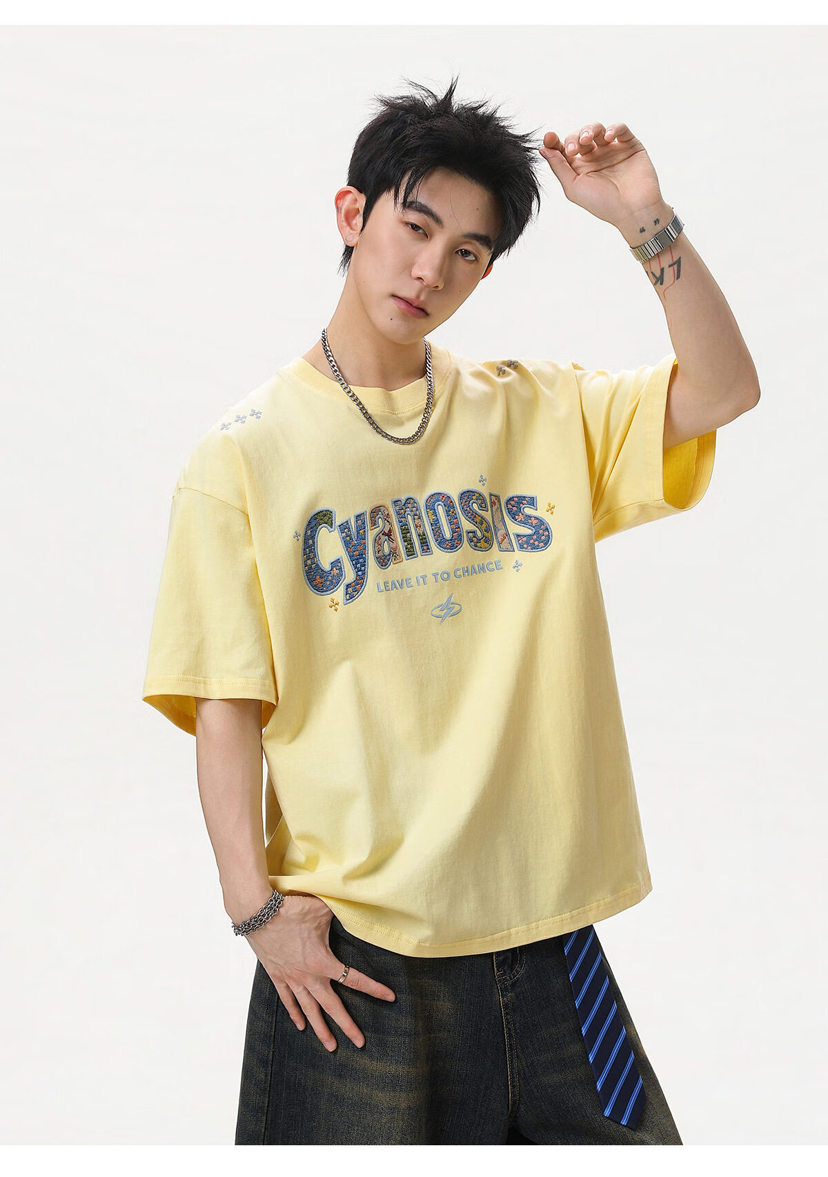 NEW OR MODE美式高街字母圆领短袖t恤男夏季潮牌纯棉重磅宽松情侣五分袖T恤衫 藏青色【高品质】 M 【建议90-110斤】
