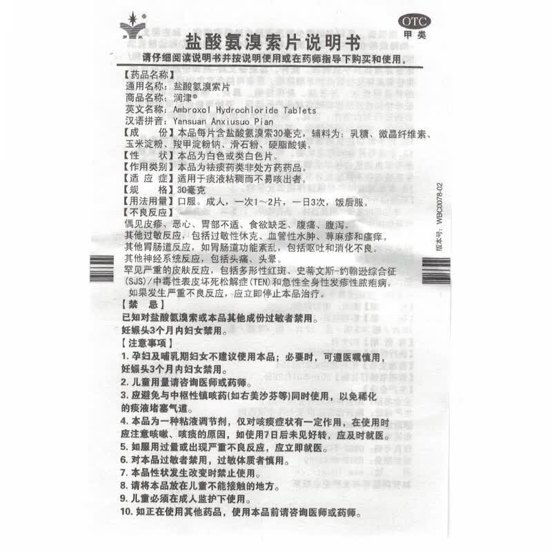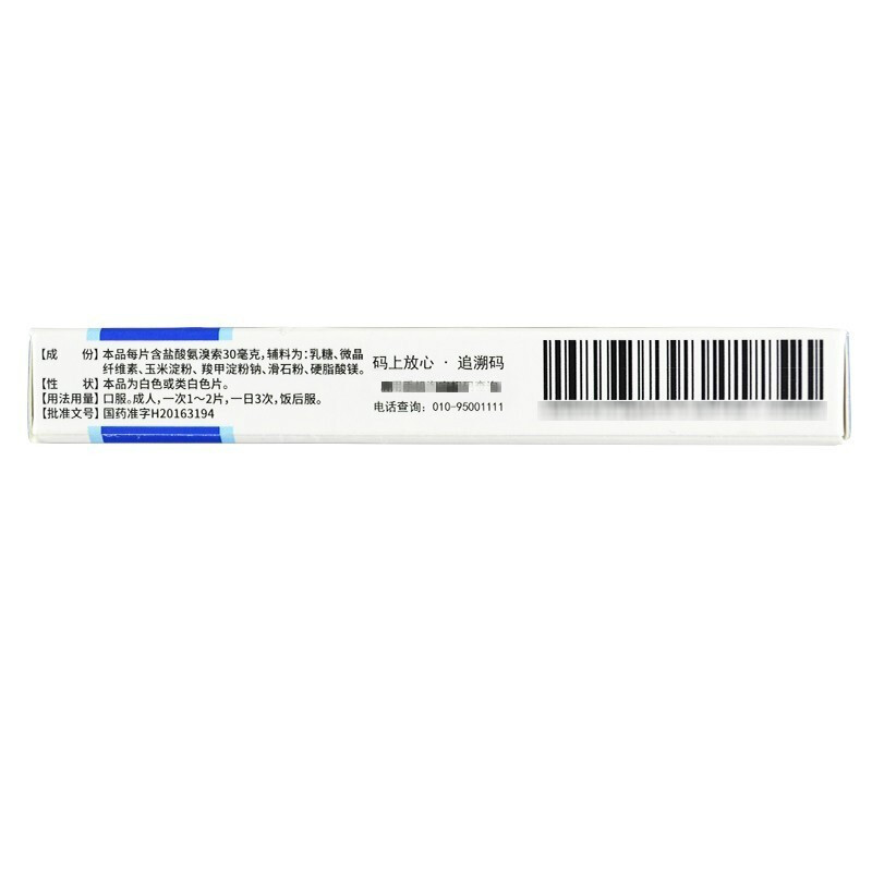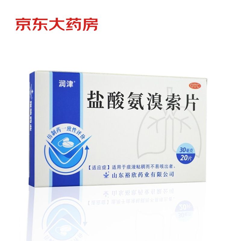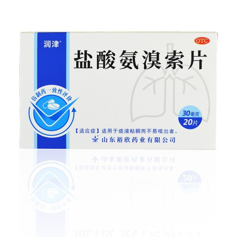润津 盐酸氨溴索片 30mg*20片 咳嗽药 化痰药 用于急、慢性支气管炎 支气管哮喘 支气管扩张 肺结核等引起的白色黏痰 不易咳出 新冠指南用药