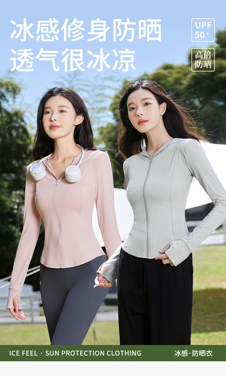 浪莎防晒衣女修身防紫外线夏季新款高倍冰丝薄款防晒服凉感外套 樱花粉【连帽款 隐形口袋】 M 【101-120斤】