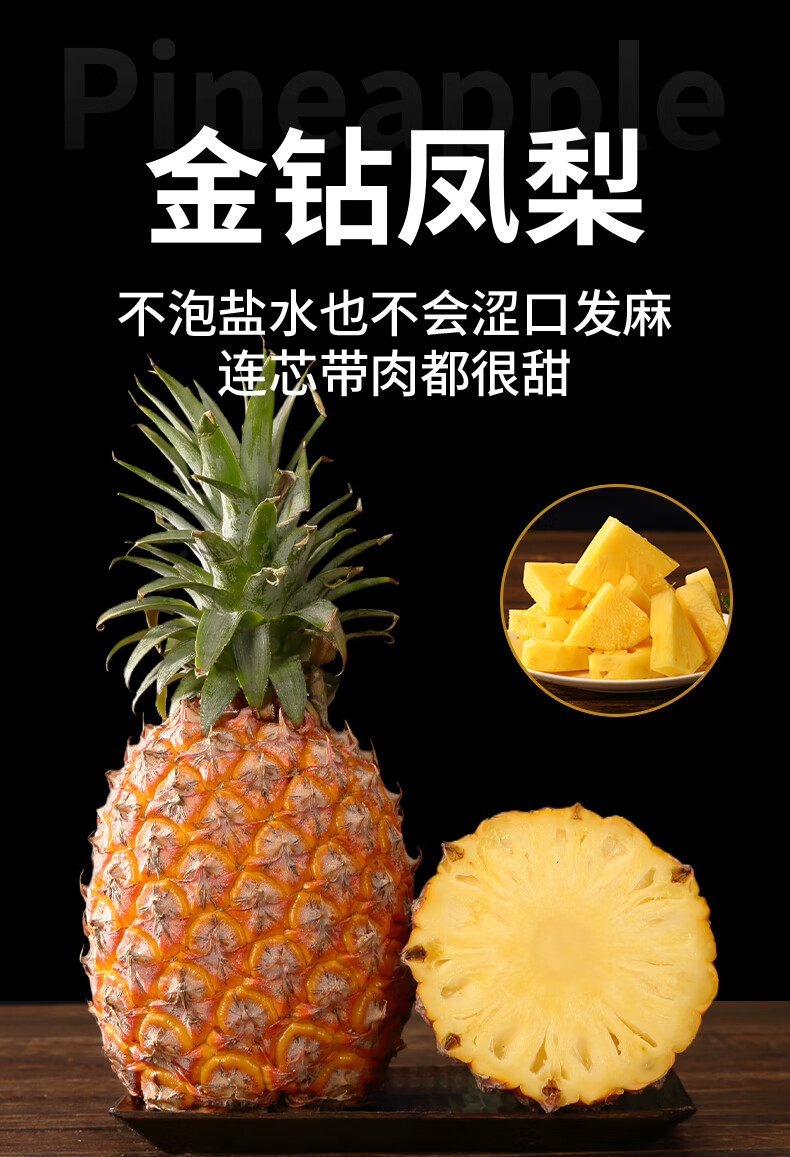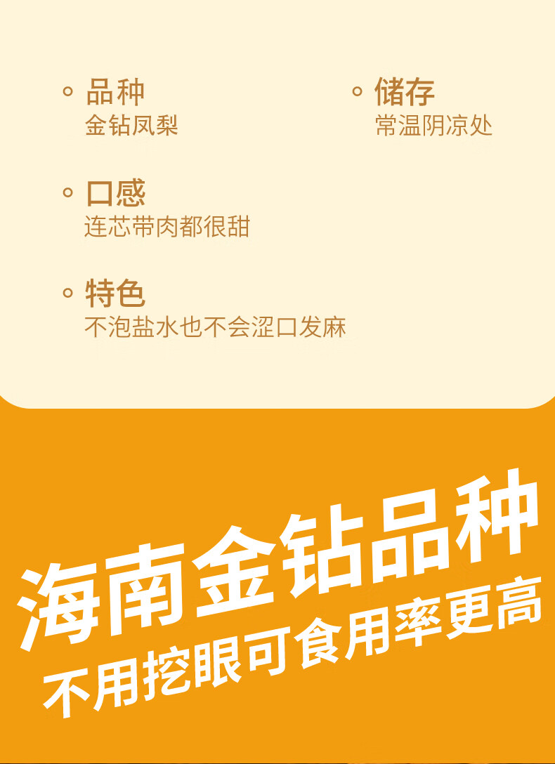 琪江果海南金钻凤梨 新鲜水果无眼菠萝热带水果当季整箱 金钻凤梨净重4.5-5斤小果(3-5个)