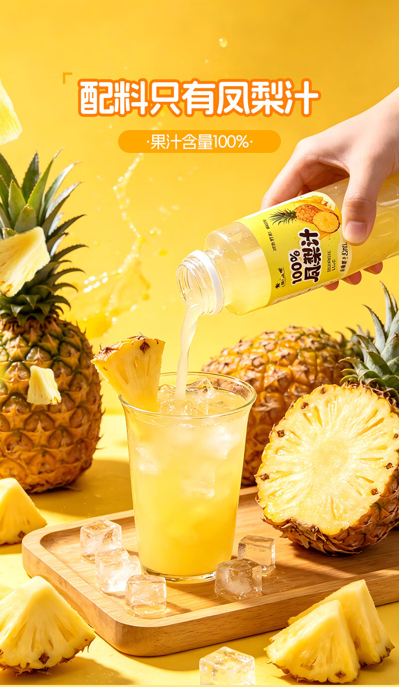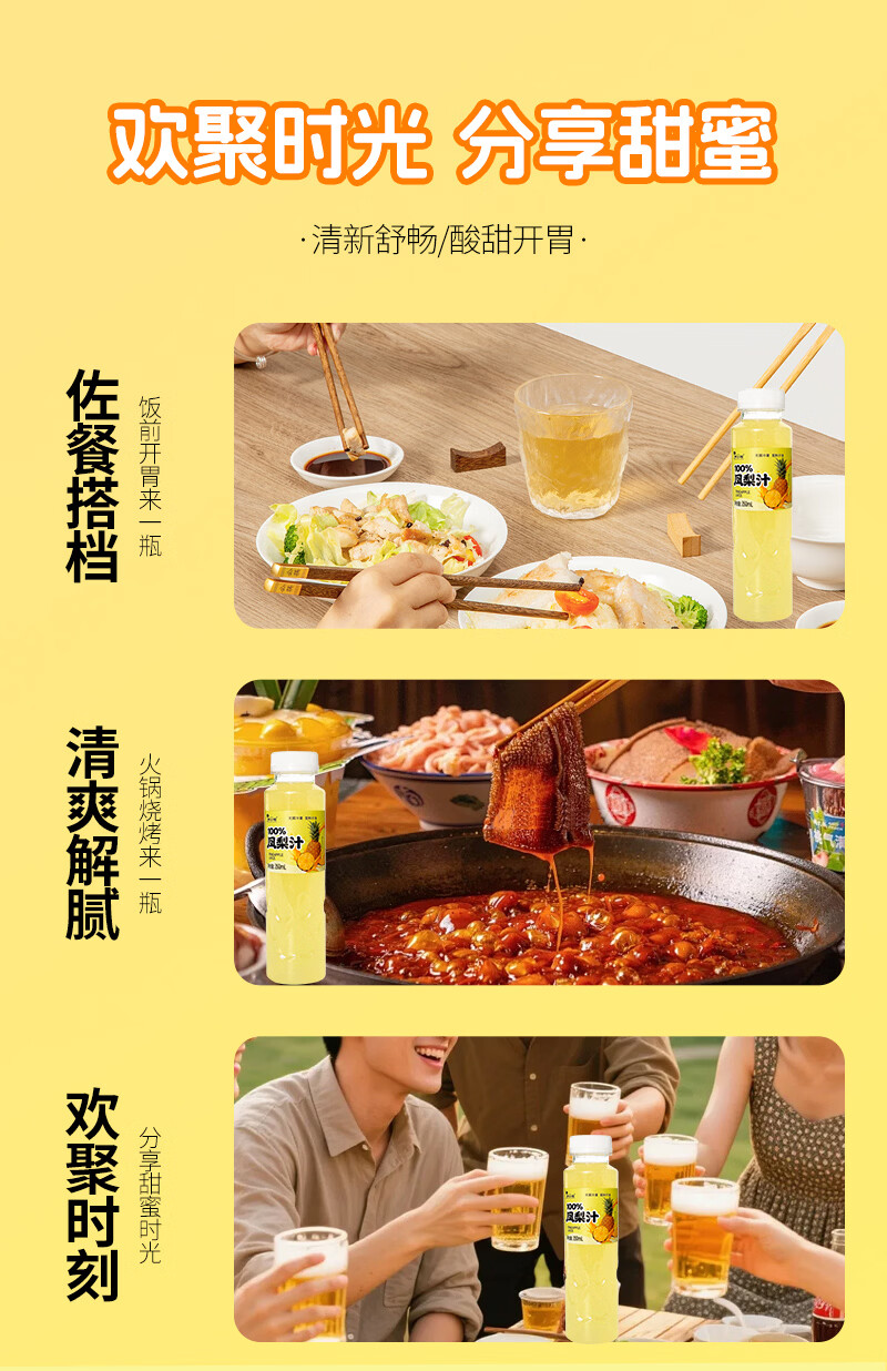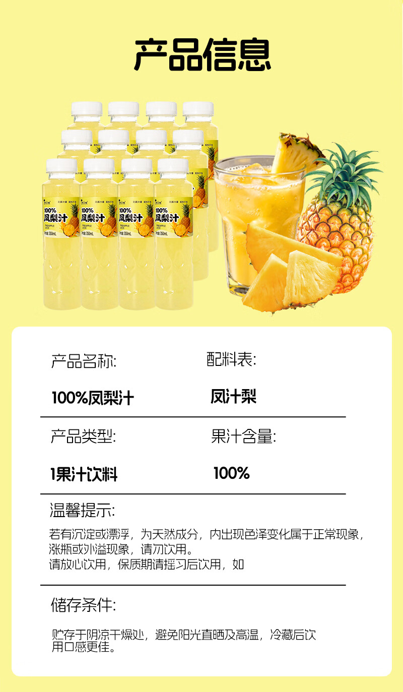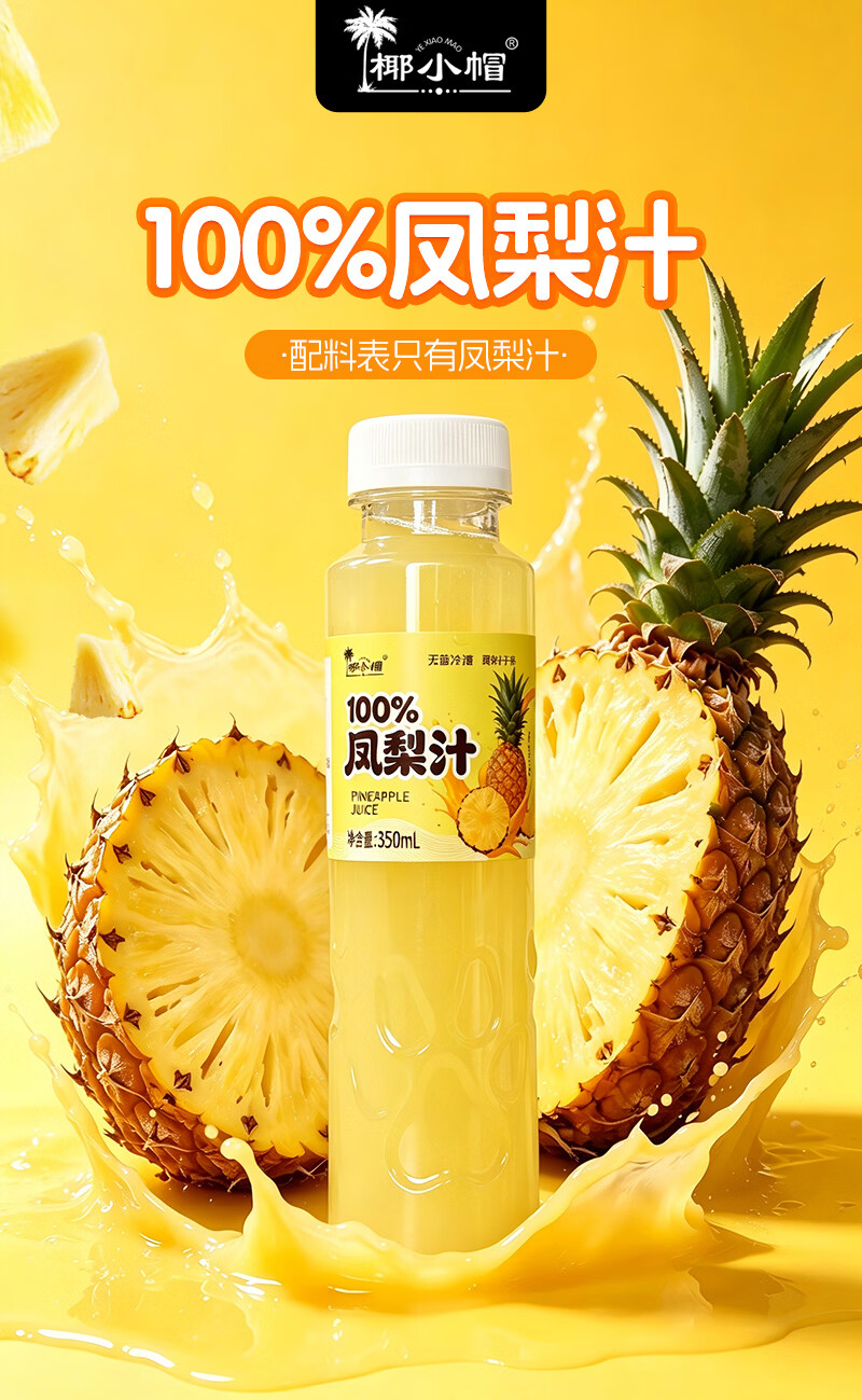 椰小帽100%凤梨汁350ml*6瓶整箱清甜爽口果味浓郁日期新鲜破损包赔 100%凤梨汁350ml*12瓶整箱