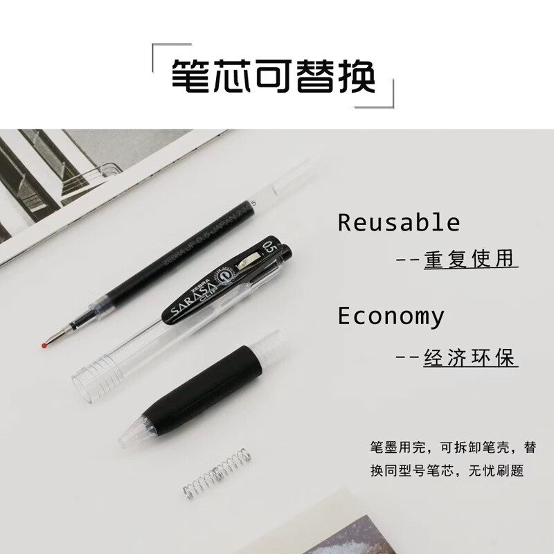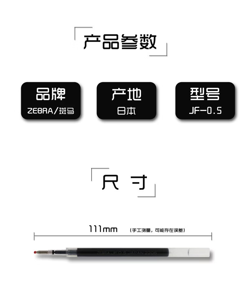 ZEBRA原装中性笔速干替换芯适用JJ15子弹头黑笔通用日本进口按动笔芯JF系列 【JF笔芯】黑色10支/盒/热卖款