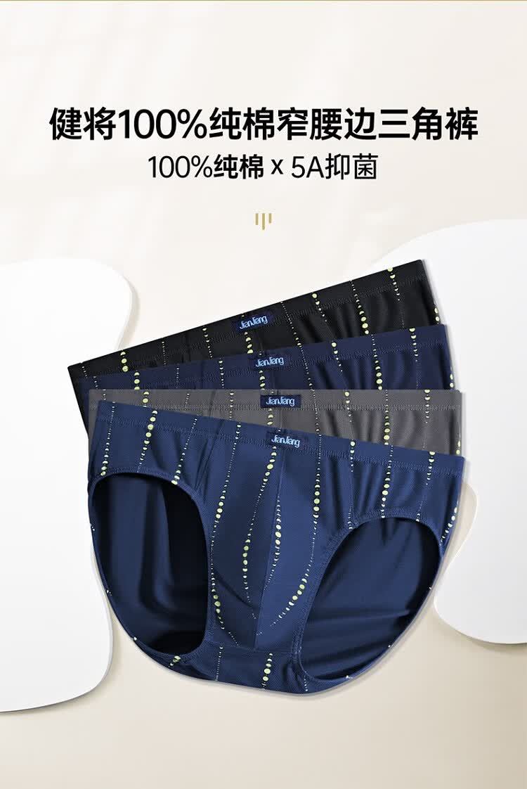 健将三角内裤男纯棉透气男士内裤抑菌大码肥佬宽松运动青年底裤衩 字母条纹装 4条 3XL (腰2.7-2.9尺 重150-170斤)