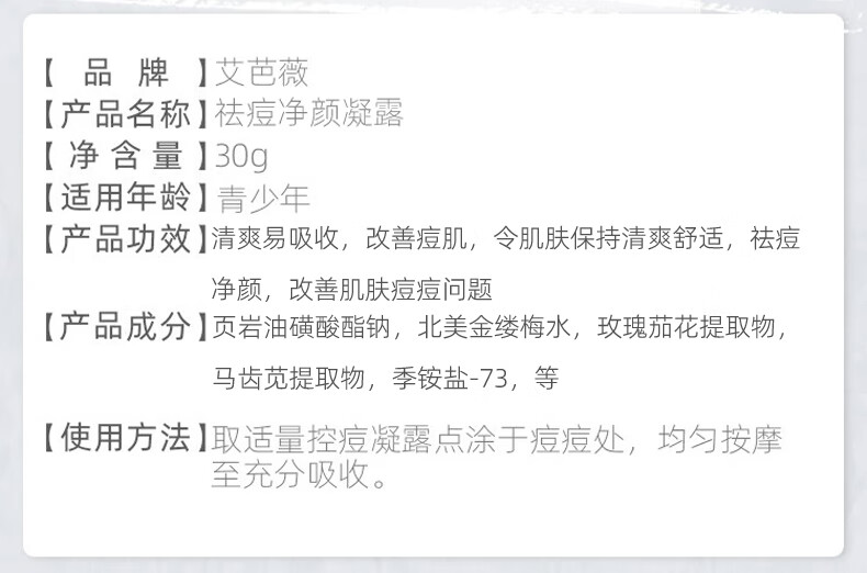 艾芭薇初中生青春期学生男女孩祛痘净颜凝露青少年温和祛痘淡印粉刺闭口 祛痘修护凝露*1瓶 30g