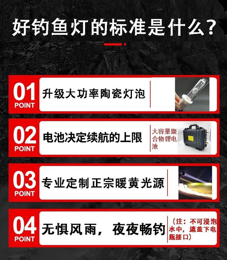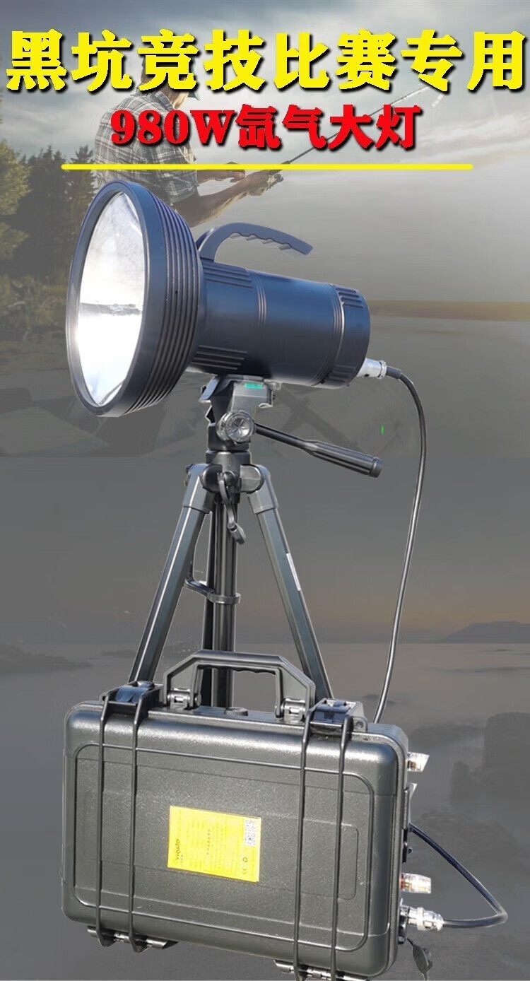 叁仝睦夜钓灯激光大炮强光氙气夜钓灯亮诱鱼暖黄白光垂钓灯980W大功率 980W+支架+16.8V300AH+22小时