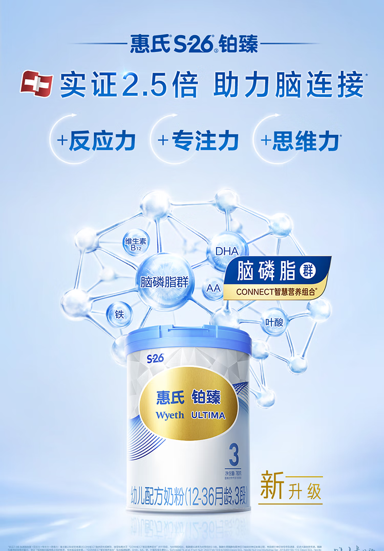 惠氏【官方授权】铂臻幼儿配方3段奶粉(12-36月) 瑞士进口三段奶粉 3段780g*6罐