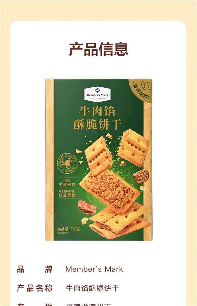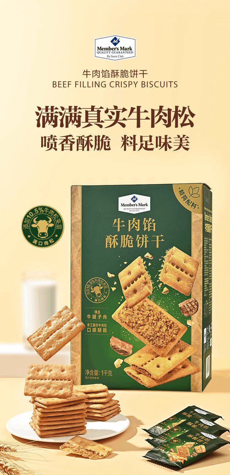 MEMBER'S MARK牛肉馅酥脆饼干山姆会员商店代购肉松夹心薄脆办公室休闲解馋零食 【山姆拆分装】牛肉馅酥脆饼干*30包